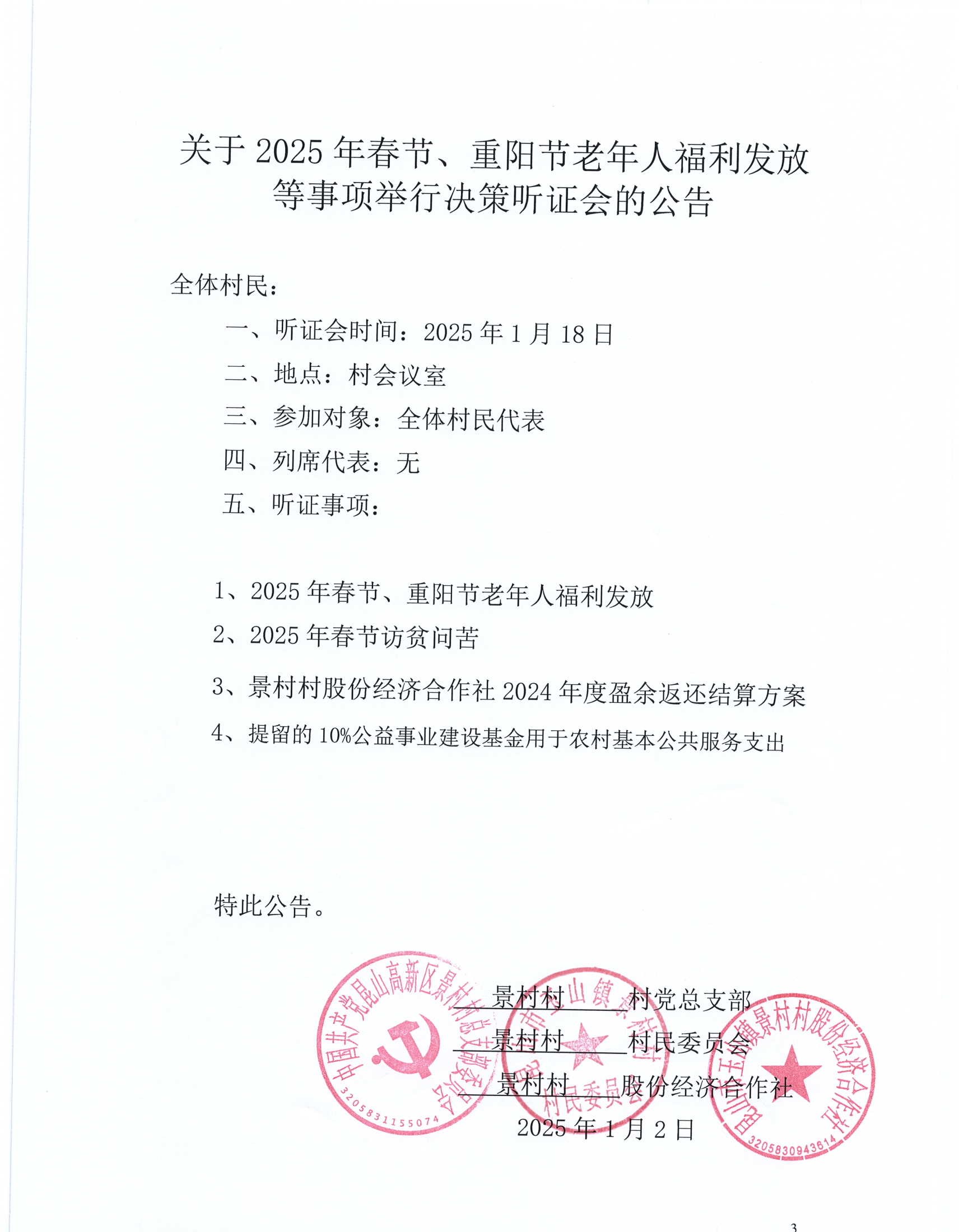 2025年春节、重阳节老年人福利发放等4个听证会: