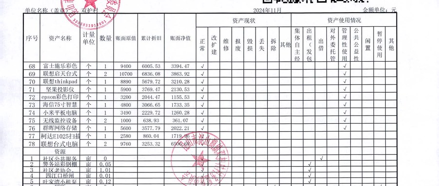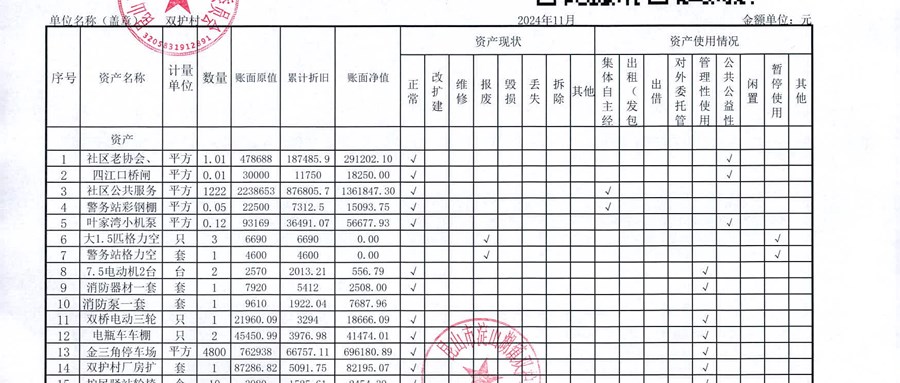 2024年11月双护村村民委员会财务公开