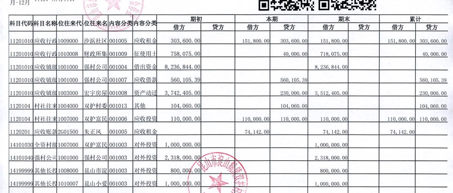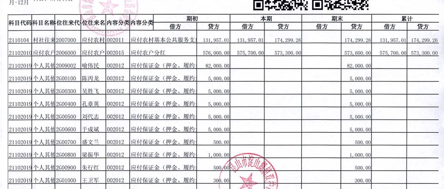 2024年12月双护村股份经济合作社财务公开