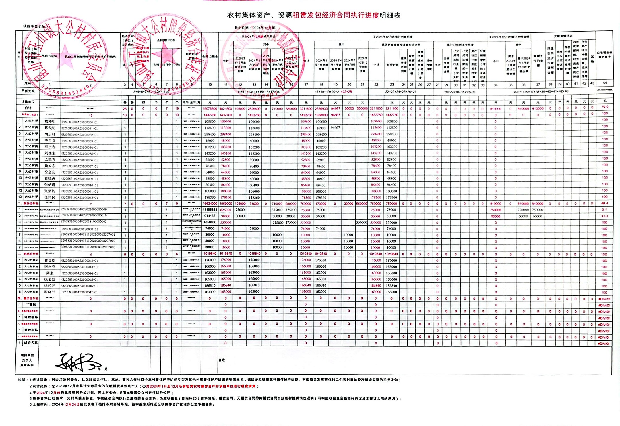 农村集体资产、资源租赁发包经济合同执行情况(2024年四季度)