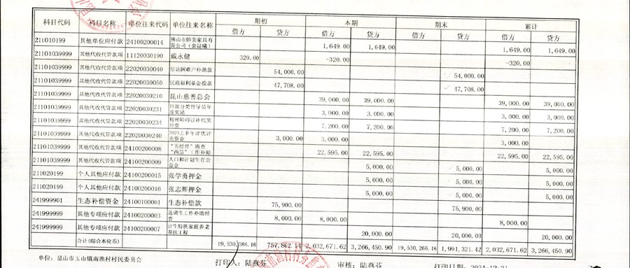 南渔村村民委员会24年12月财务公开