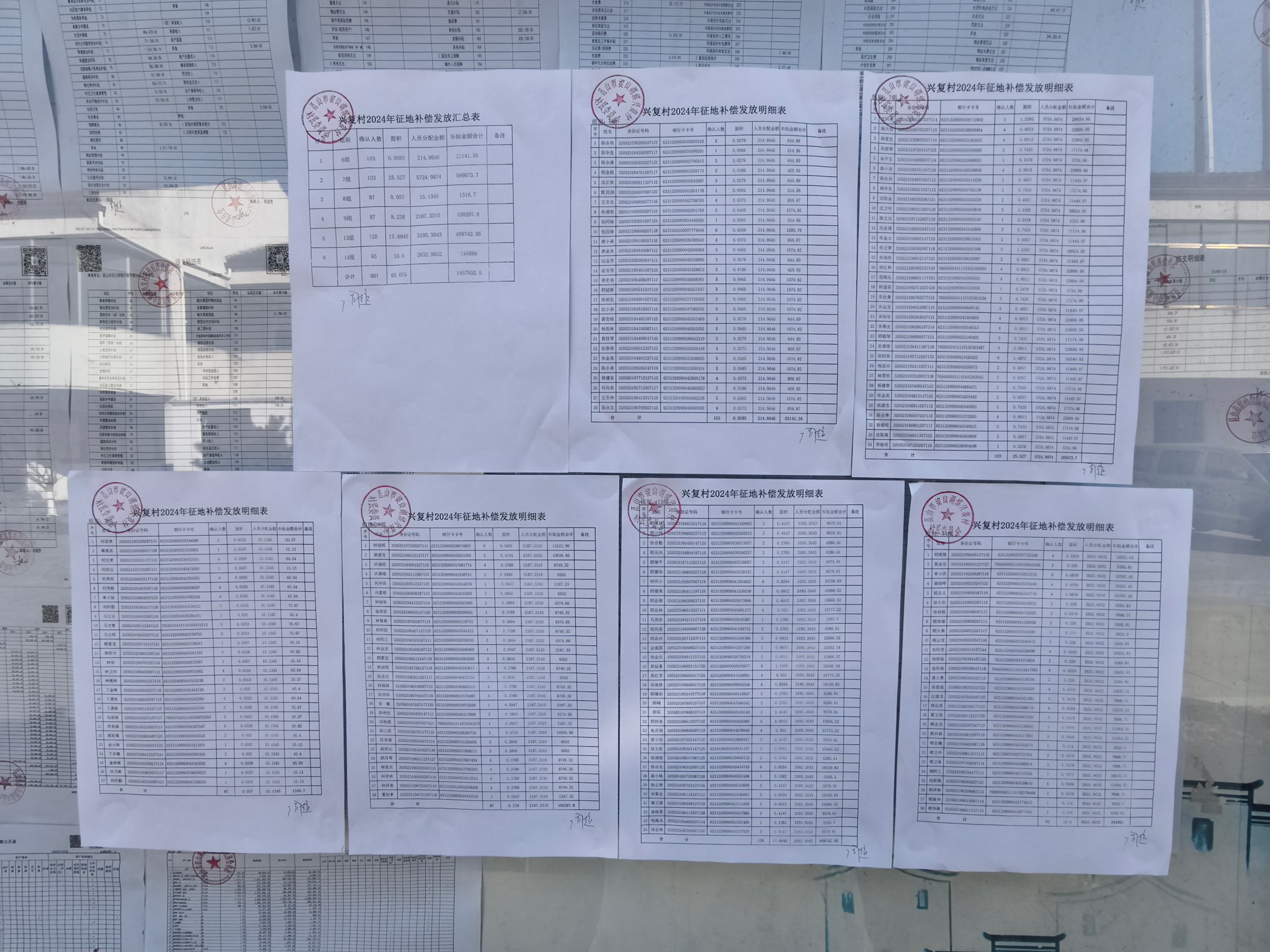 兴复村2024年征地补偿发放明细表