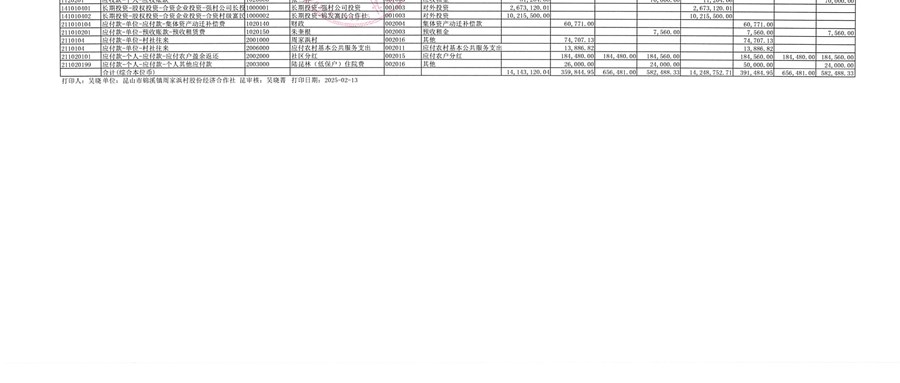 2025年周家浜村股份经济合作社1月份财务公开