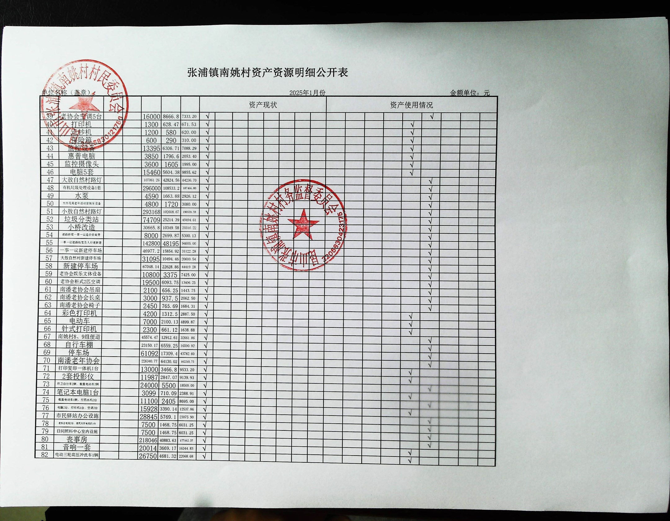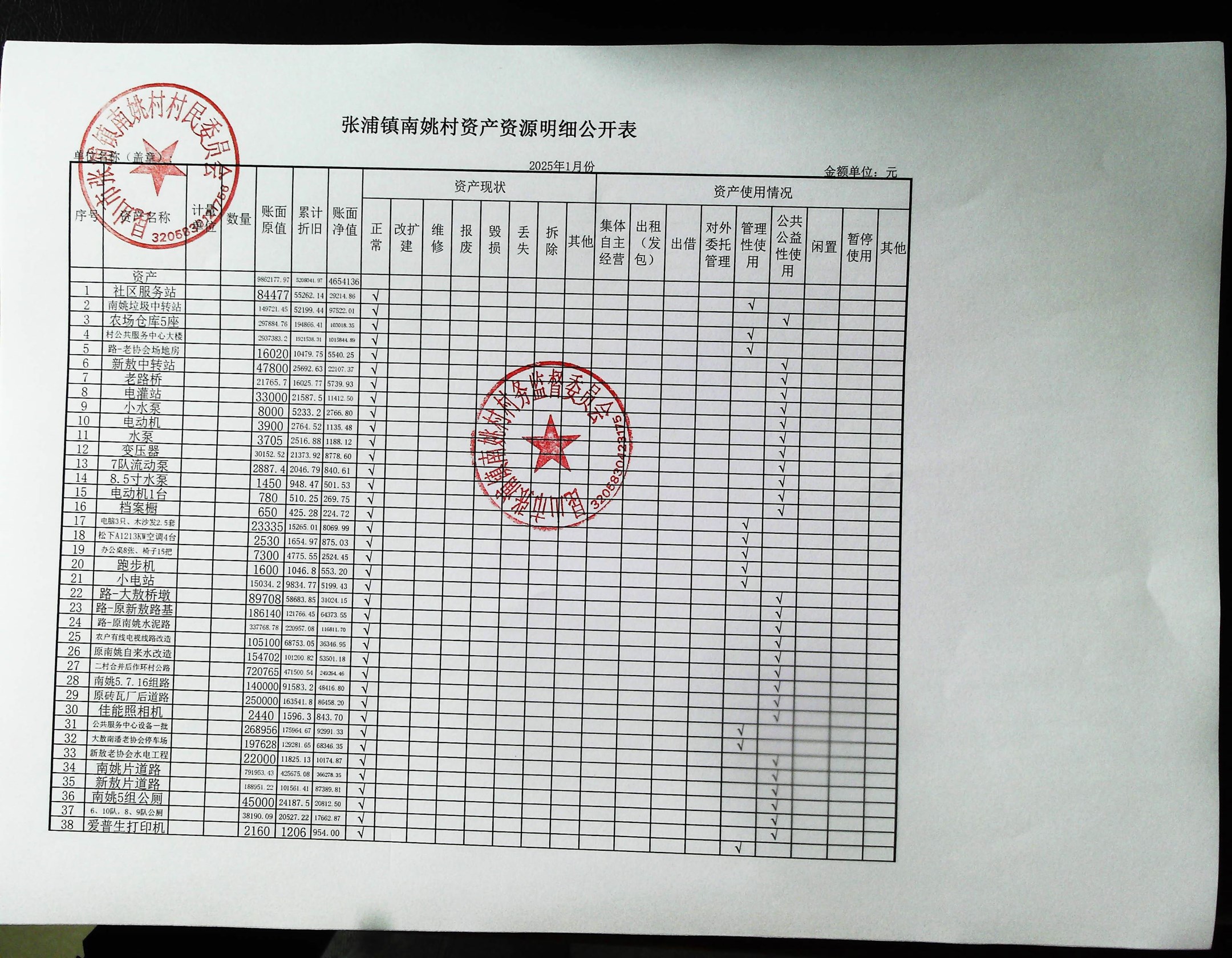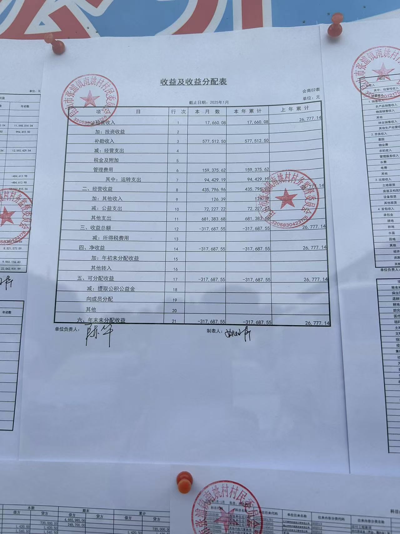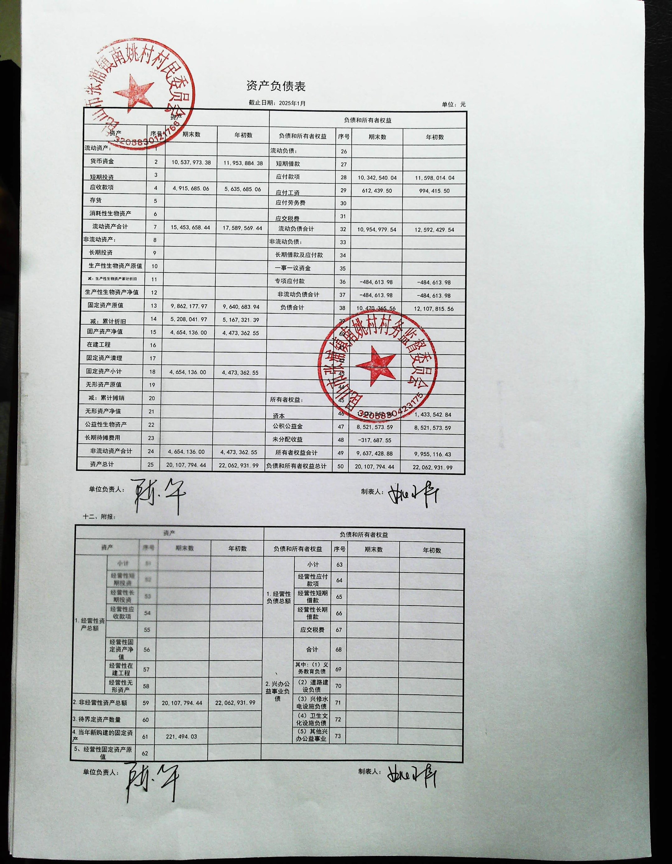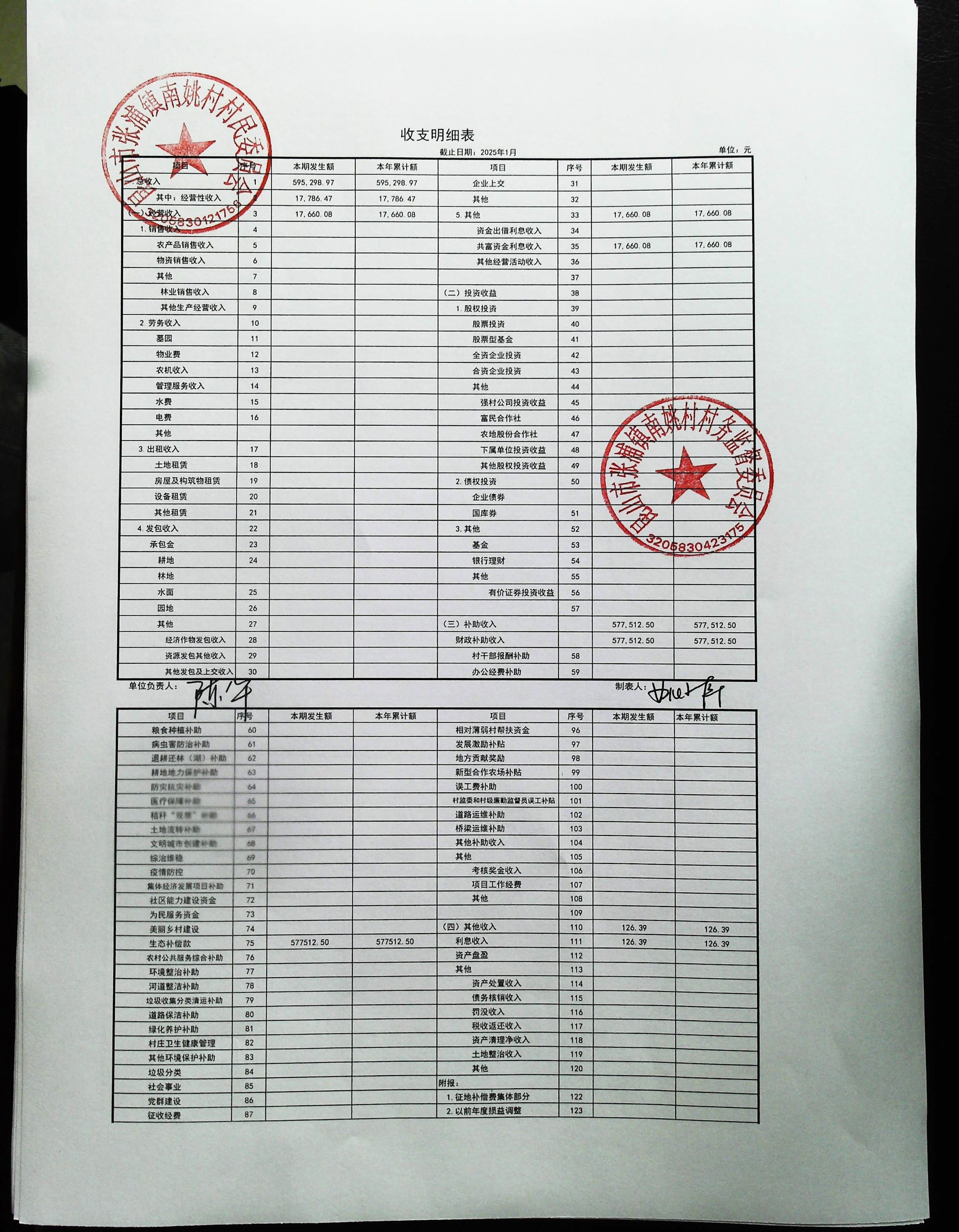 2025年1月南姚村财务公开