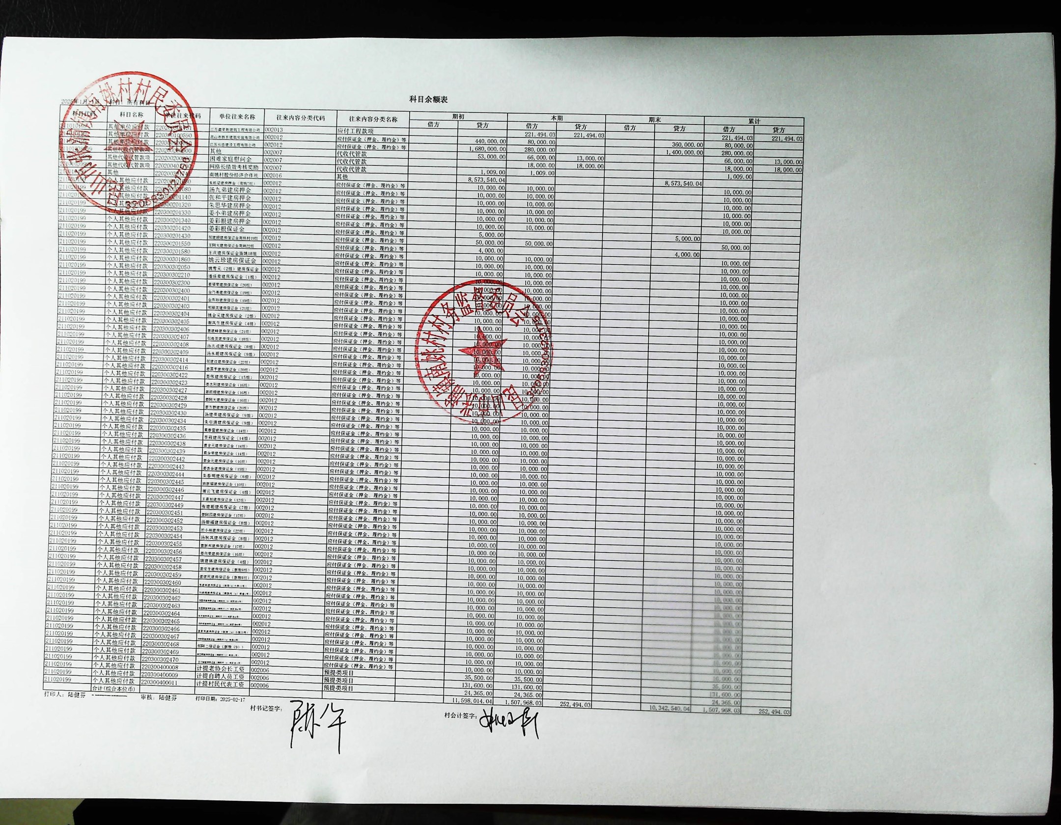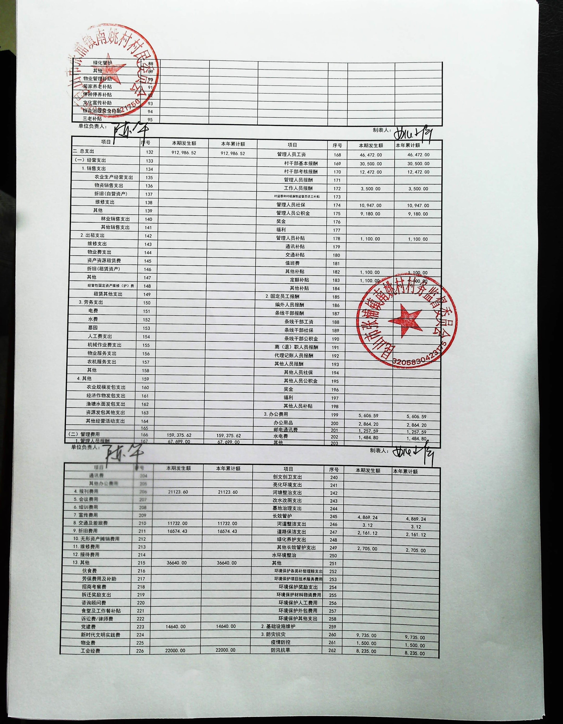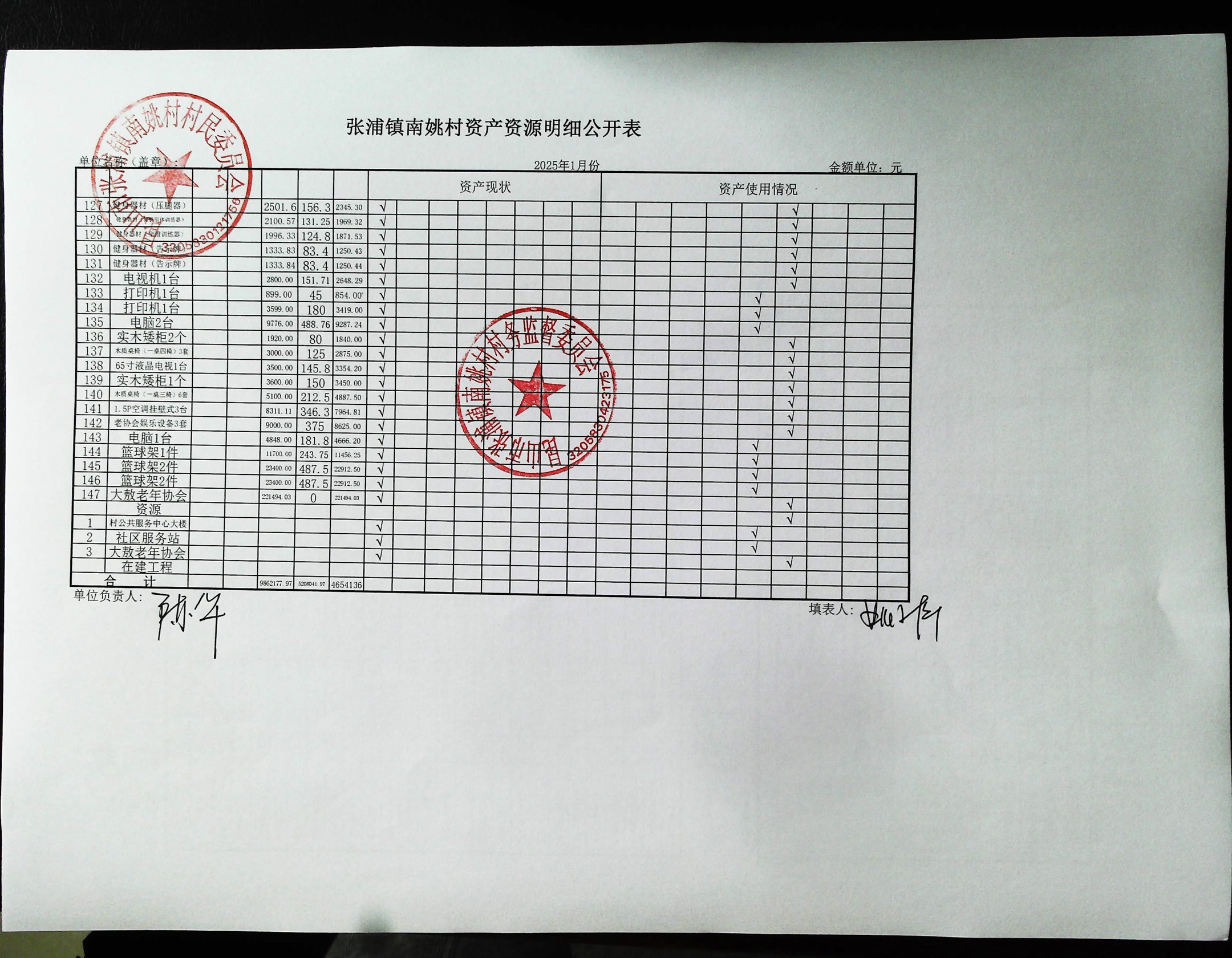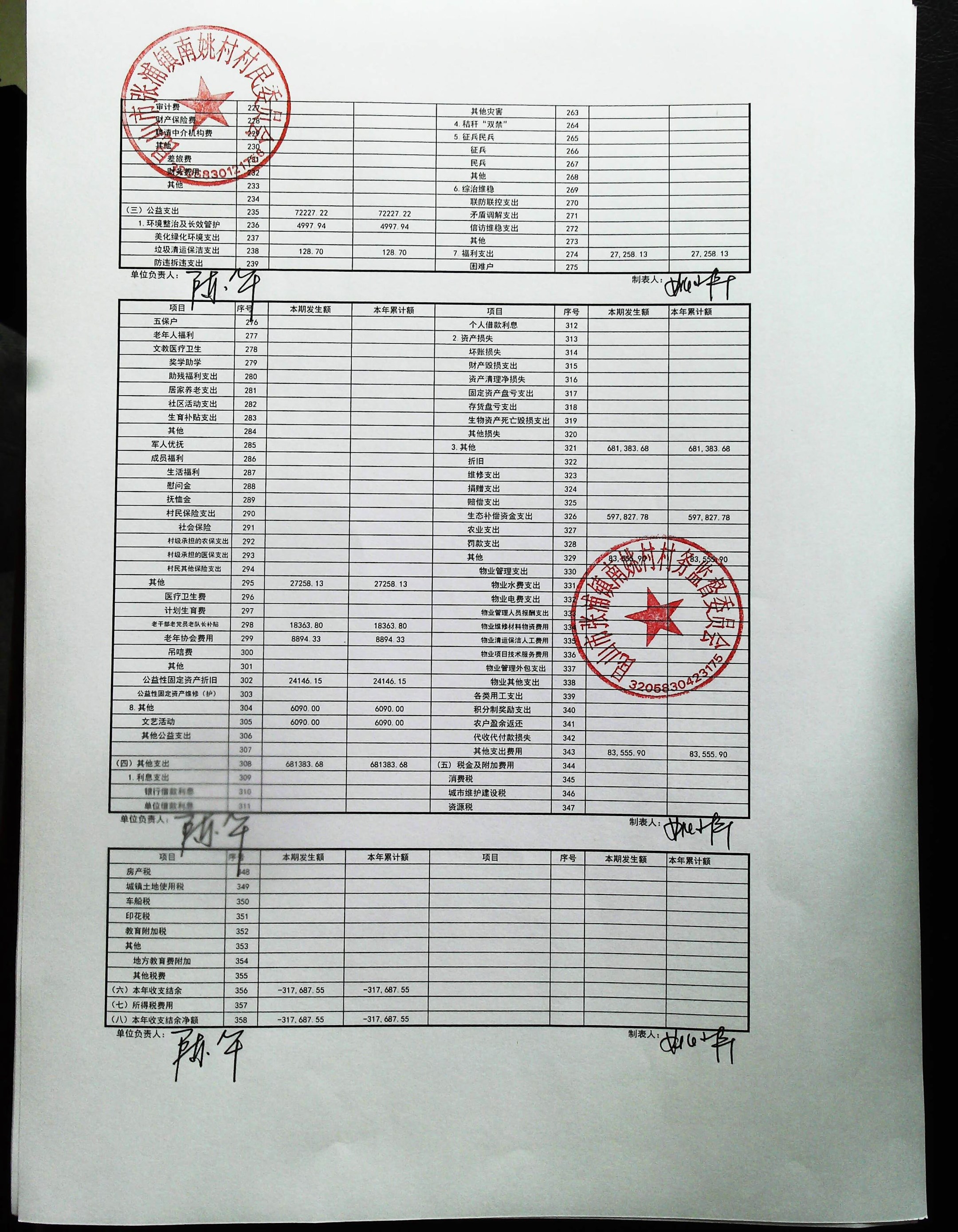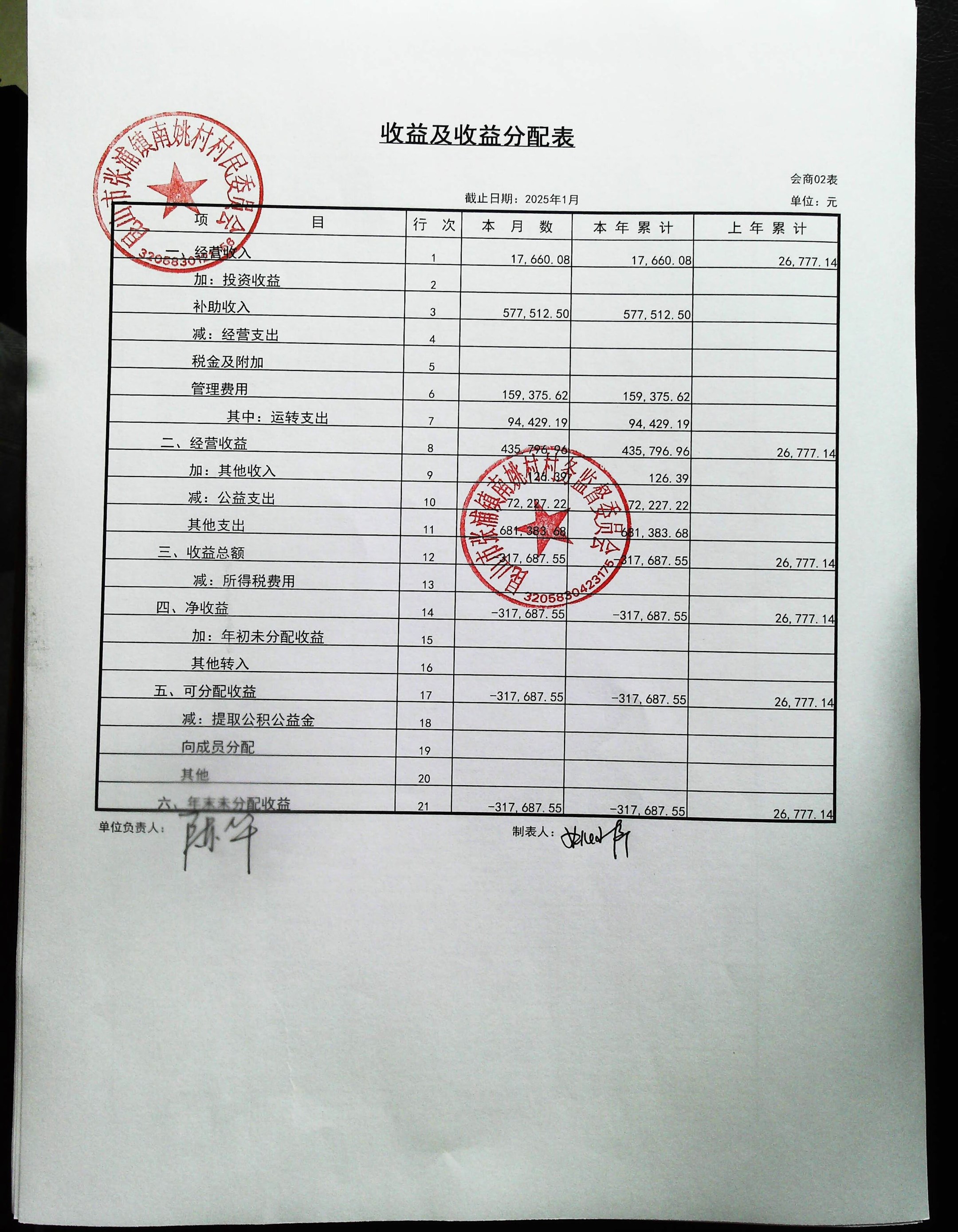 2025年1月南姚村财务公开