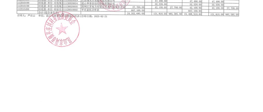 2025年第一季度(1月)平庄村股份经济合作社财务公开(定期公开)