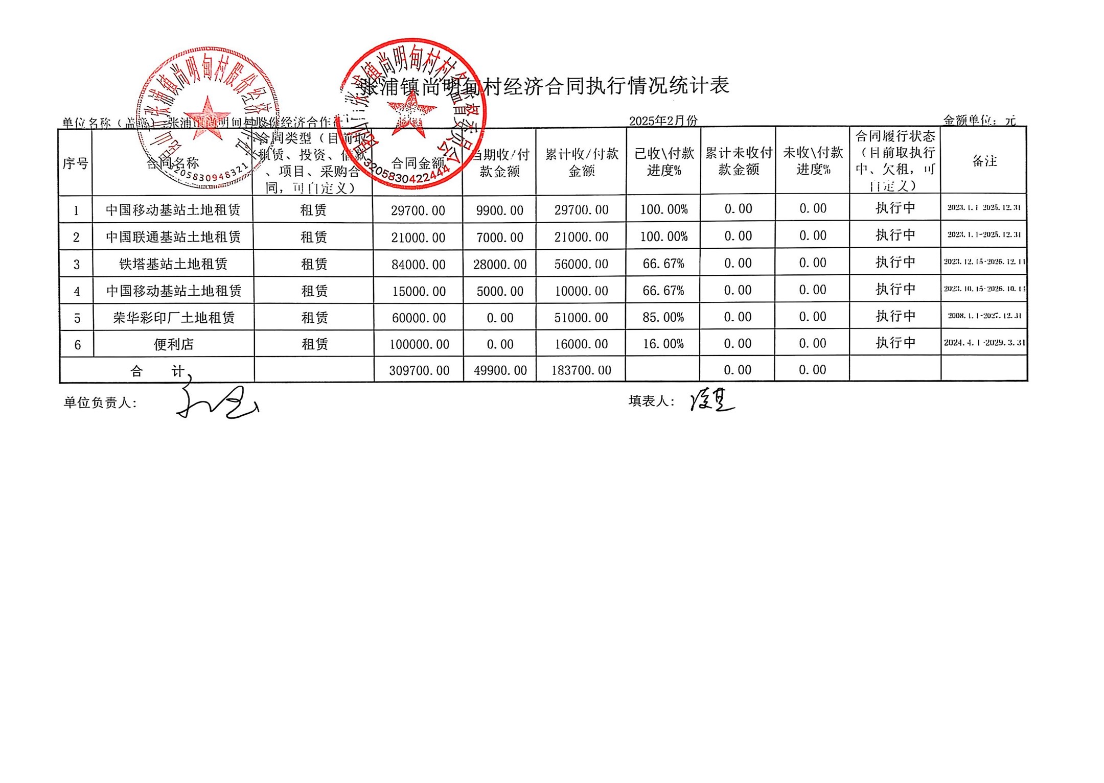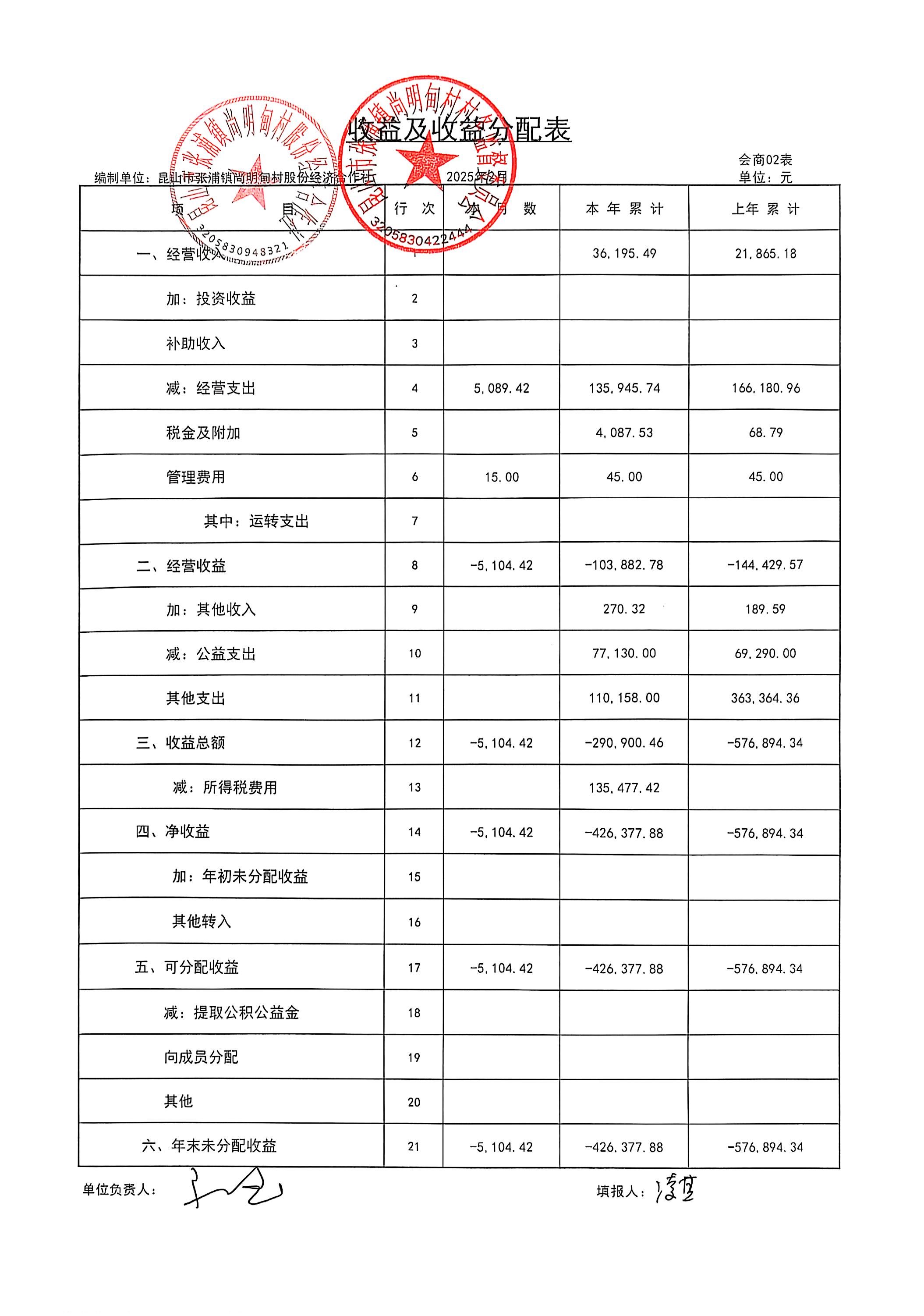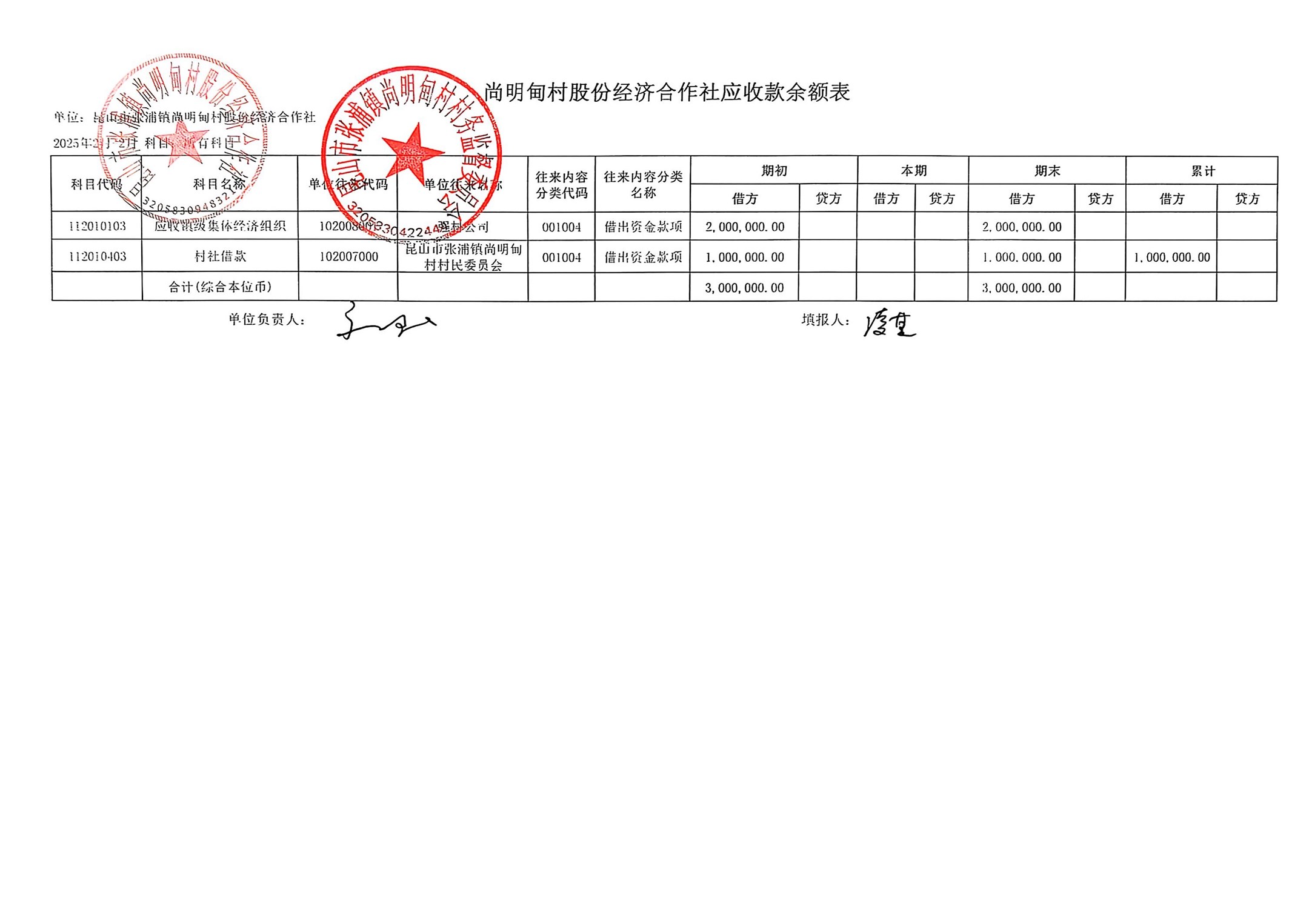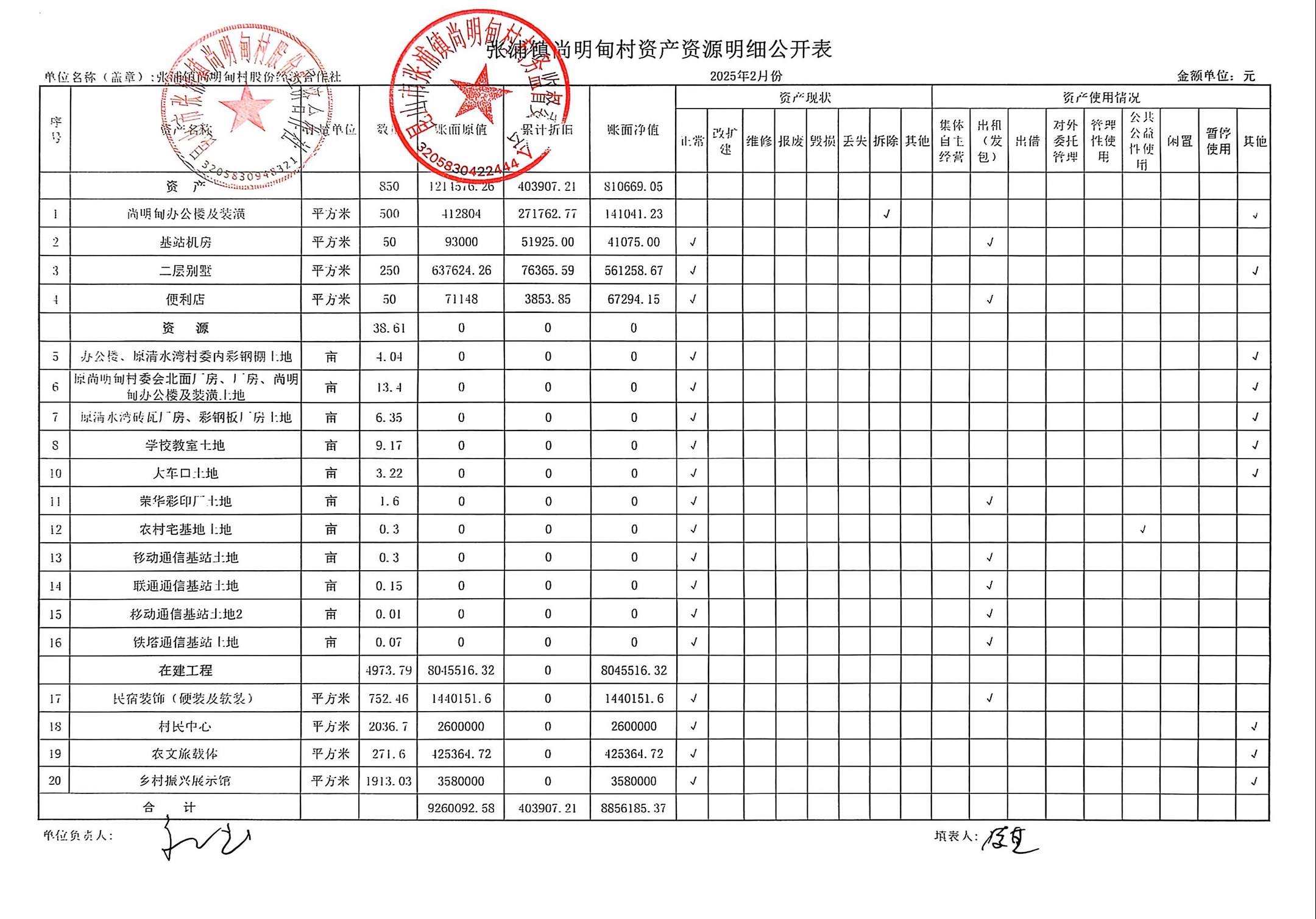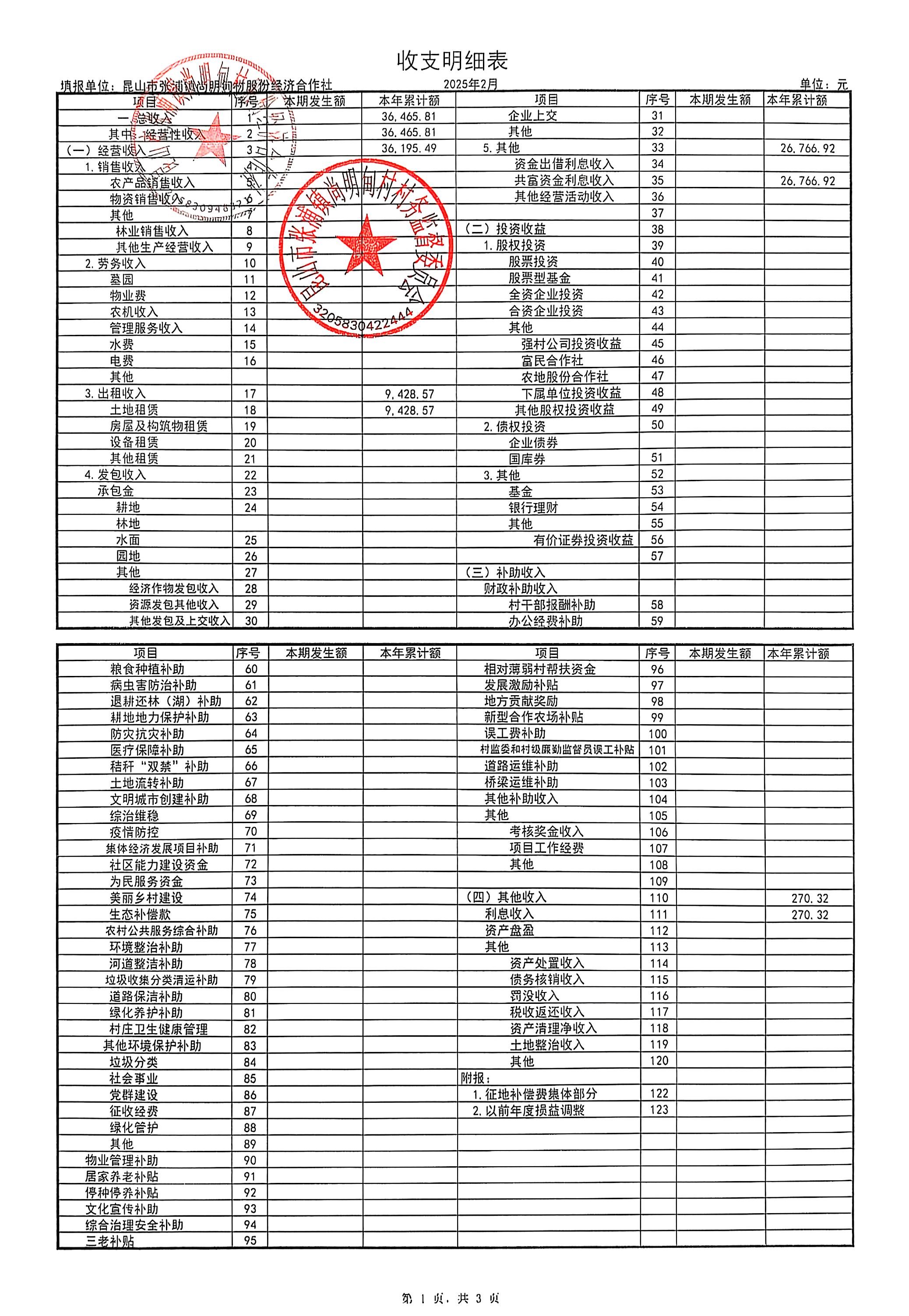 尚明甸村股份经济合作社2025年2月财务公开