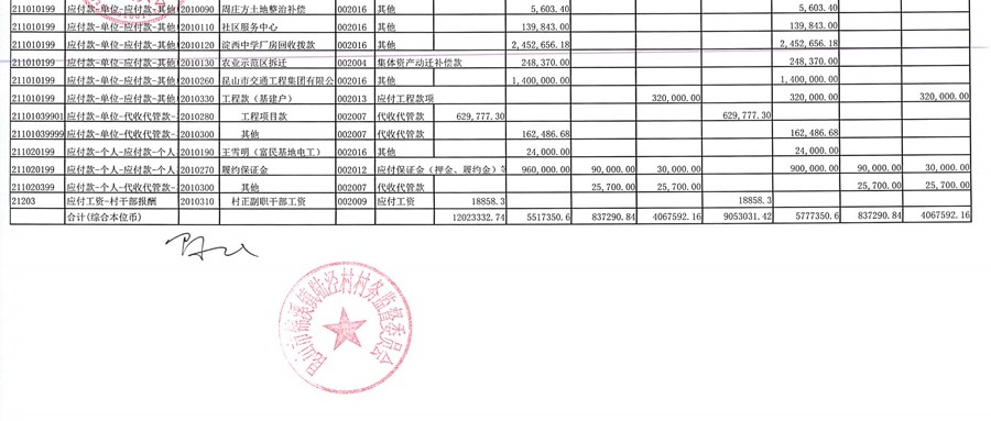 村盖章事项名录
