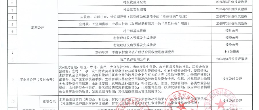 村盖章事项名录