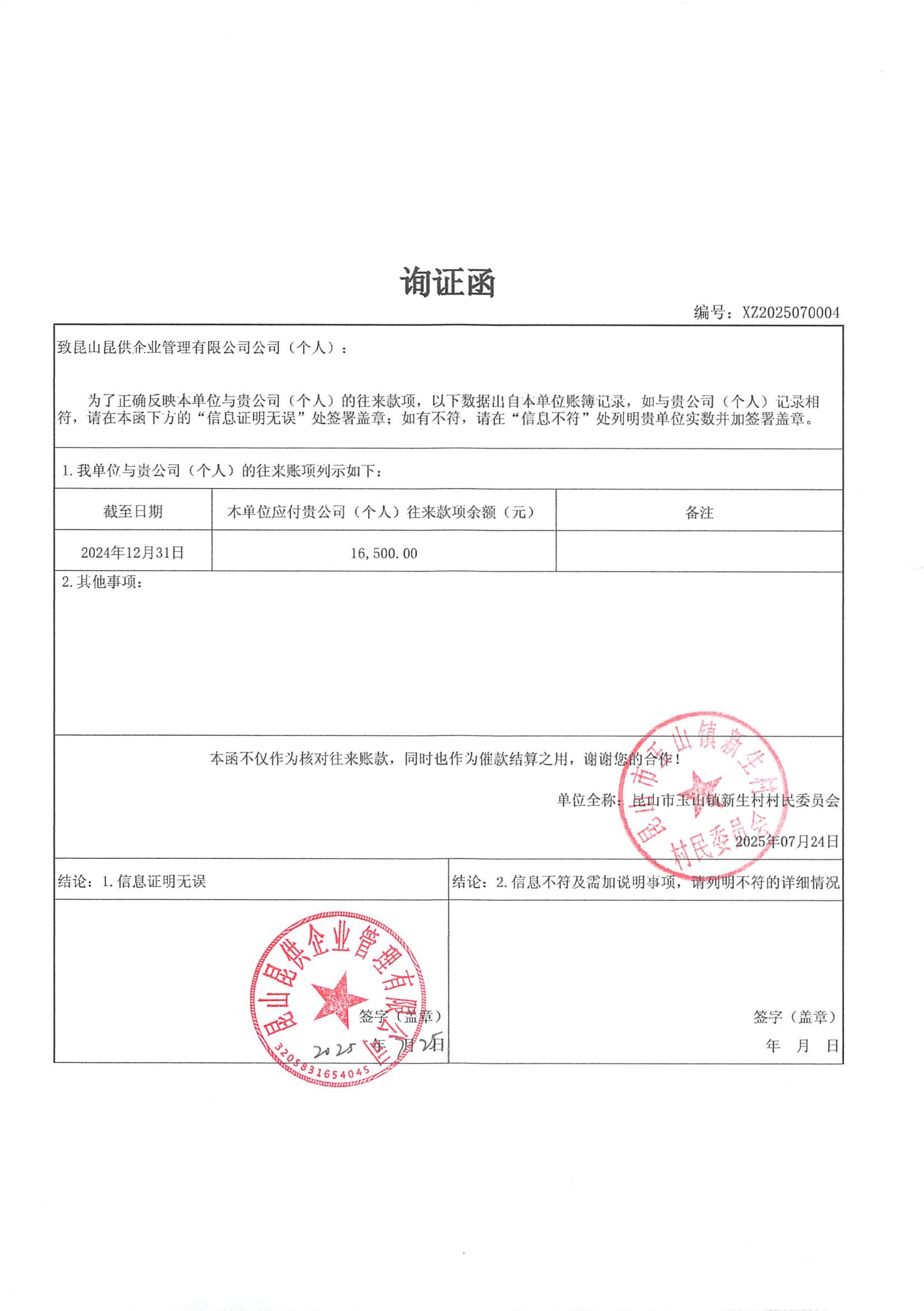2025年昆山市玉山镇新生村村民委员会资产清查结果公示