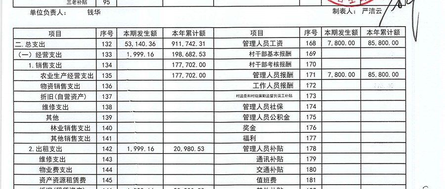 2025年11月永共村股份经济合作社财务公开