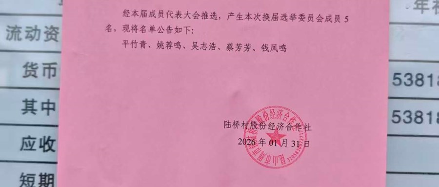 陆桥村股份经济合作社换届选举委员会名单公告
