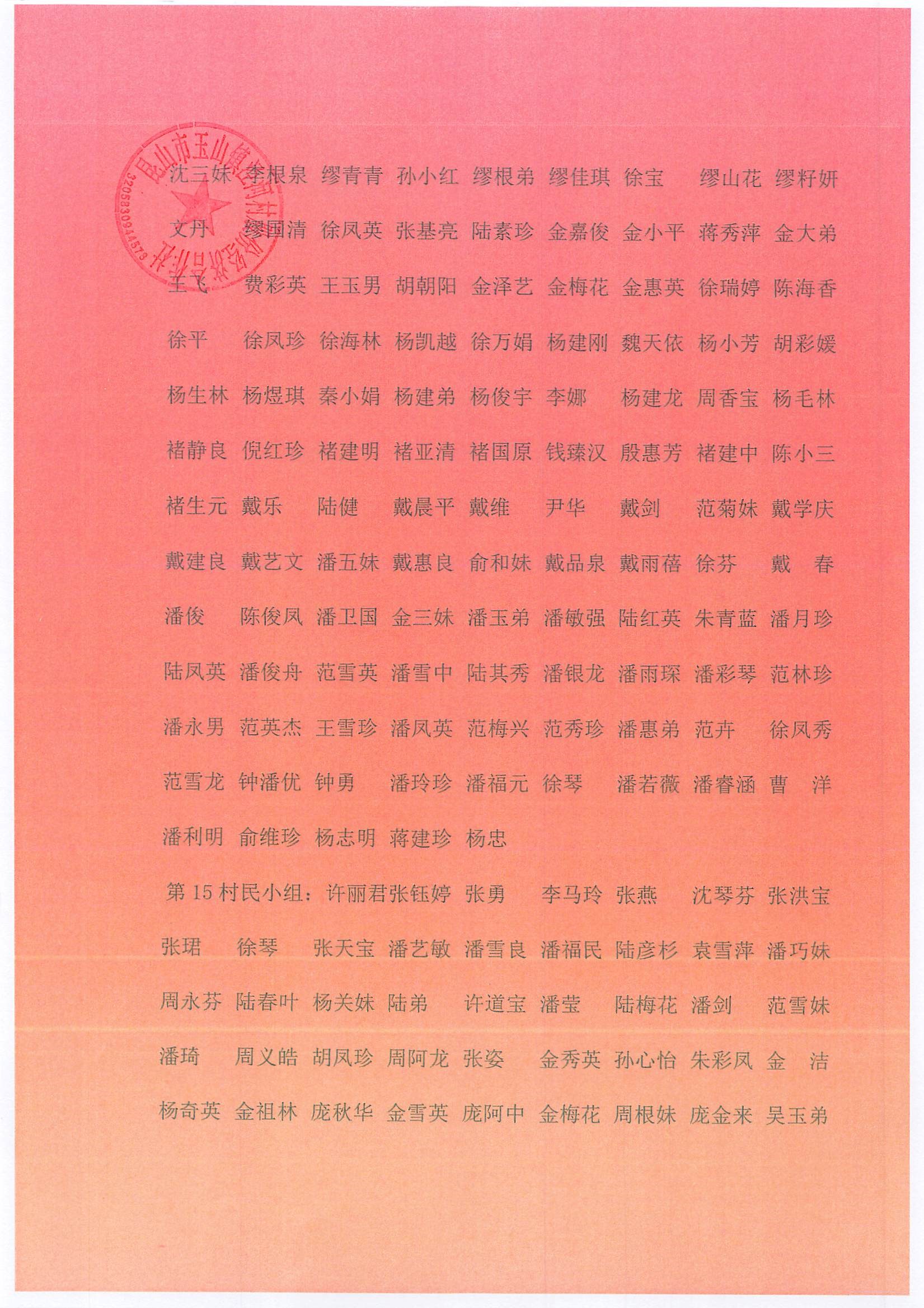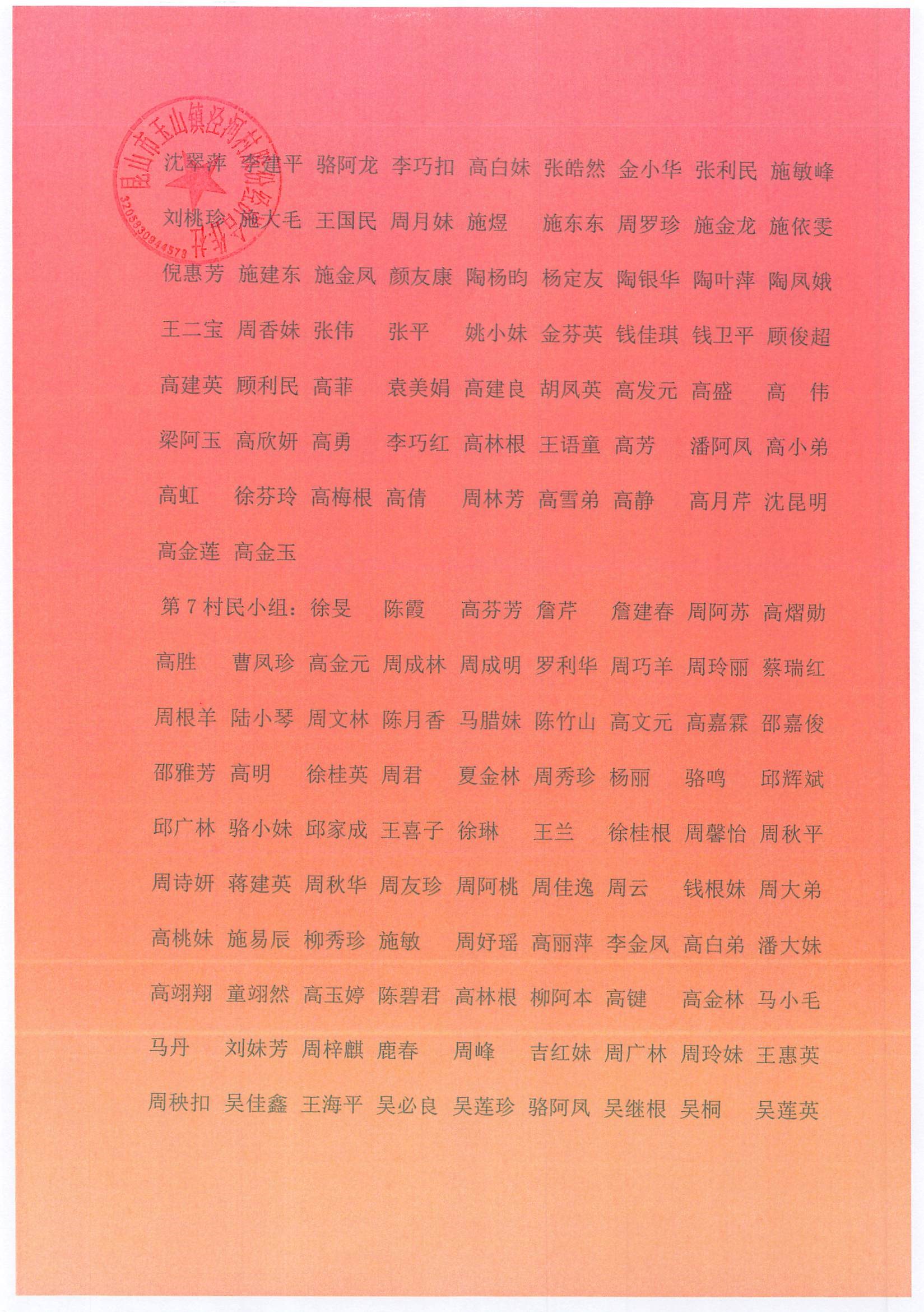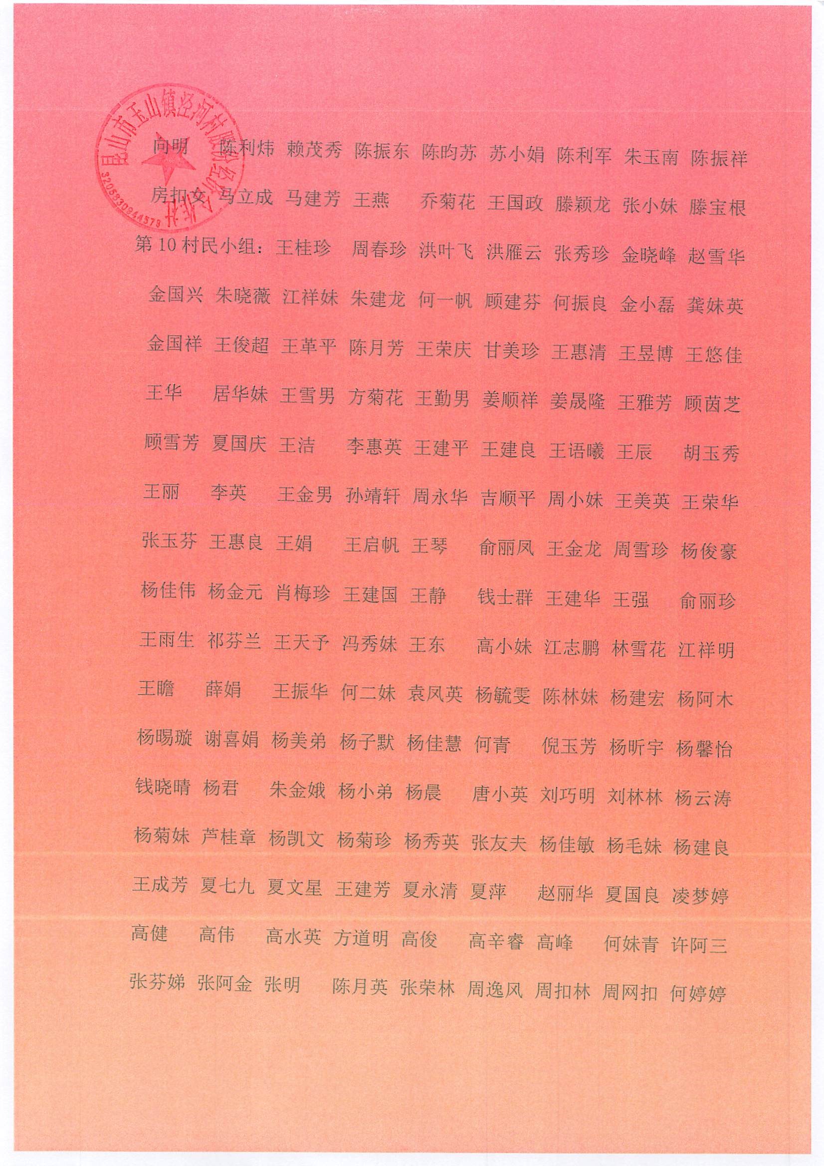 村盖章事项名录