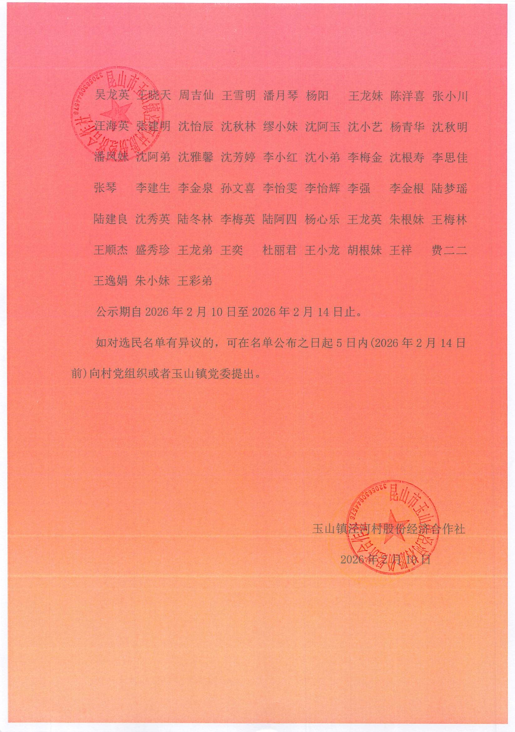 泾河村股份经济合作社换届选举选民名单公示