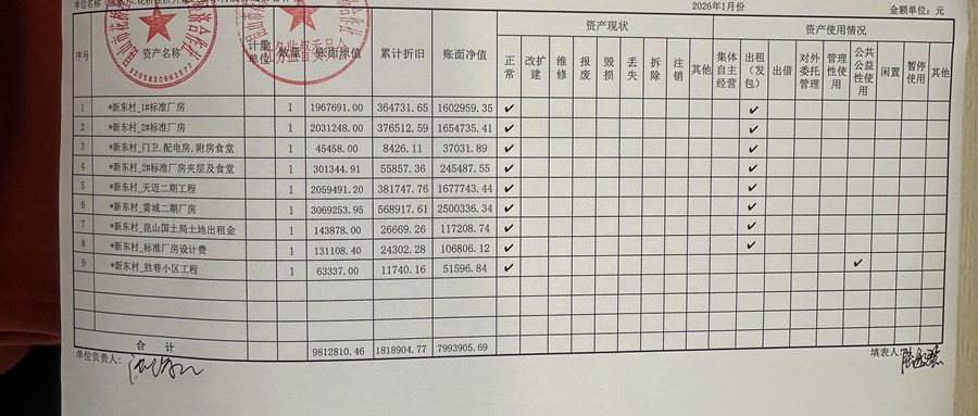 2026年新东村股份经济合作社 1月定期财务公示