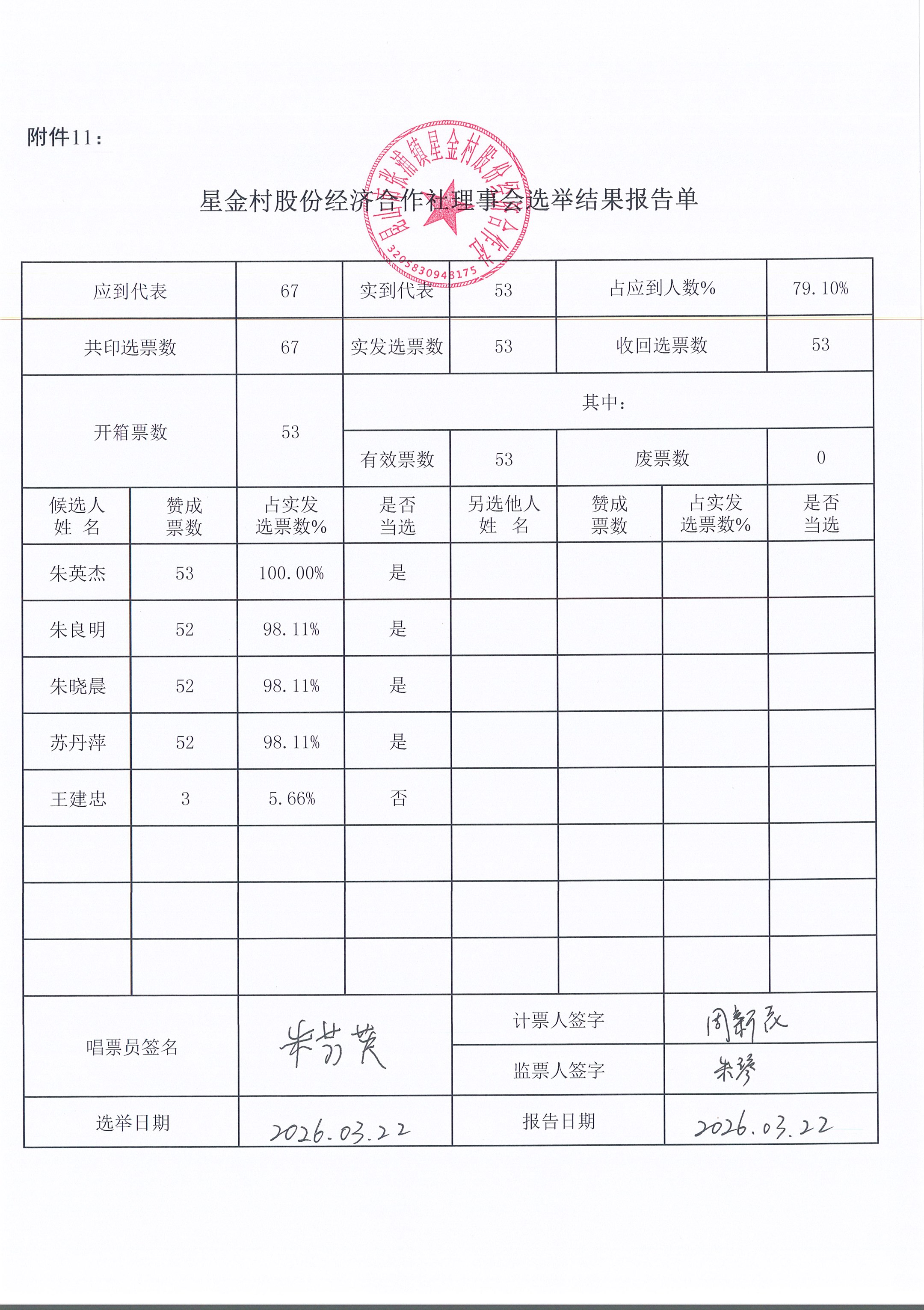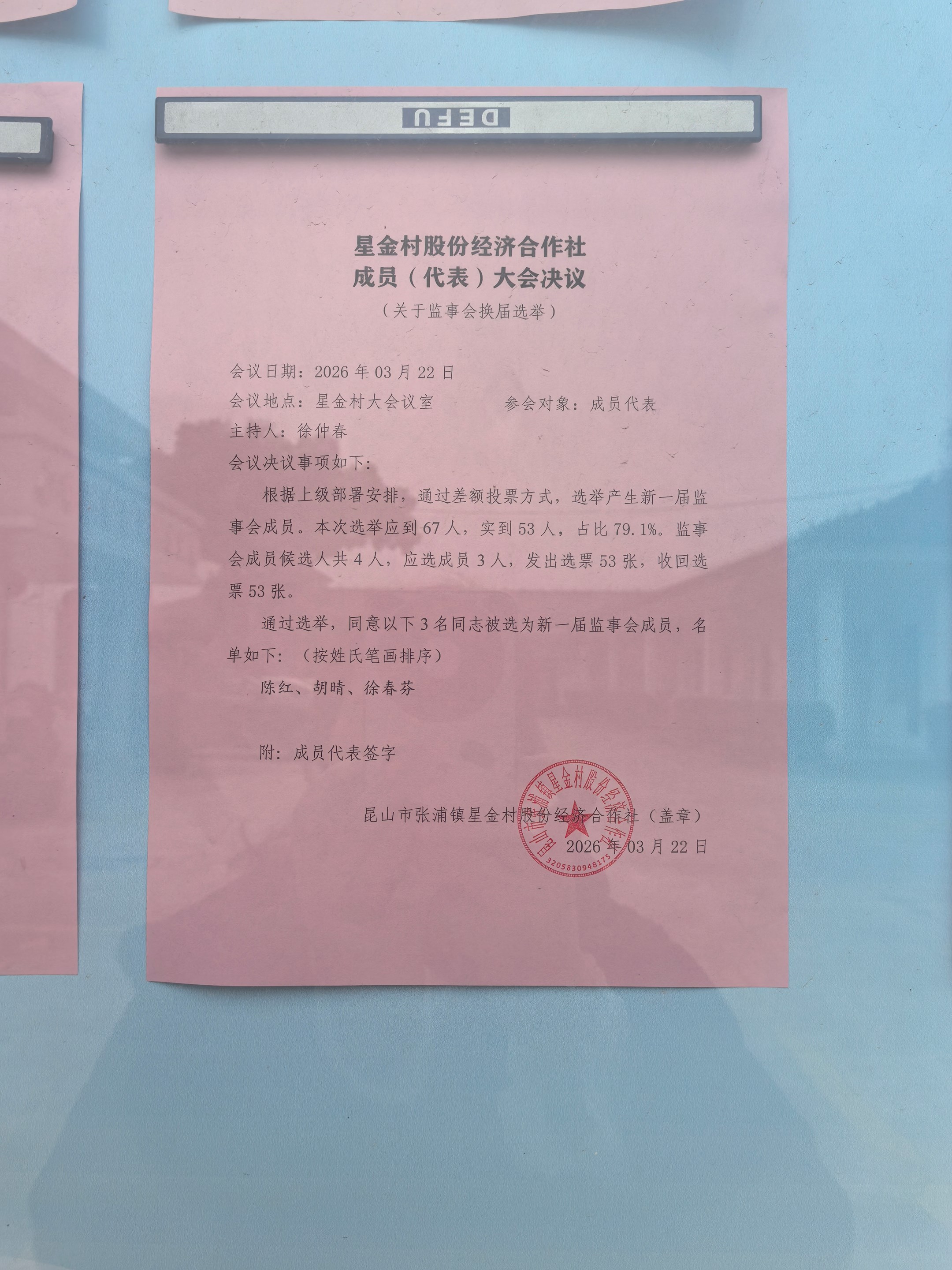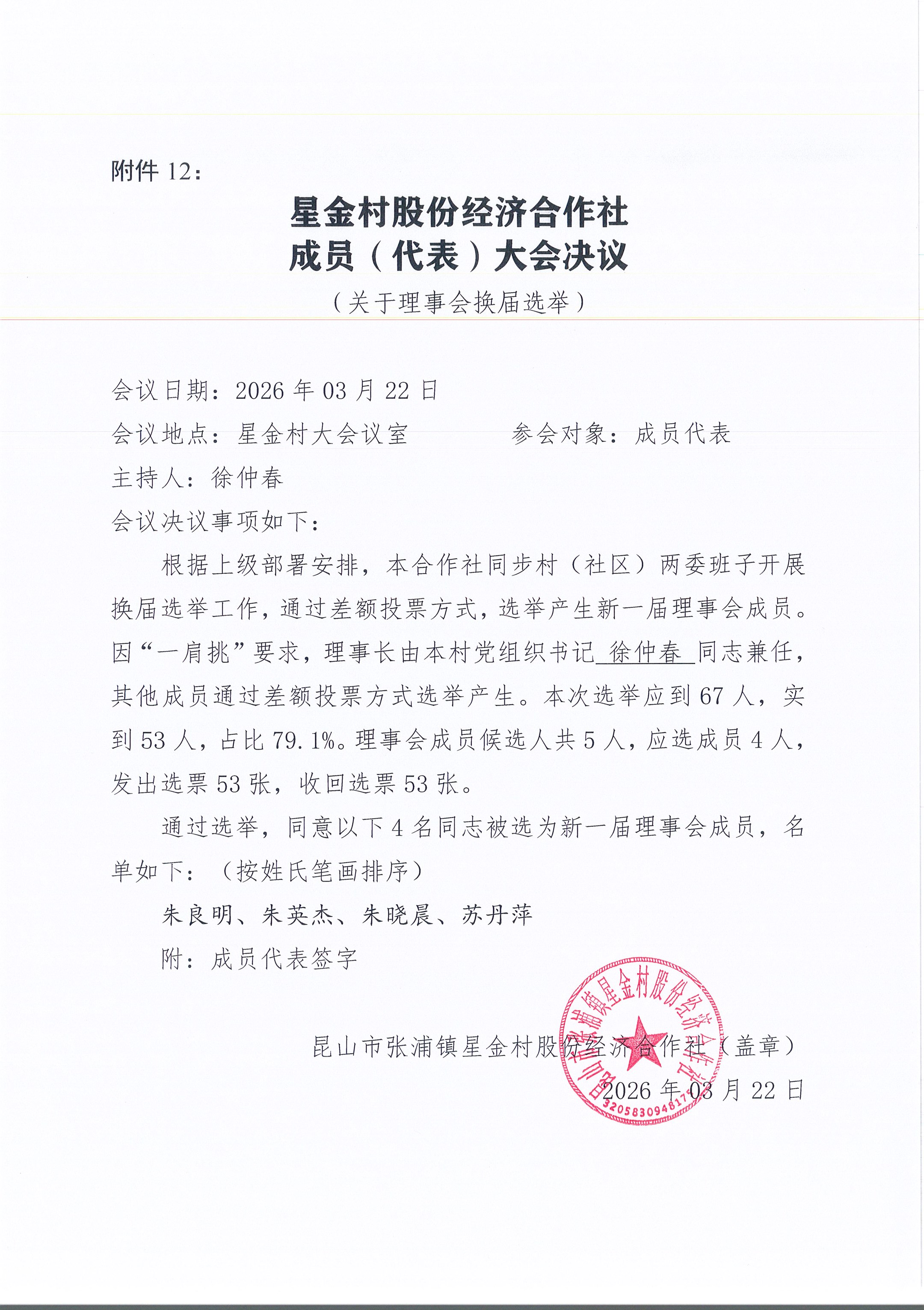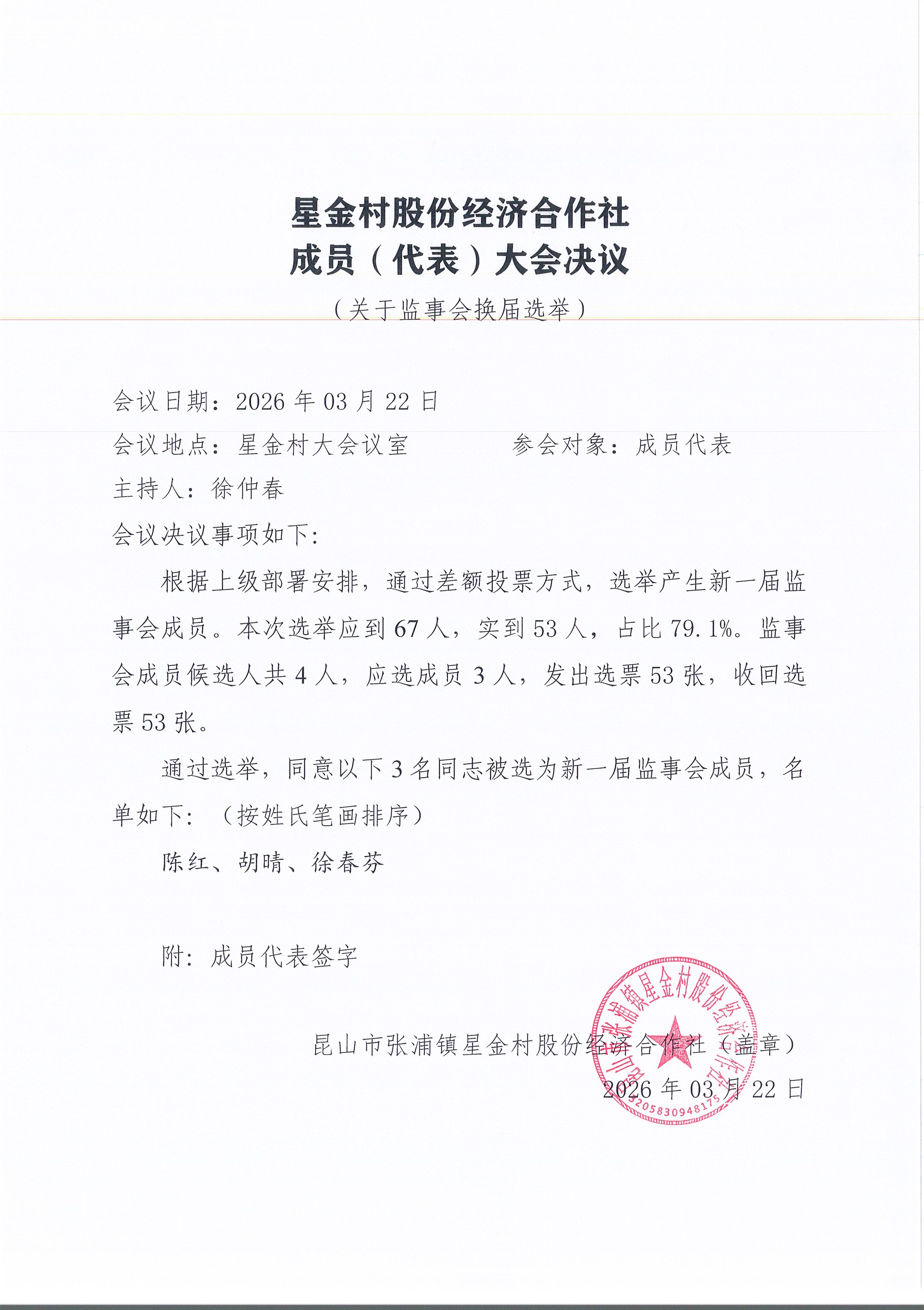 2026年星金村股份经济合作社成员代表大会决议(关于理事会、监事会换届选举)