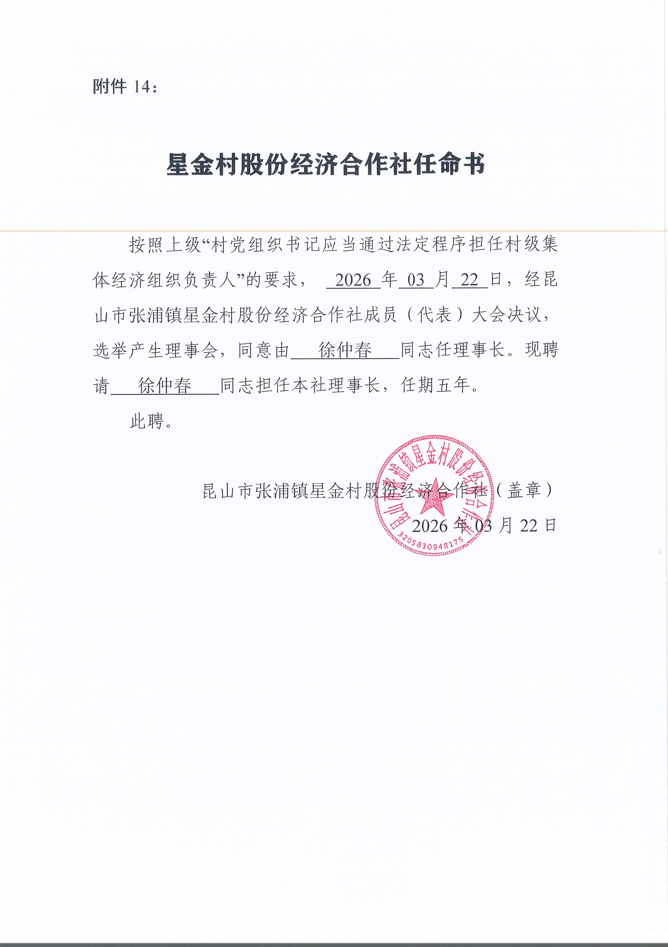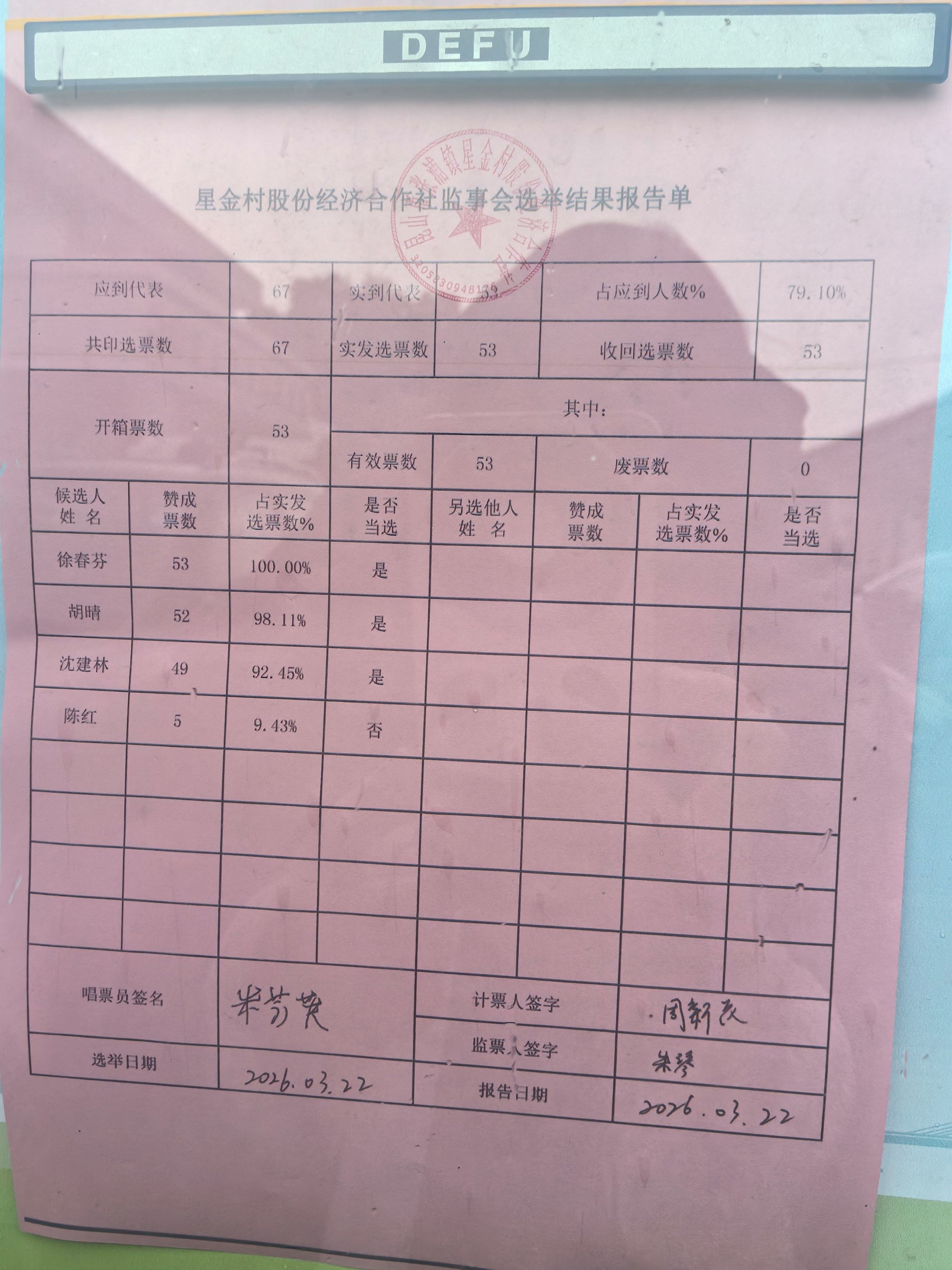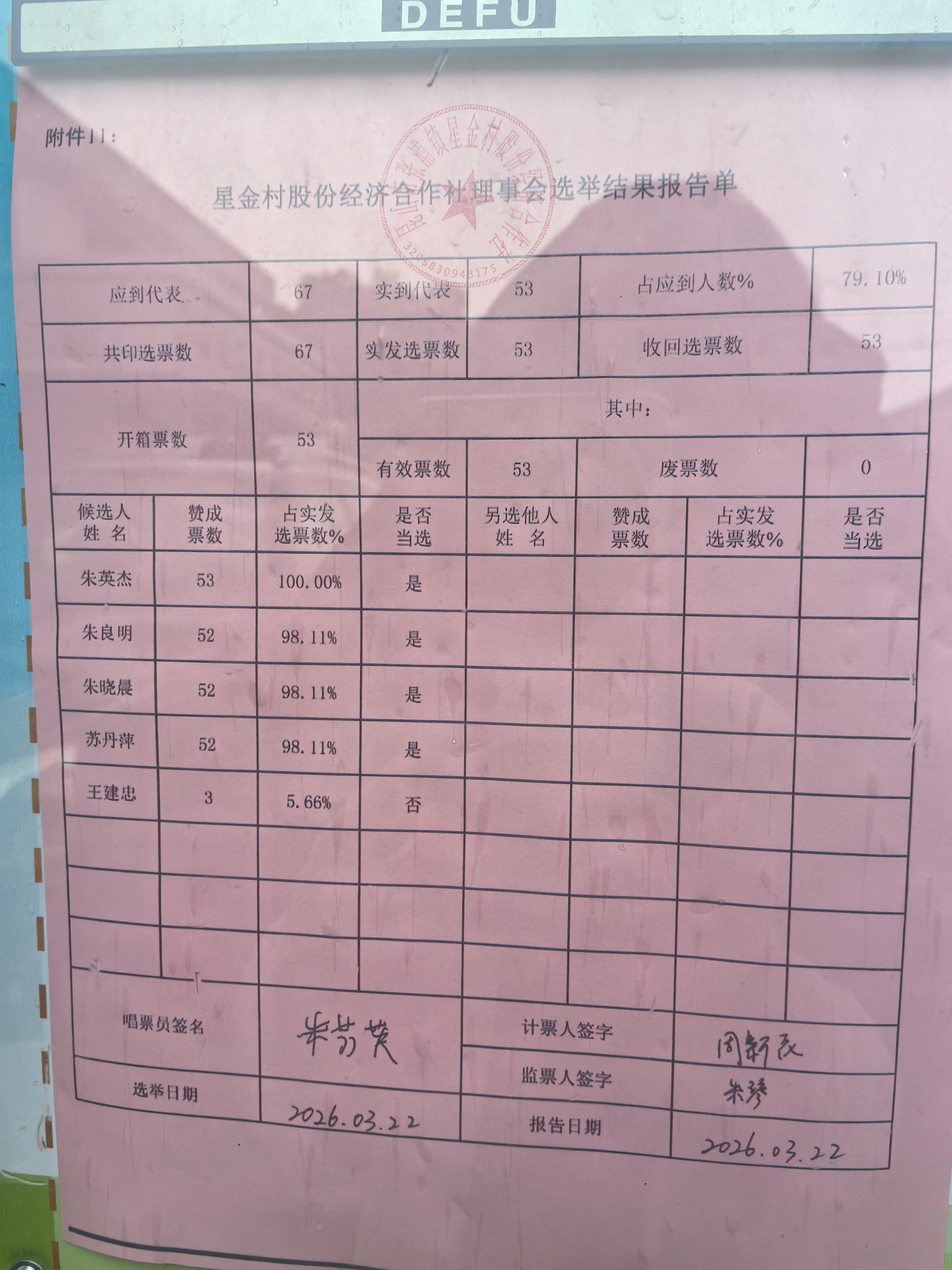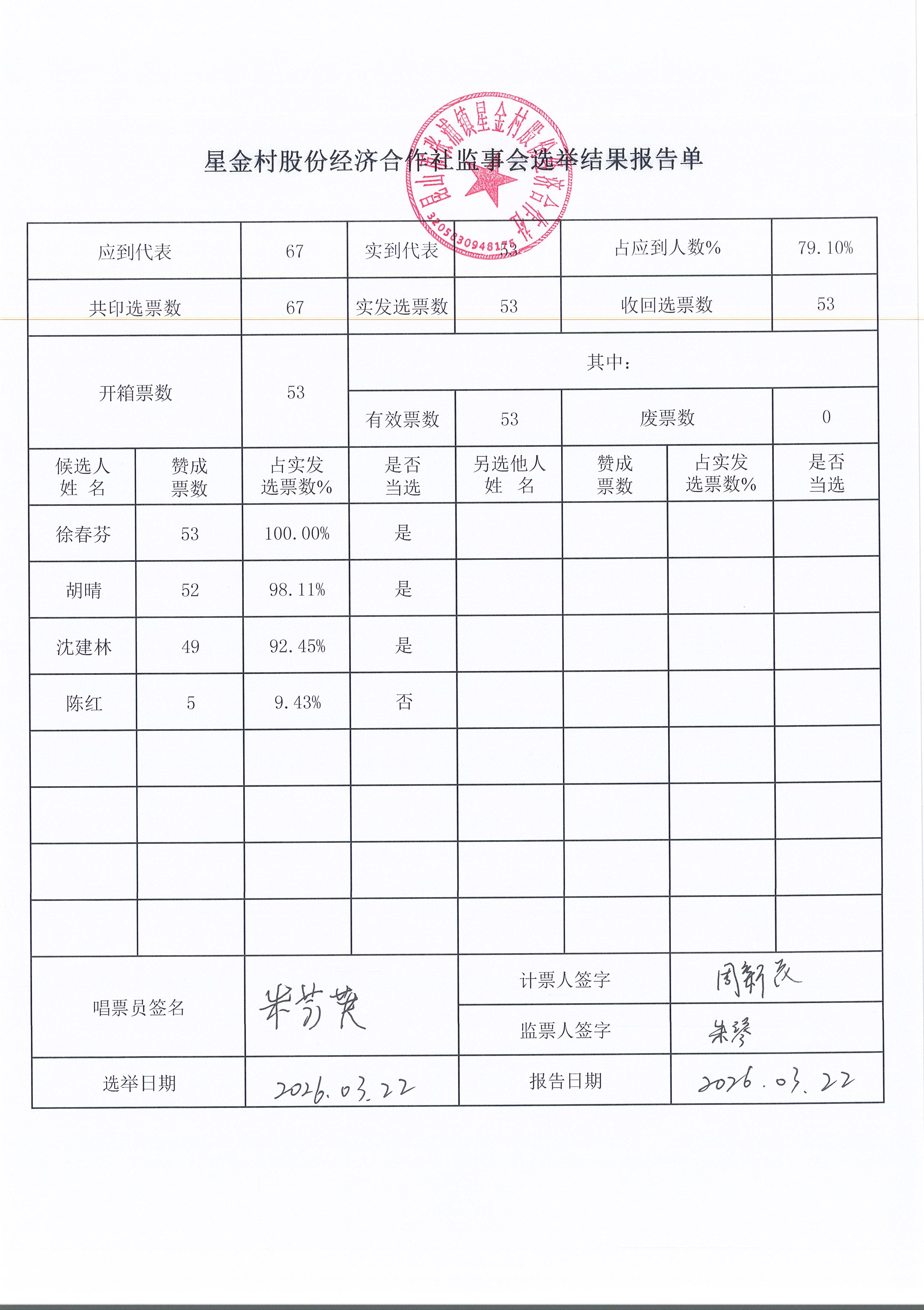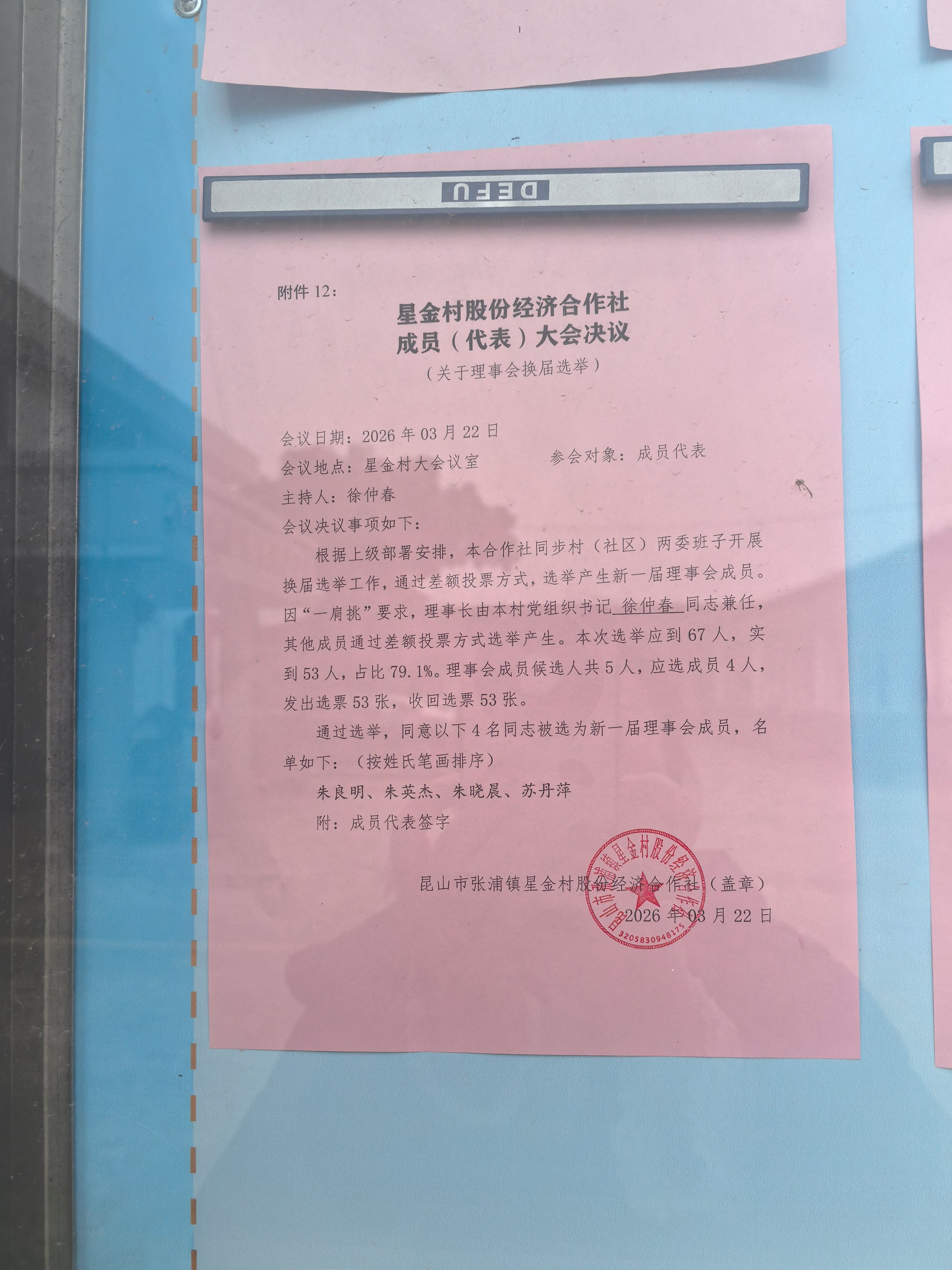 2026年星金村股份经济合作社成员代表大会决议(关于理事会、监事会换届选举)