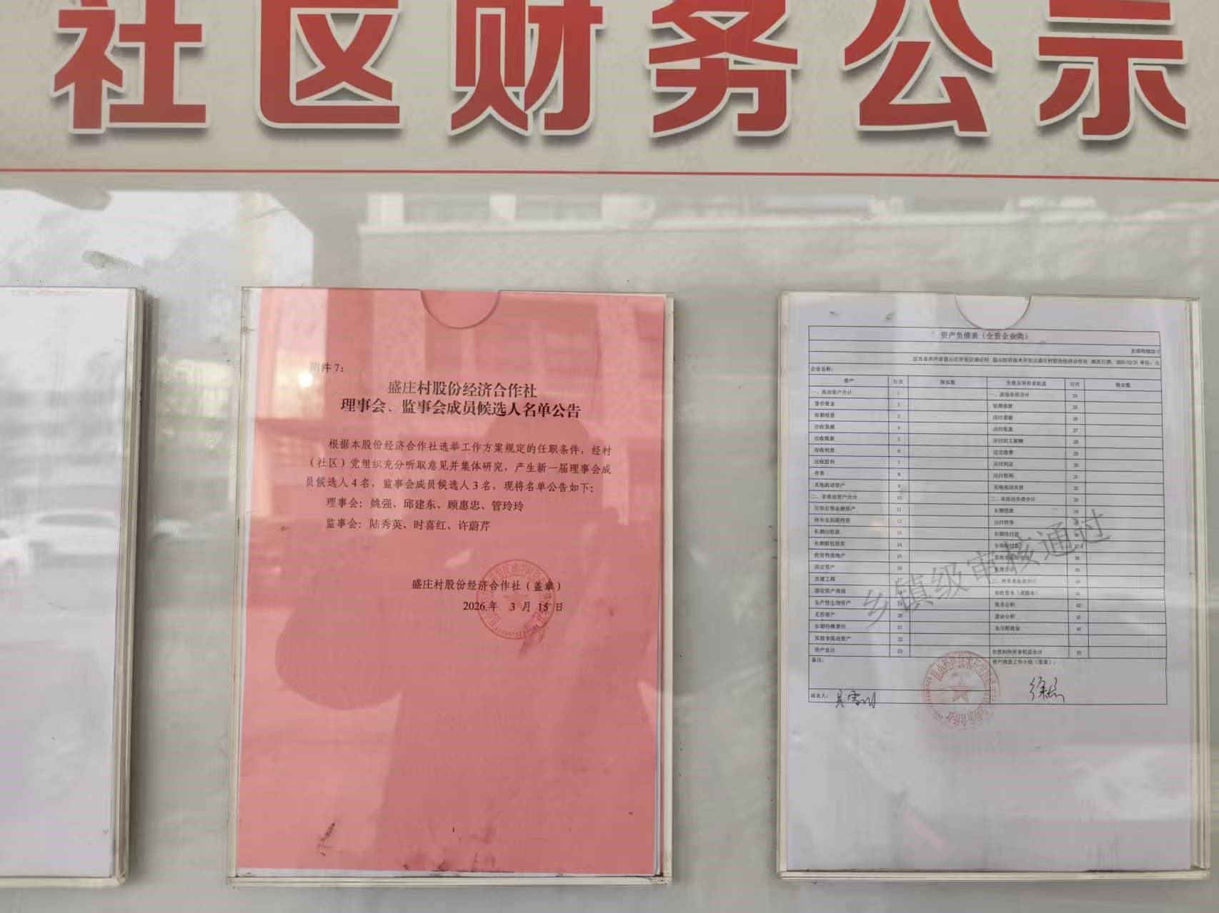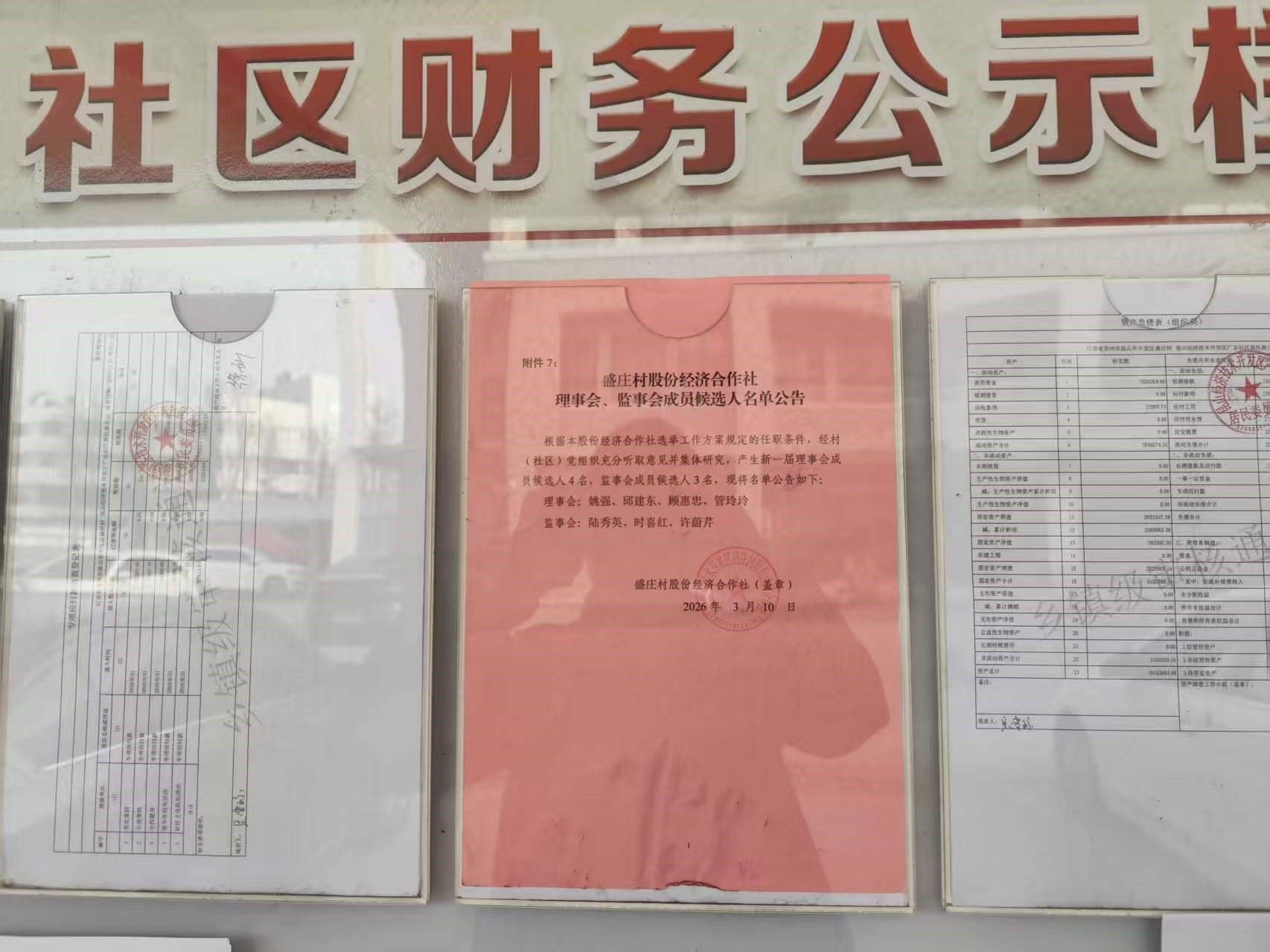 盛庄村股份制监事会、理事会成员公示