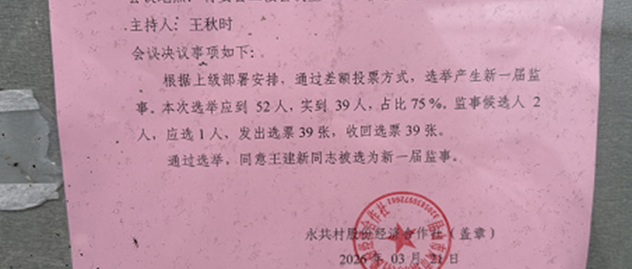 永共村股份经济合作社理事会成员、理事长、监事公告