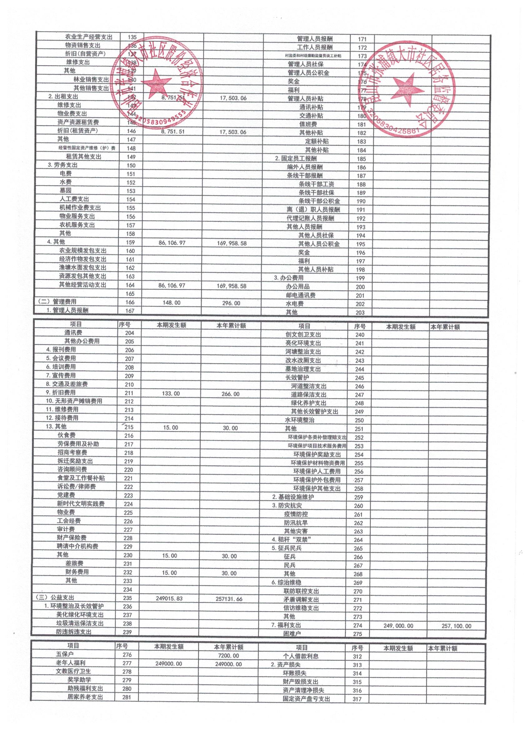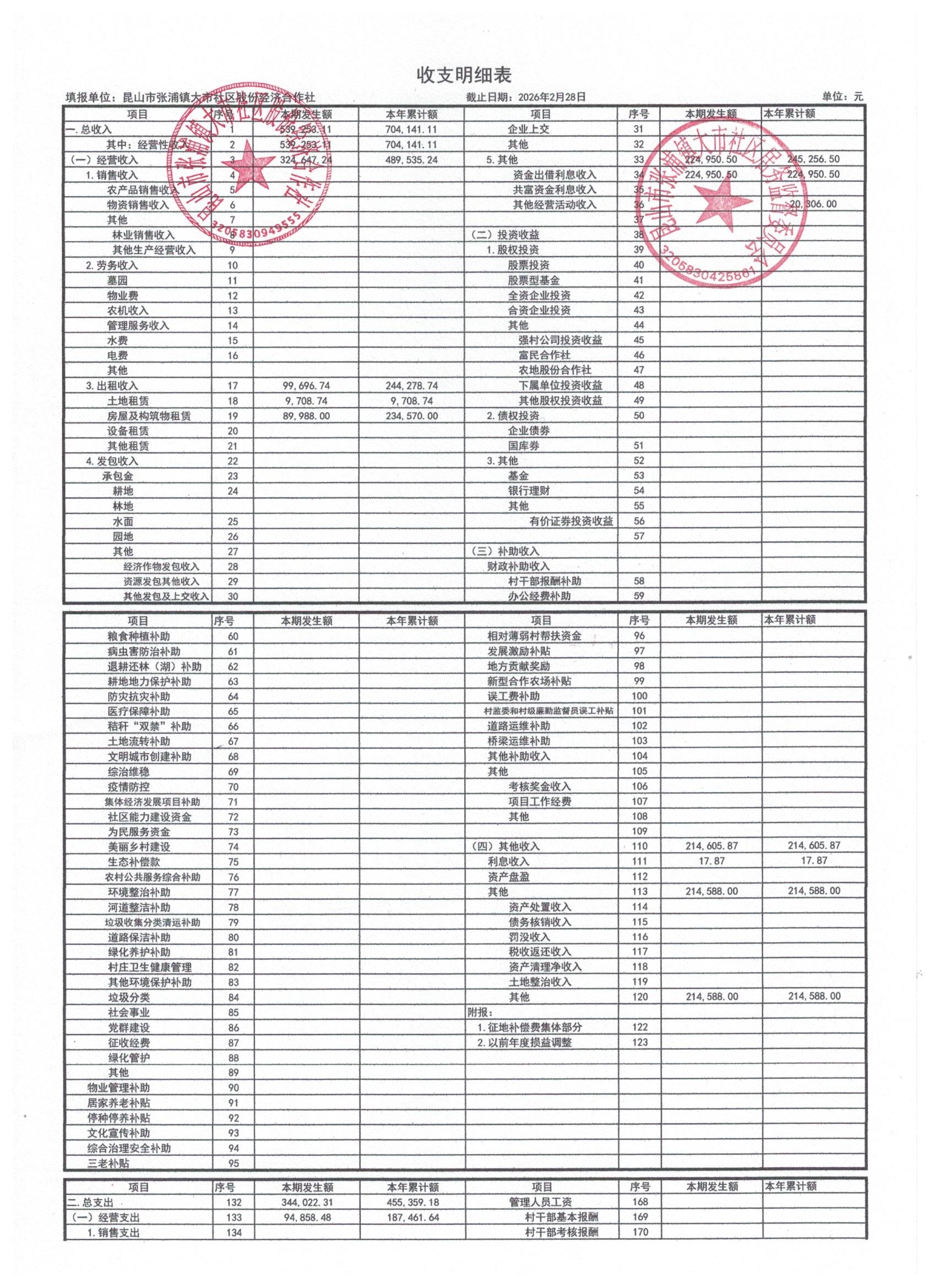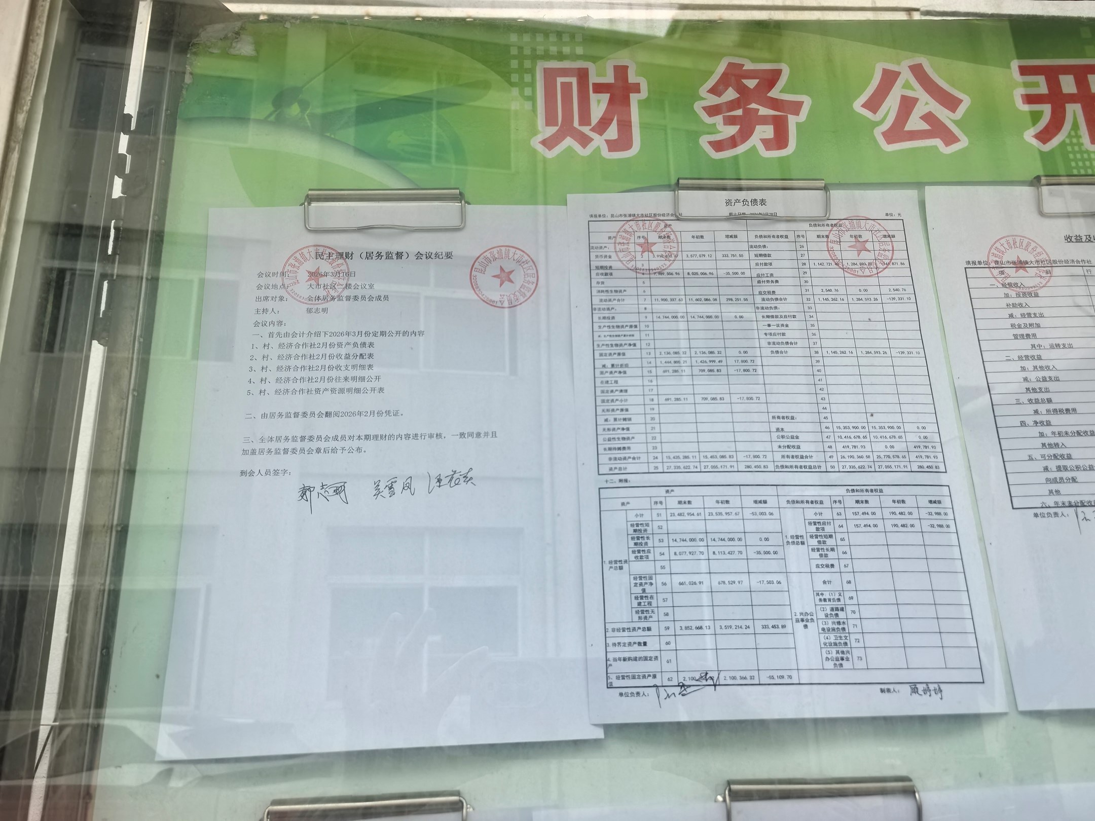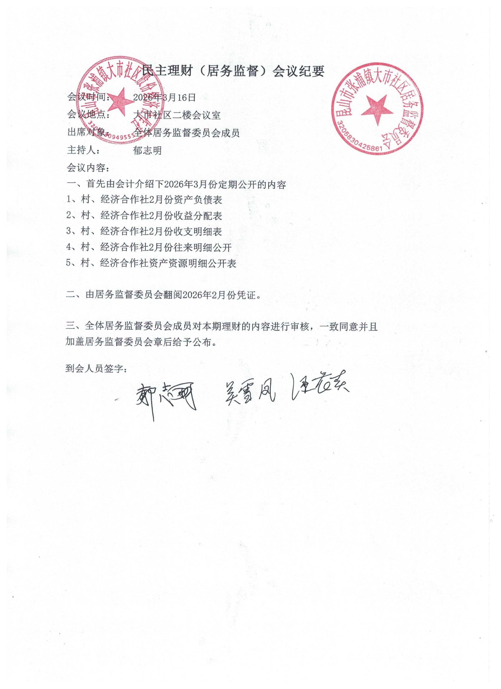 2026年大市社区股份经济合作社3月份财务公开