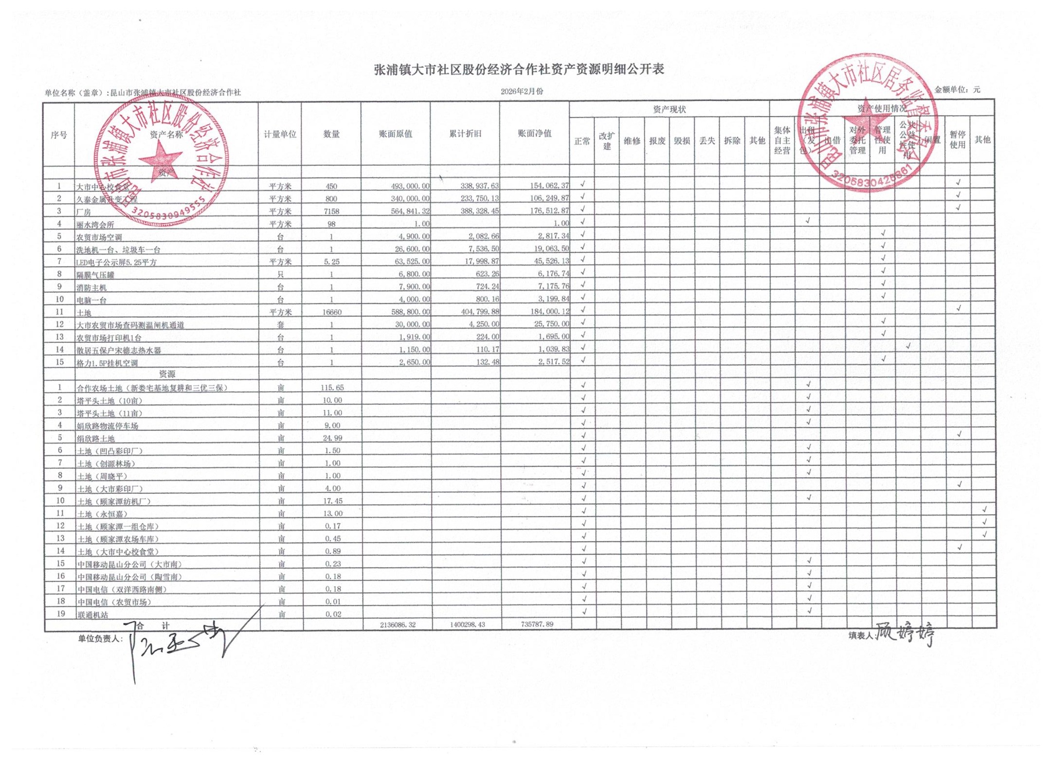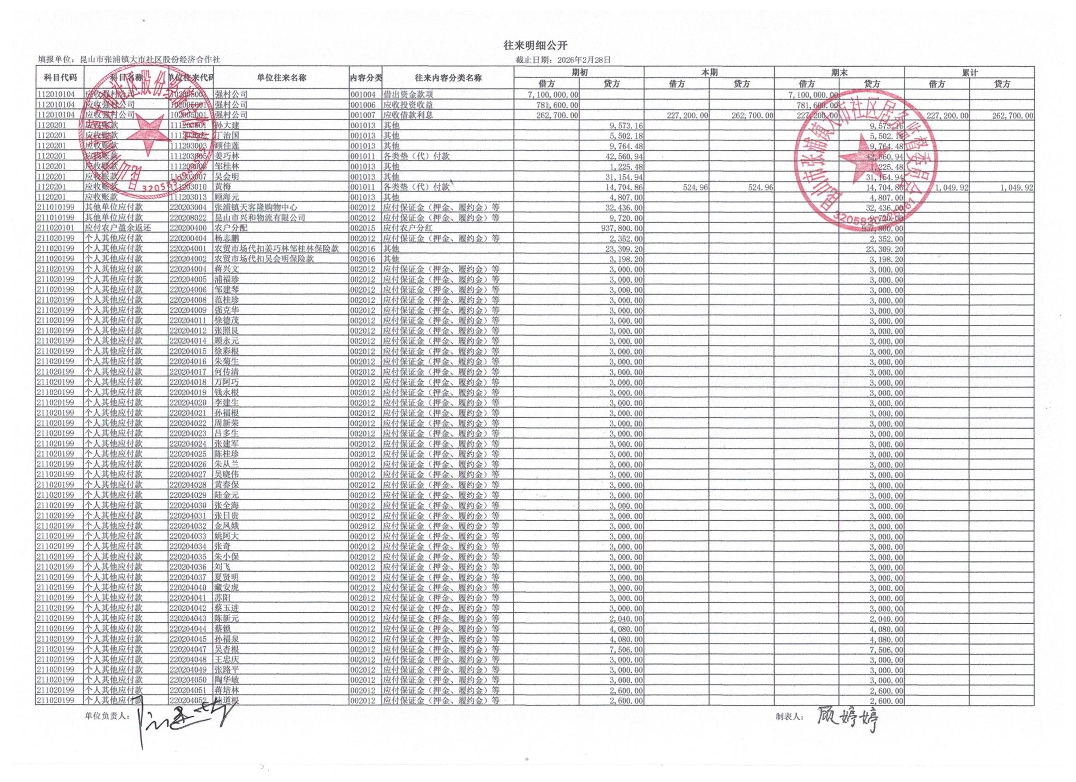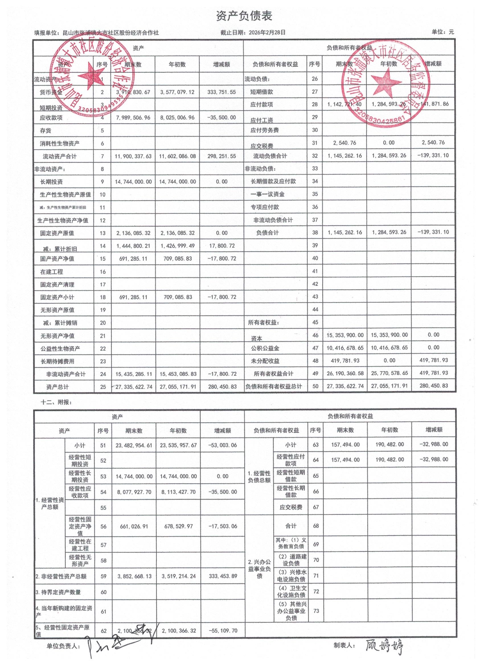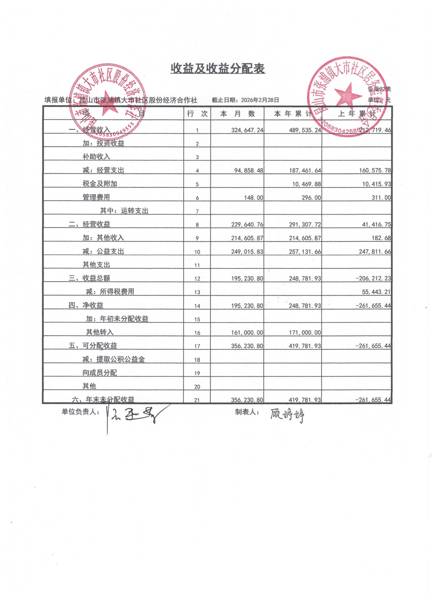 2026年大市社区股份经济合作社3月份财务公开