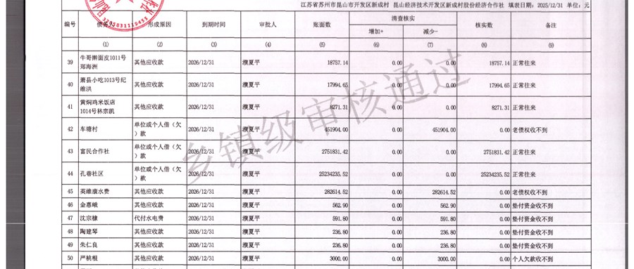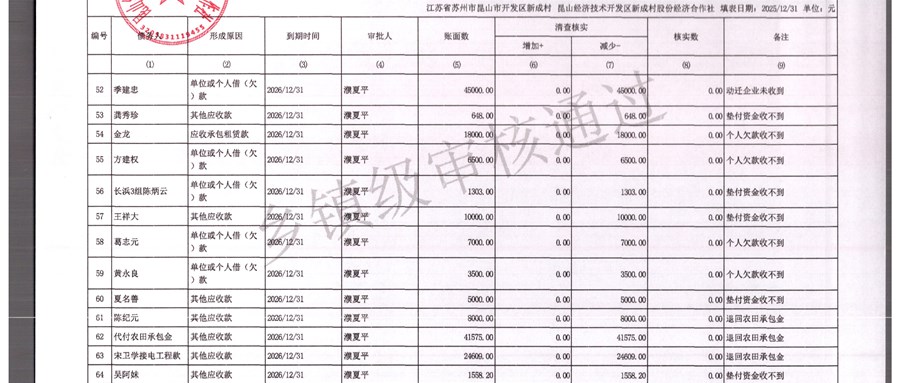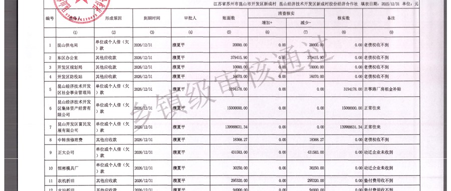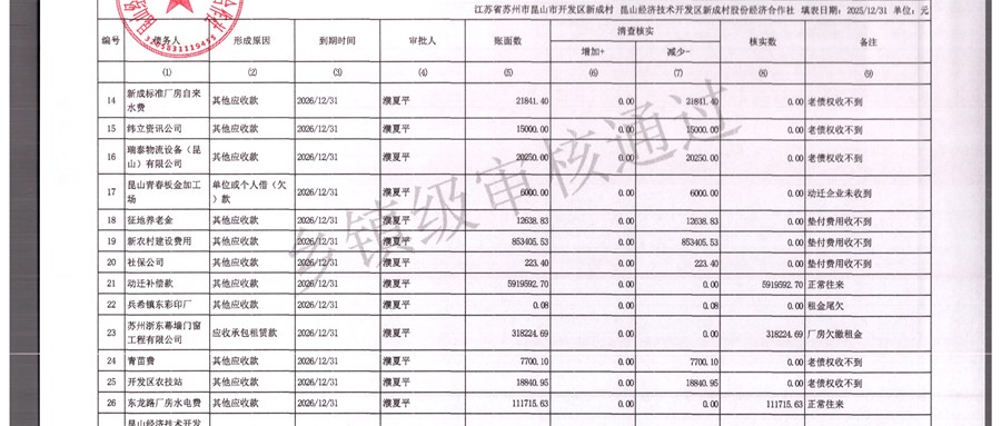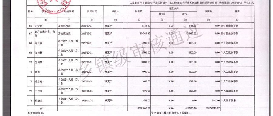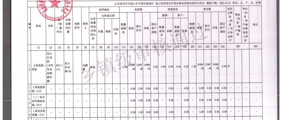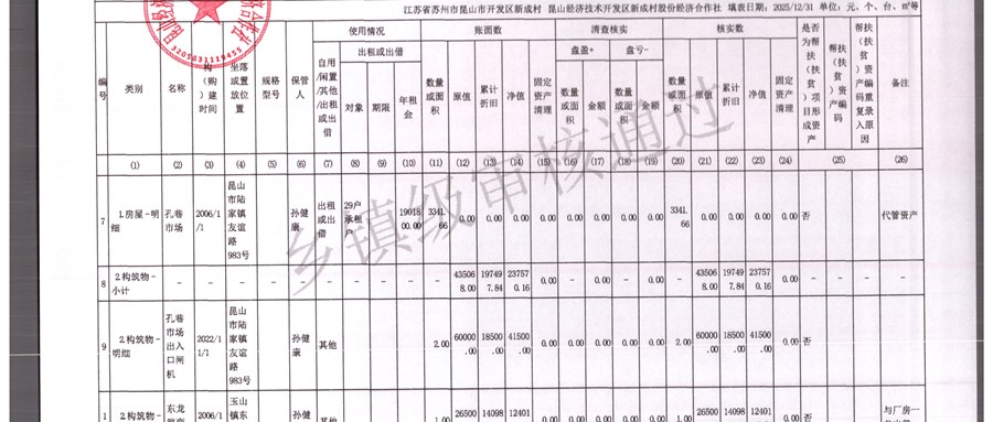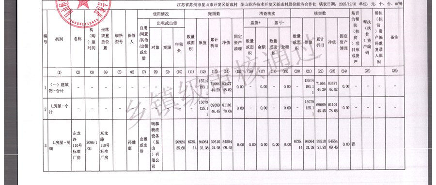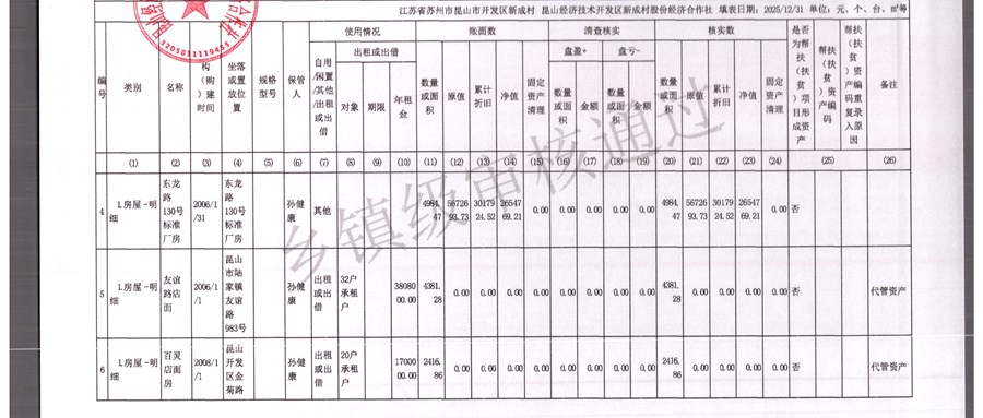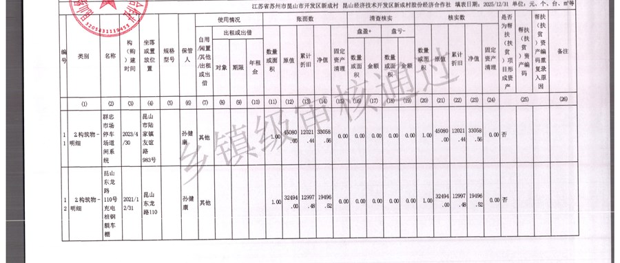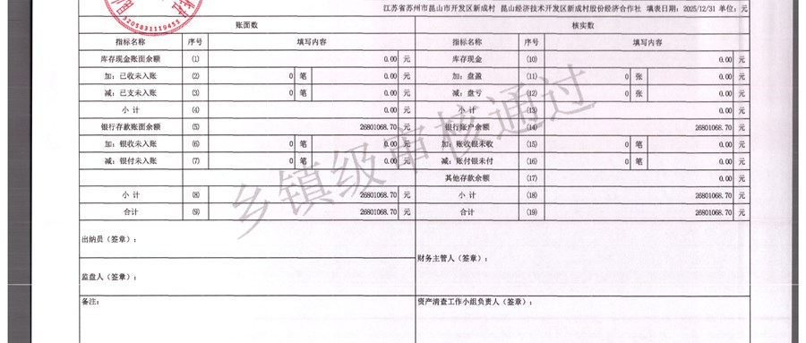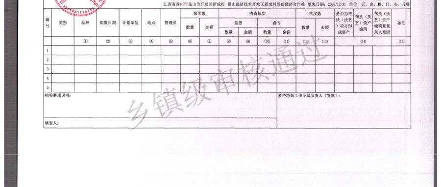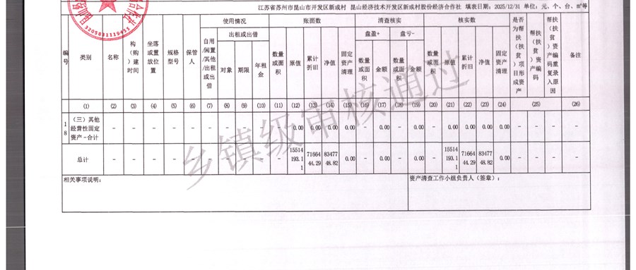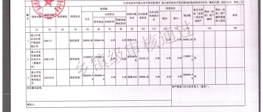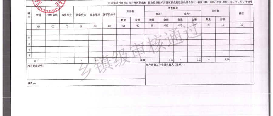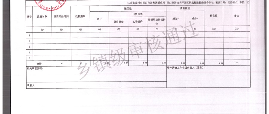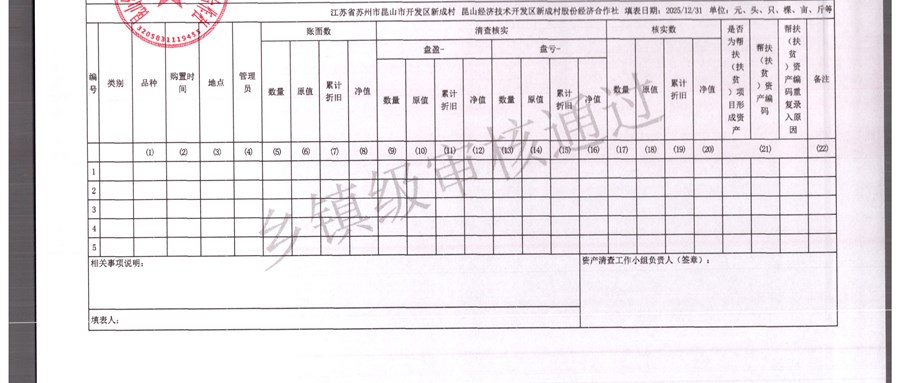 2025年农村集体资产清查报表(新成村股份经济合作)