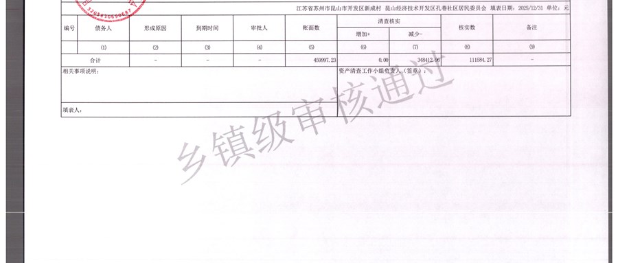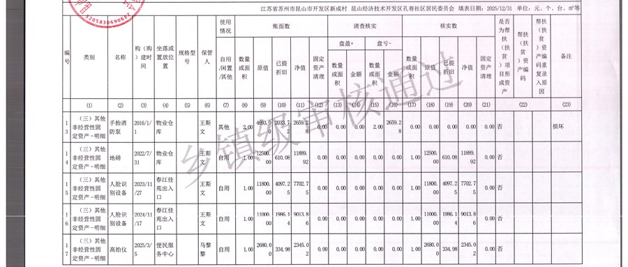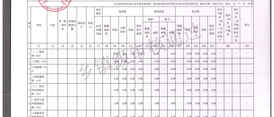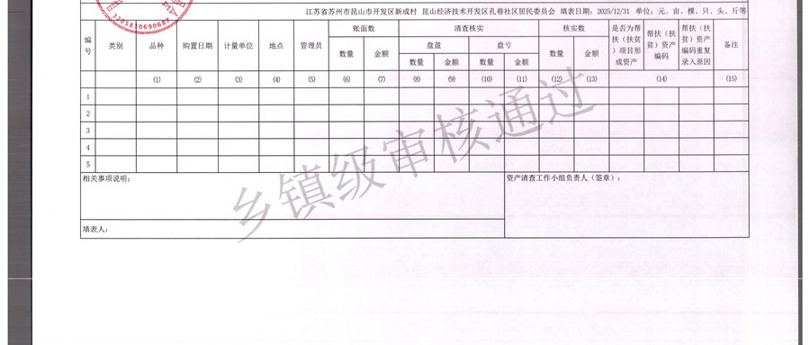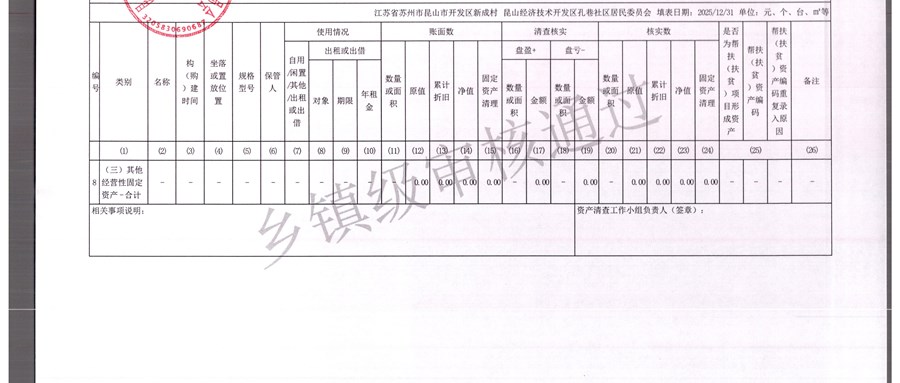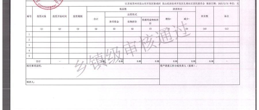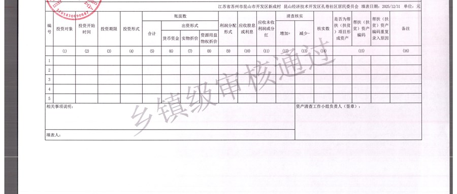 2025年农村集体资产清查报表(孔巷社区)