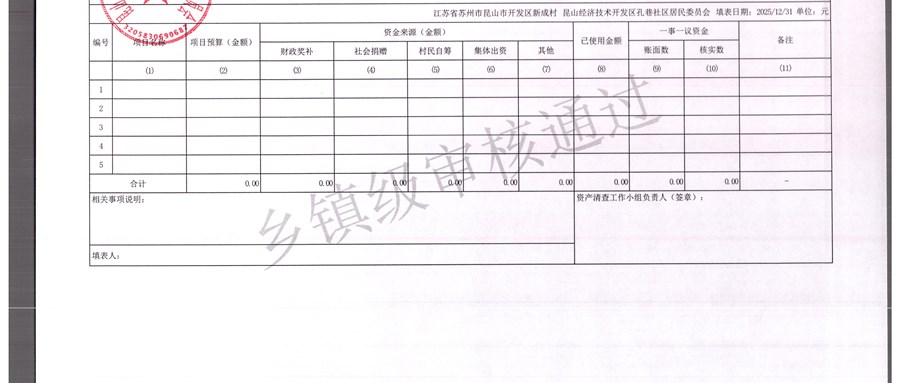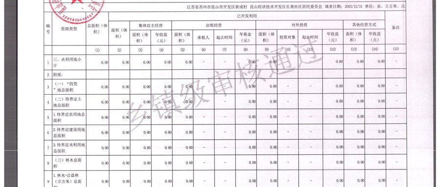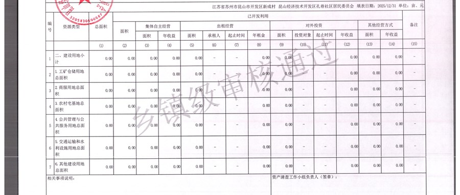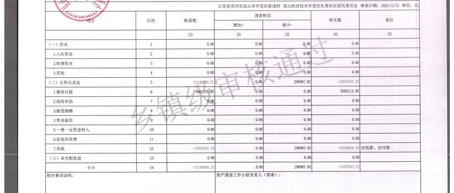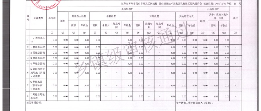 2025年农村集体资产清查报表(孔巷社区)