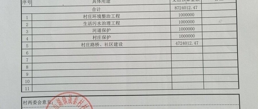 村盖章事项名录