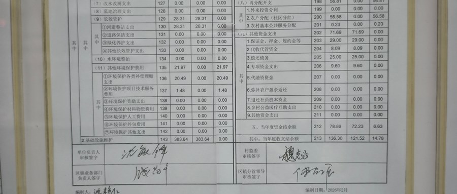 大潭村2025年村委会与股份经济合作社收支决算及第三方服务项目决算公示