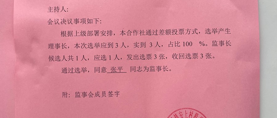 安上村股份经济合作社成员(代表)大会决议公示-关于监事长选举