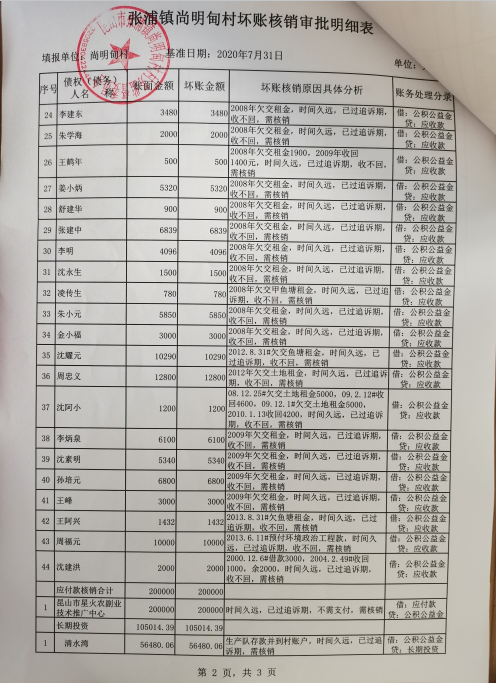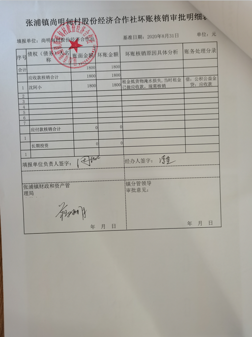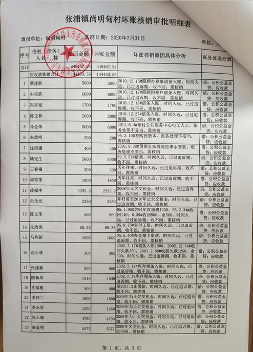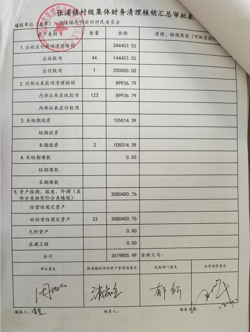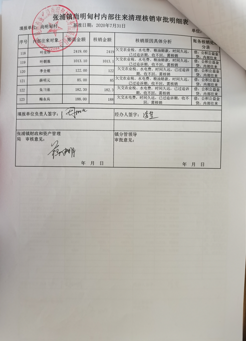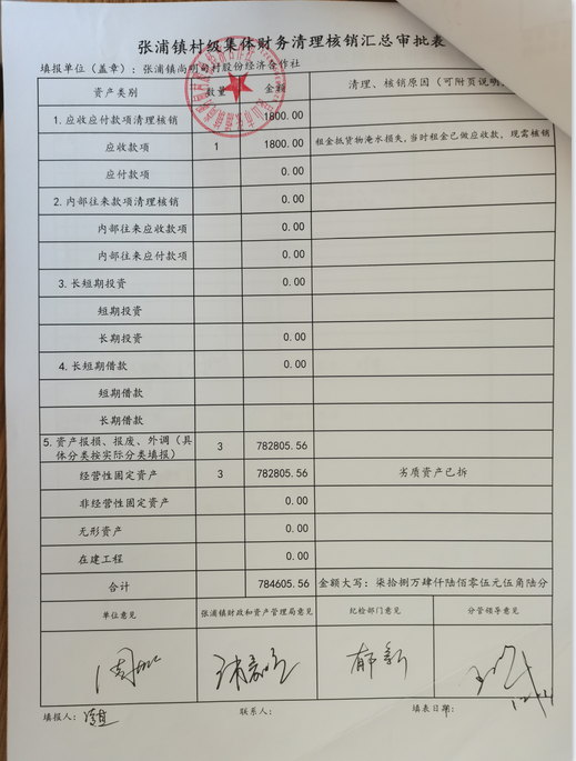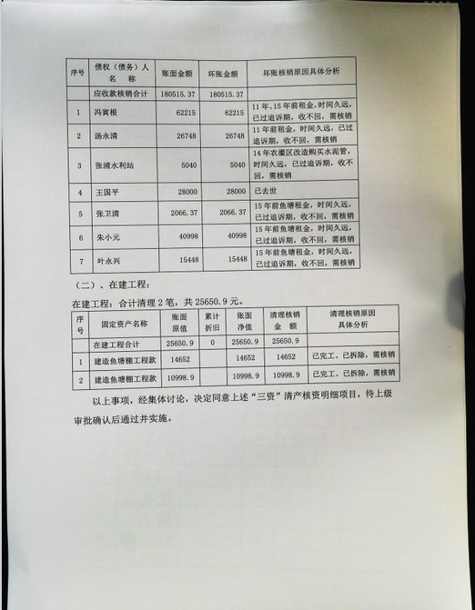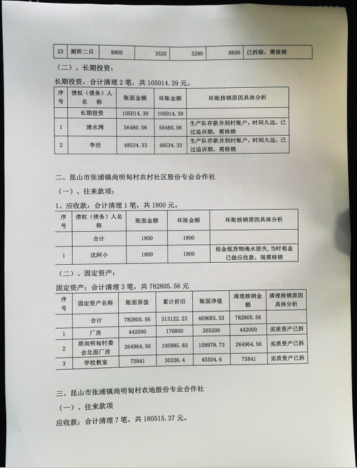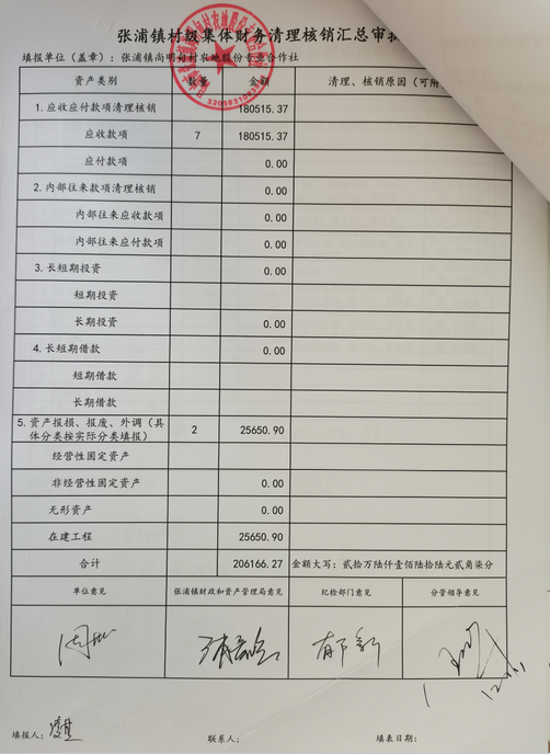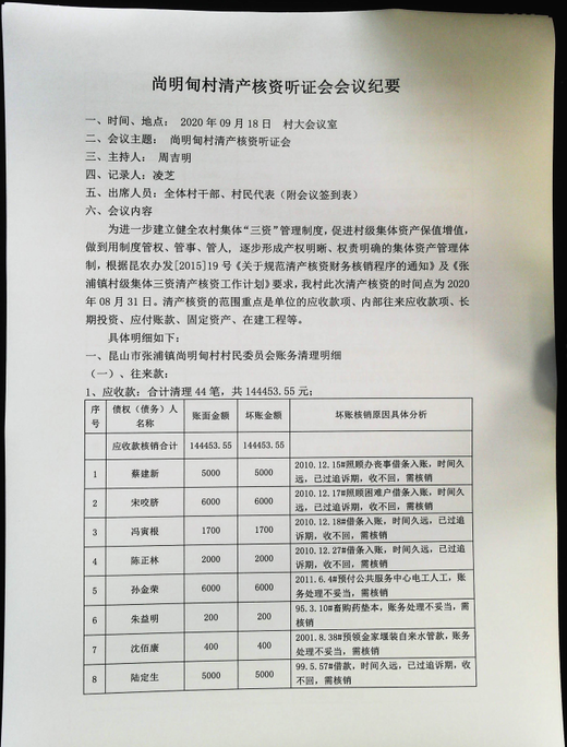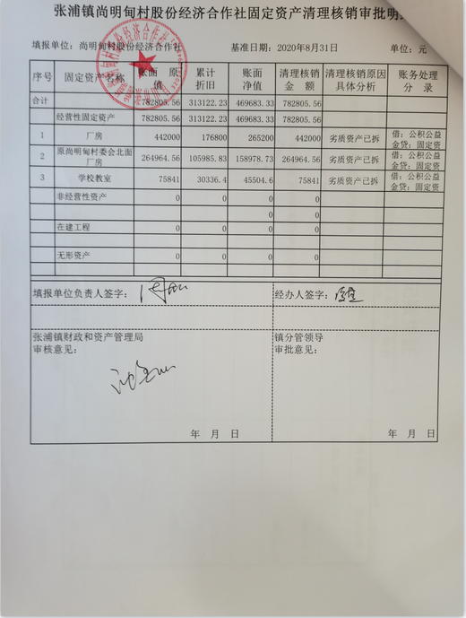 尚明甸村、农地、合作社清产核资审批表及会议纪要