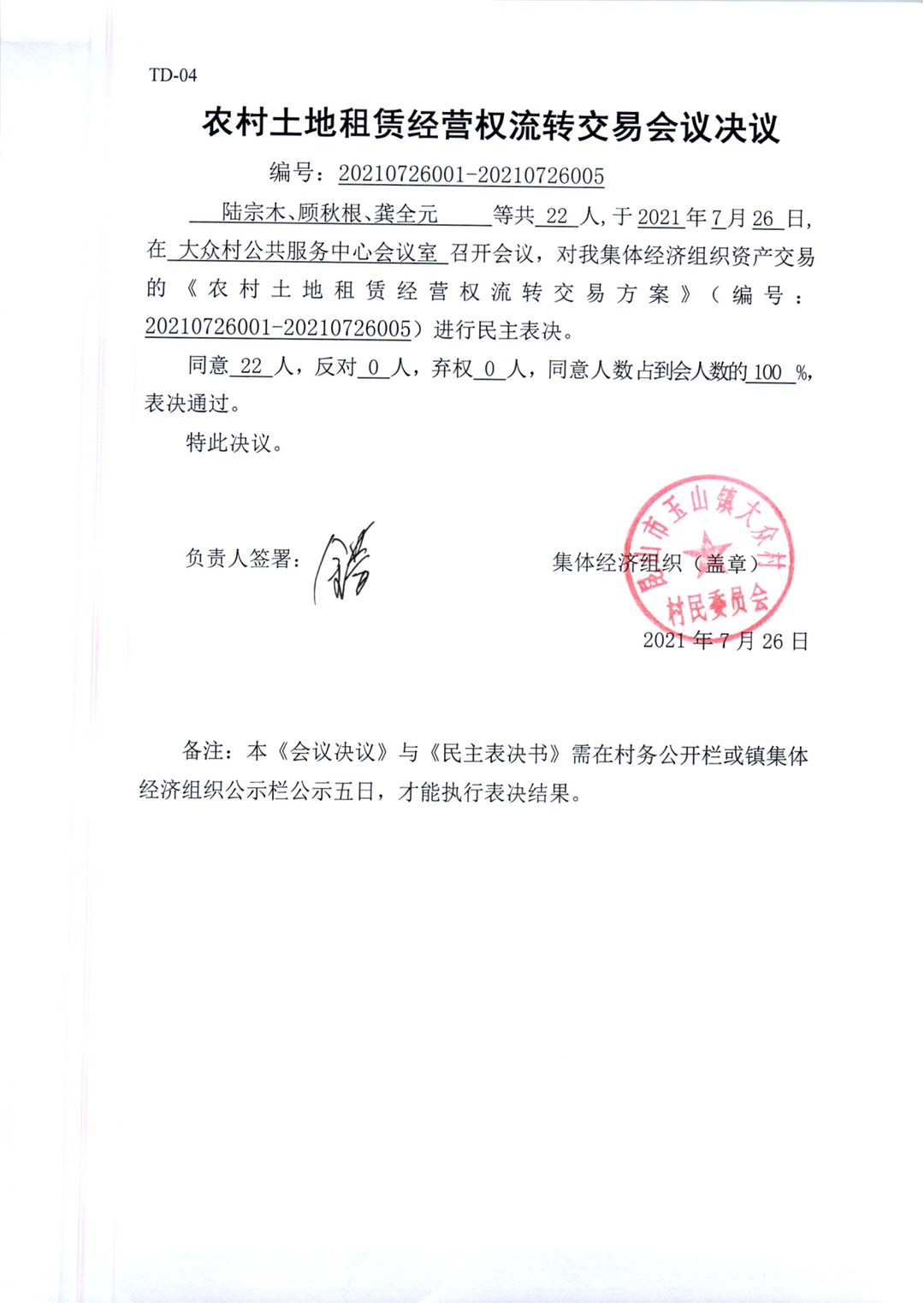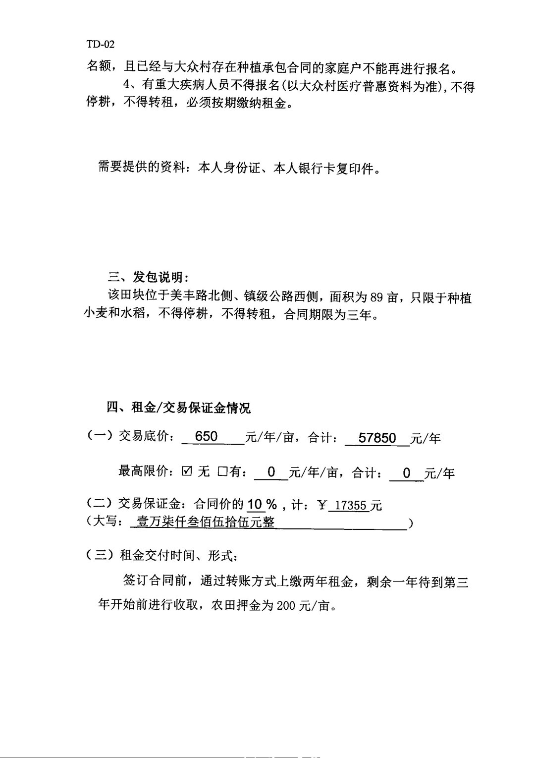 大众村村委会南侧田块交易公告