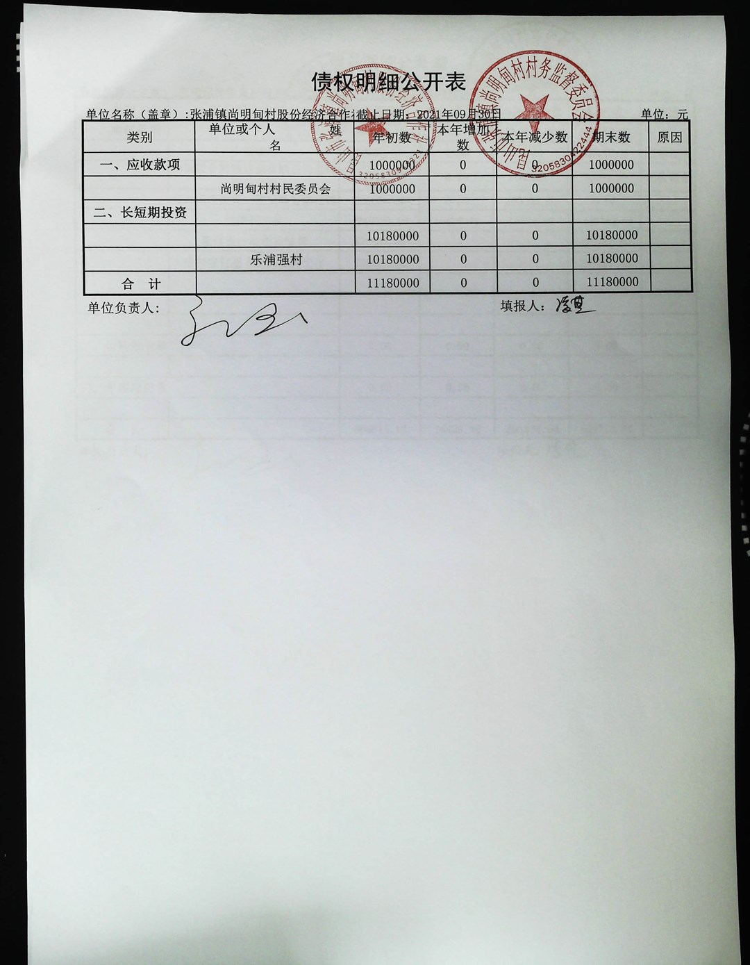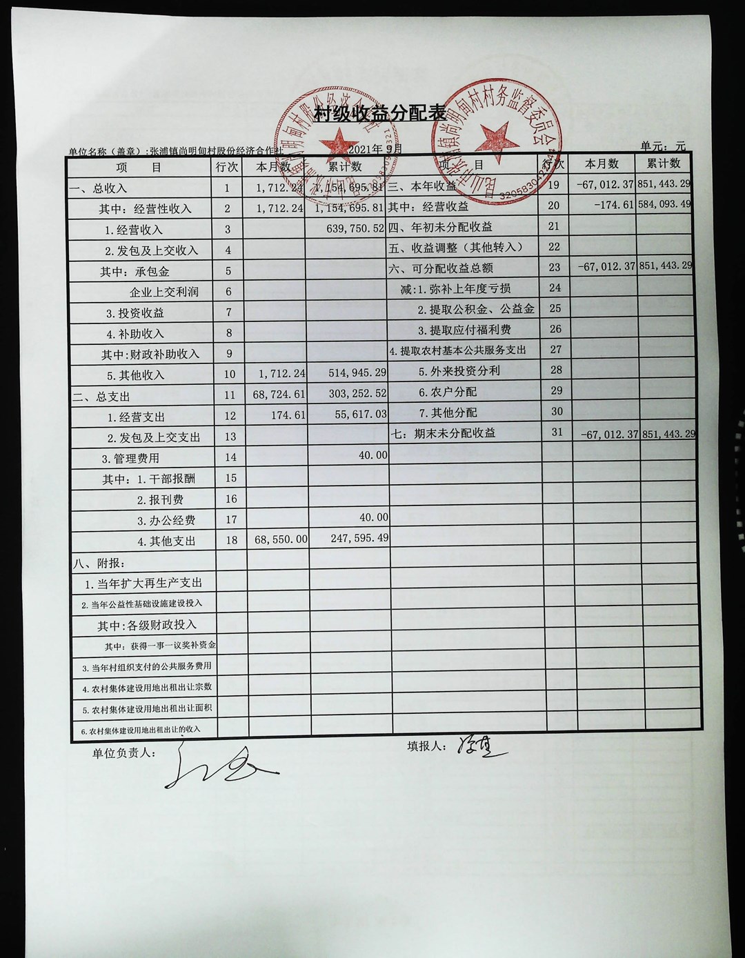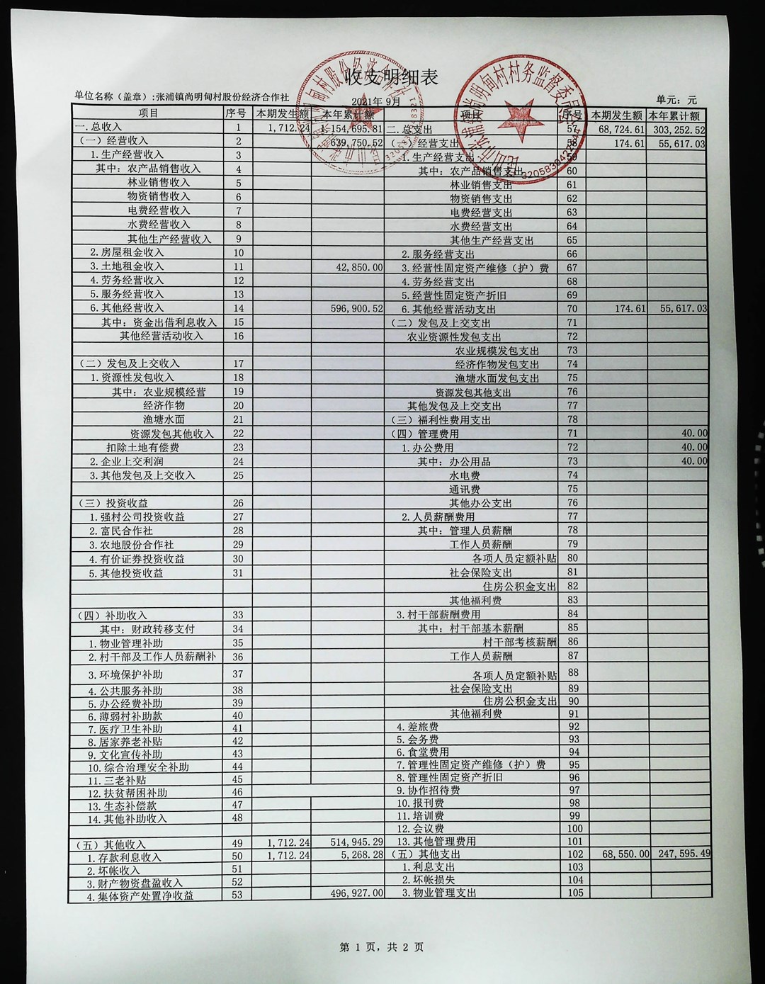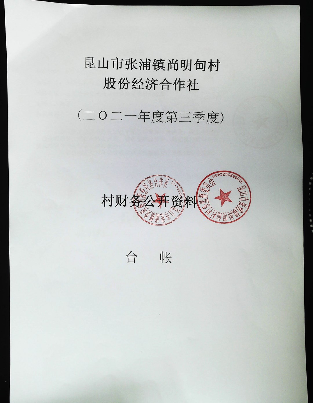 尚明甸村股份经济合作社2021年第三季度财务公开