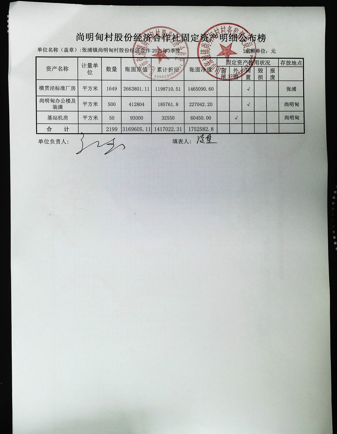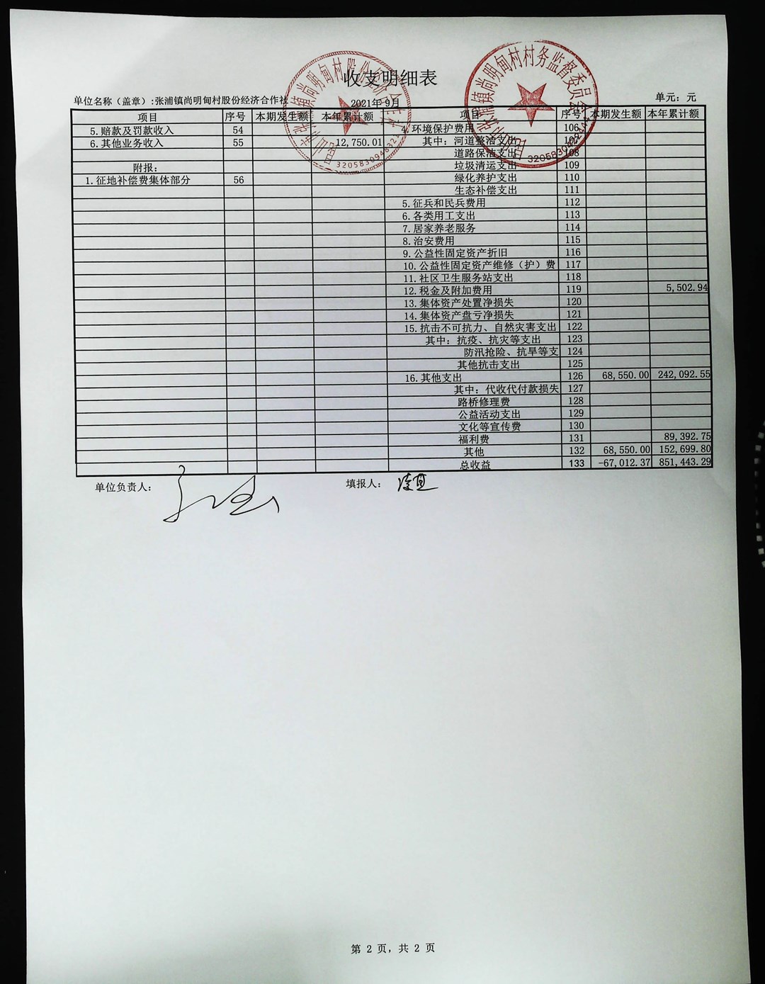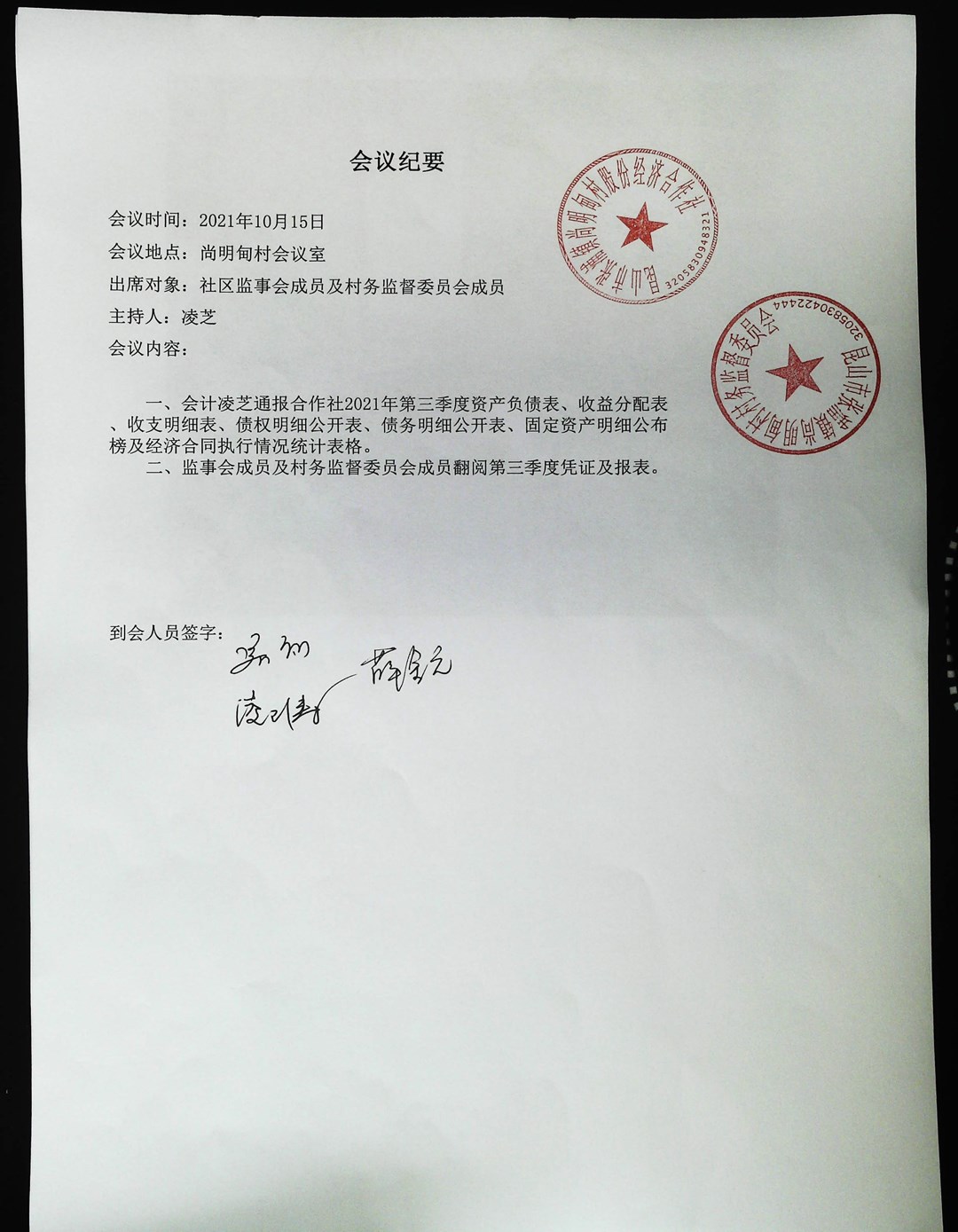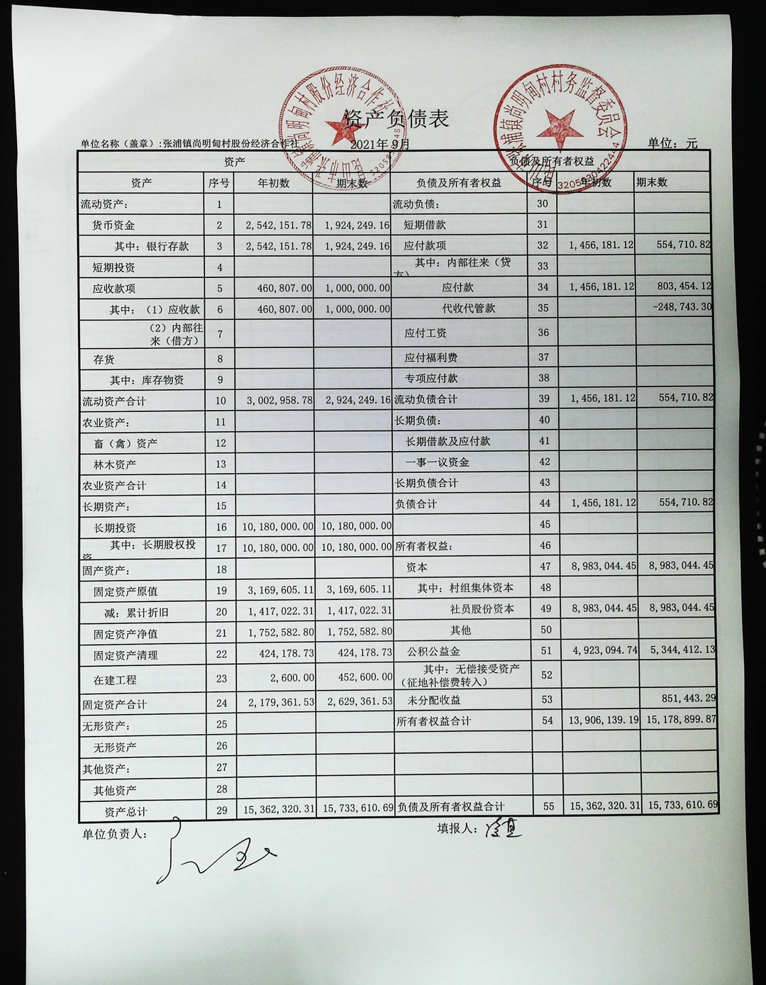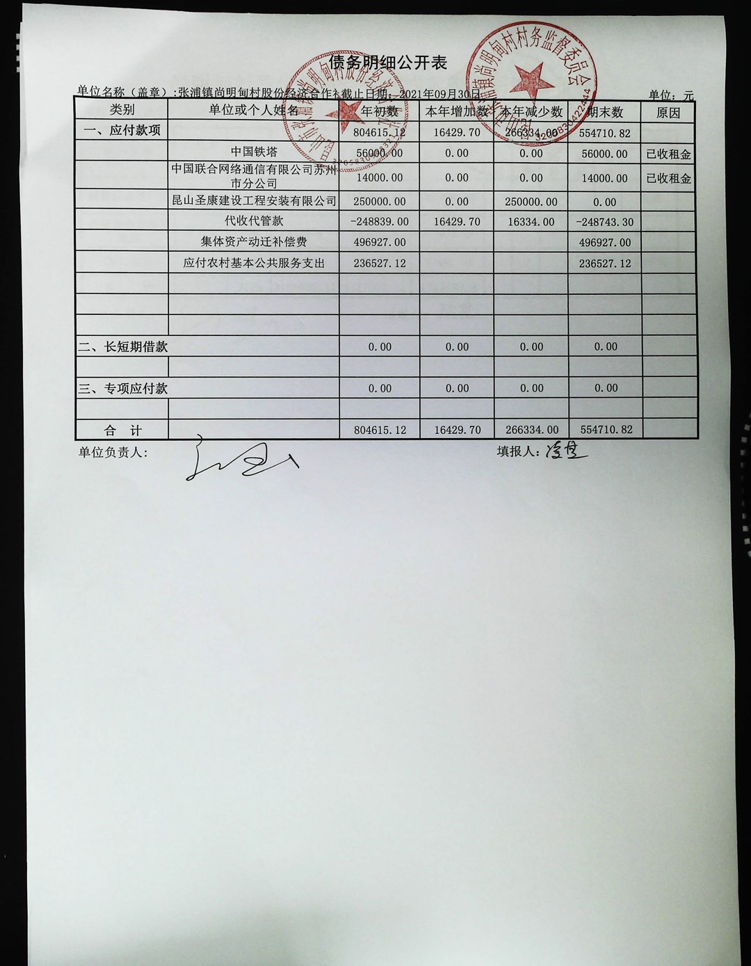 尚明甸村股份经济合作社2021年第三季度财务公开