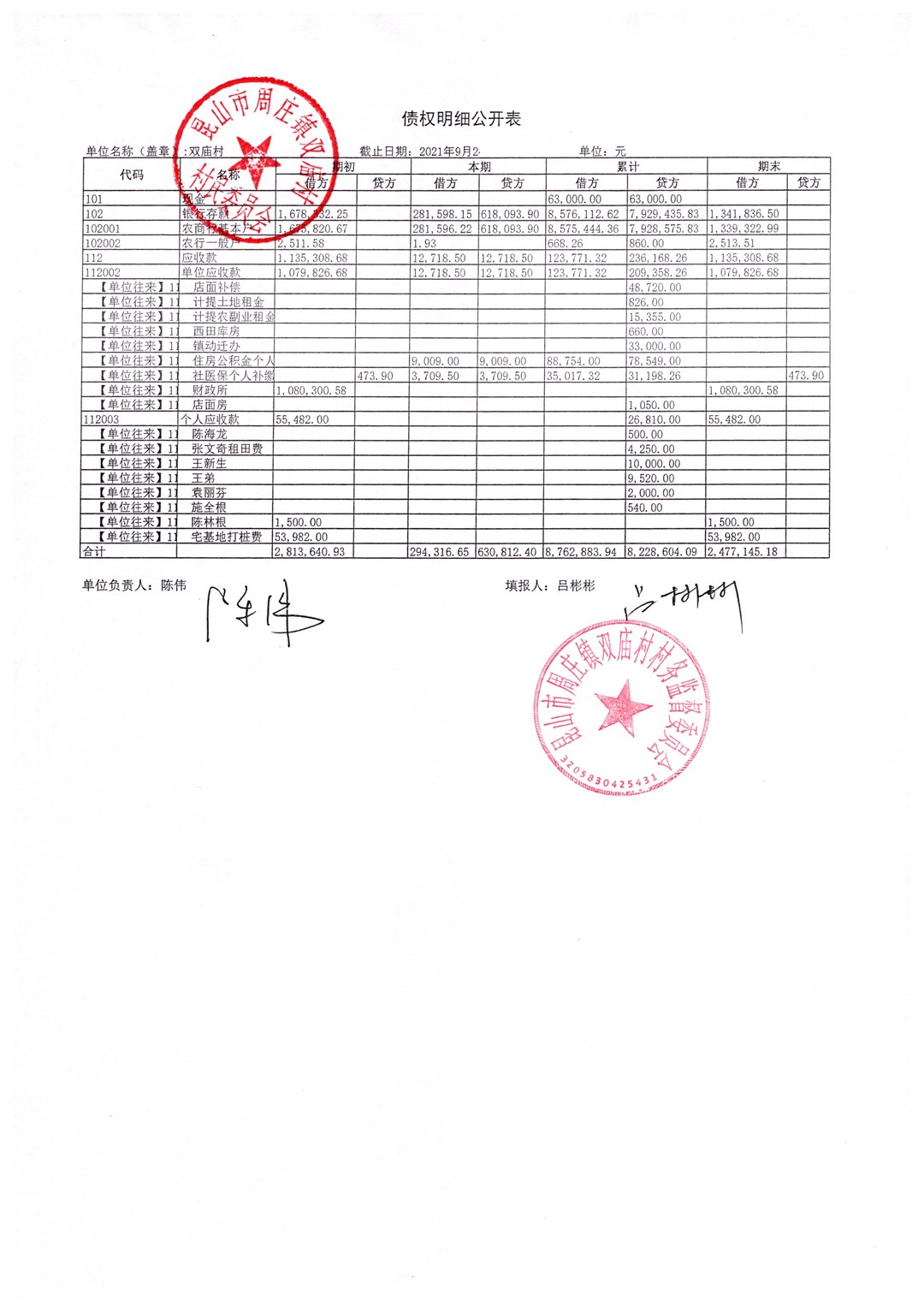 2021年第三季度财务公开-应收及债权明细公开表(村)