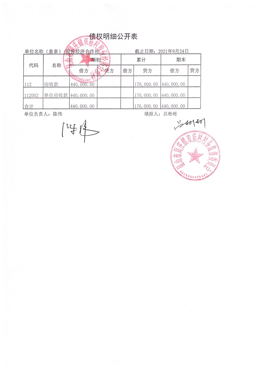 2021年第三季度财务公开-应收及债权明细公开表(社区)