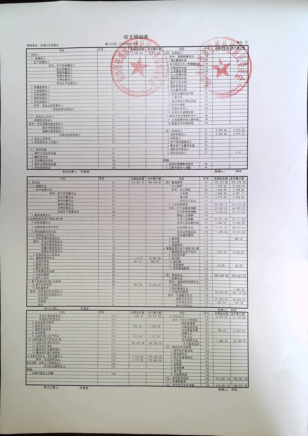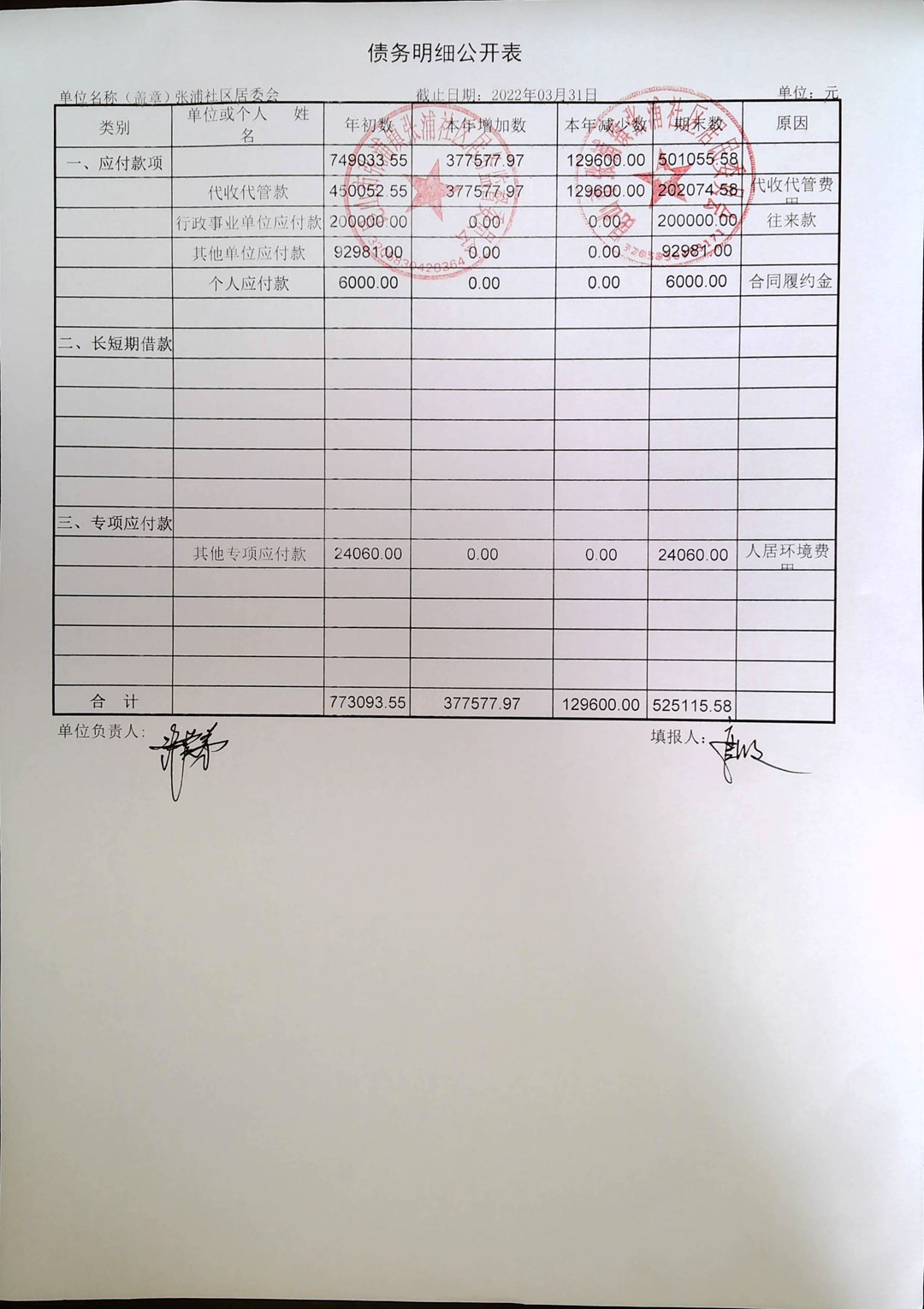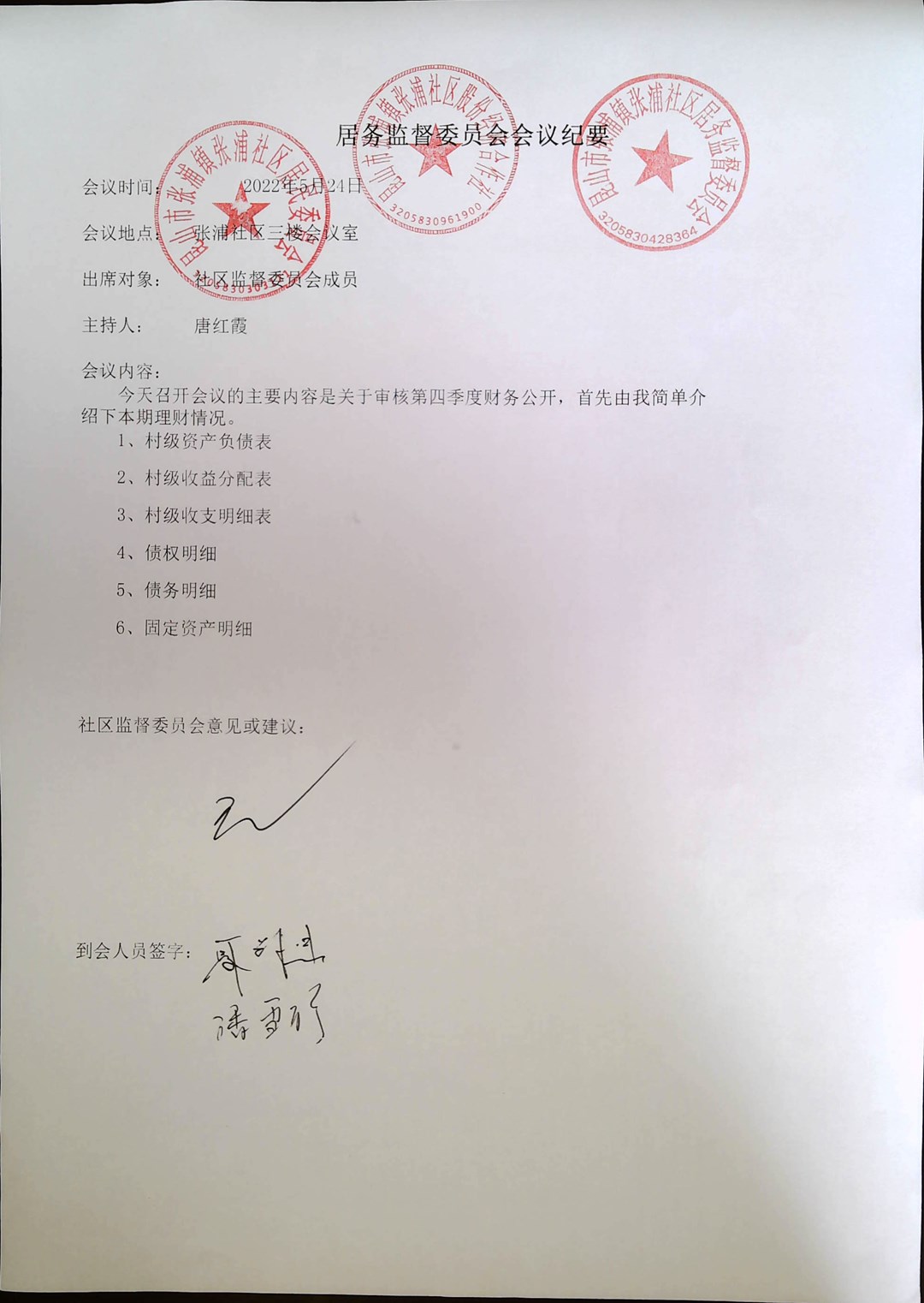 张浦社区一季度居委财务公开