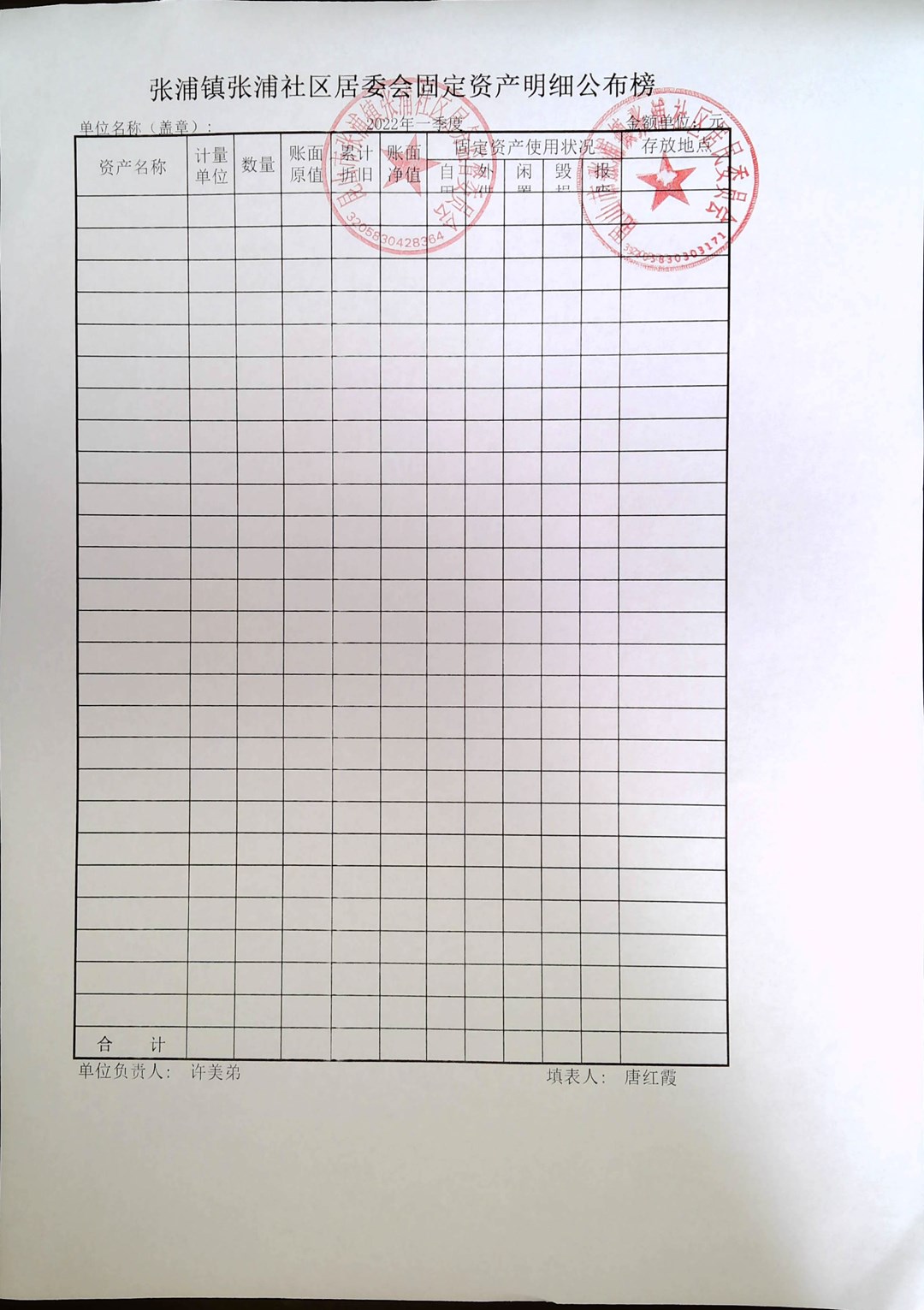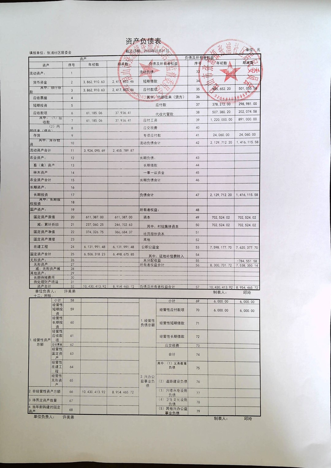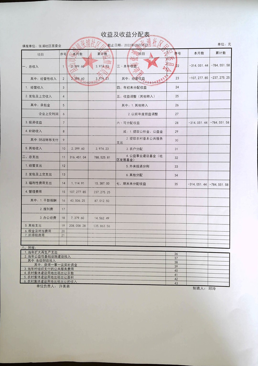 张浦社区一季度居委财务公开