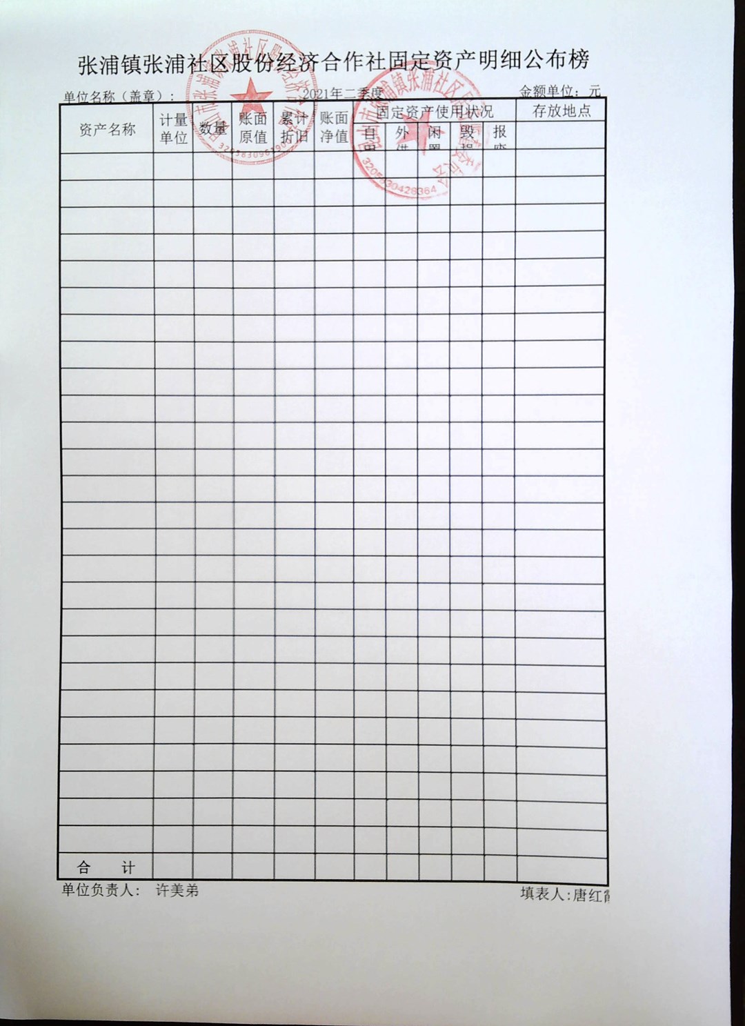 村盖章事项名录