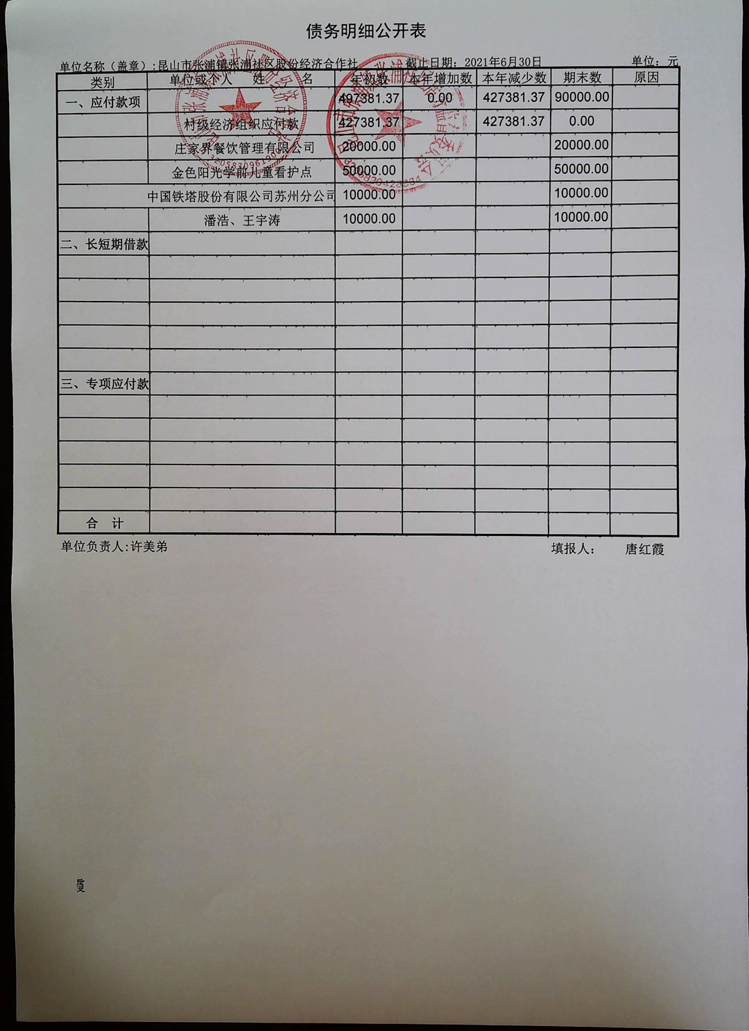 2022年二季度合作社财务公开