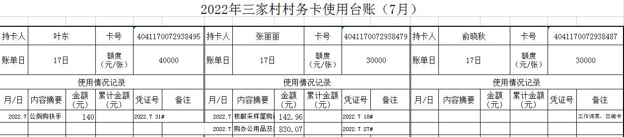 2022年三家村村务卡使用台账(7月)