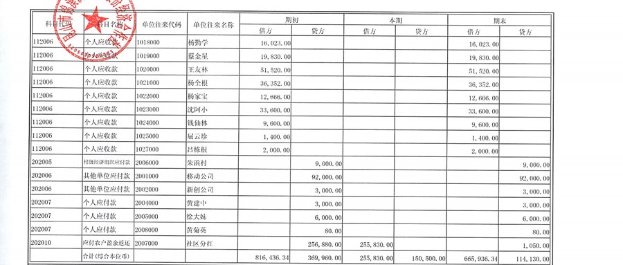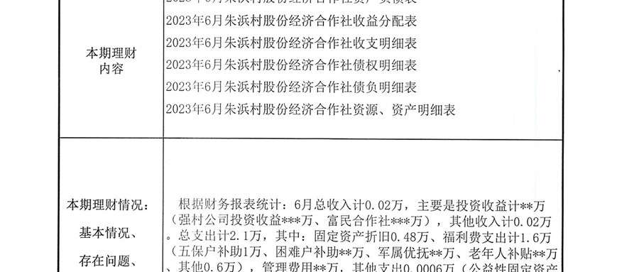 2023年朱浜村(社区)6月份财务公开资料