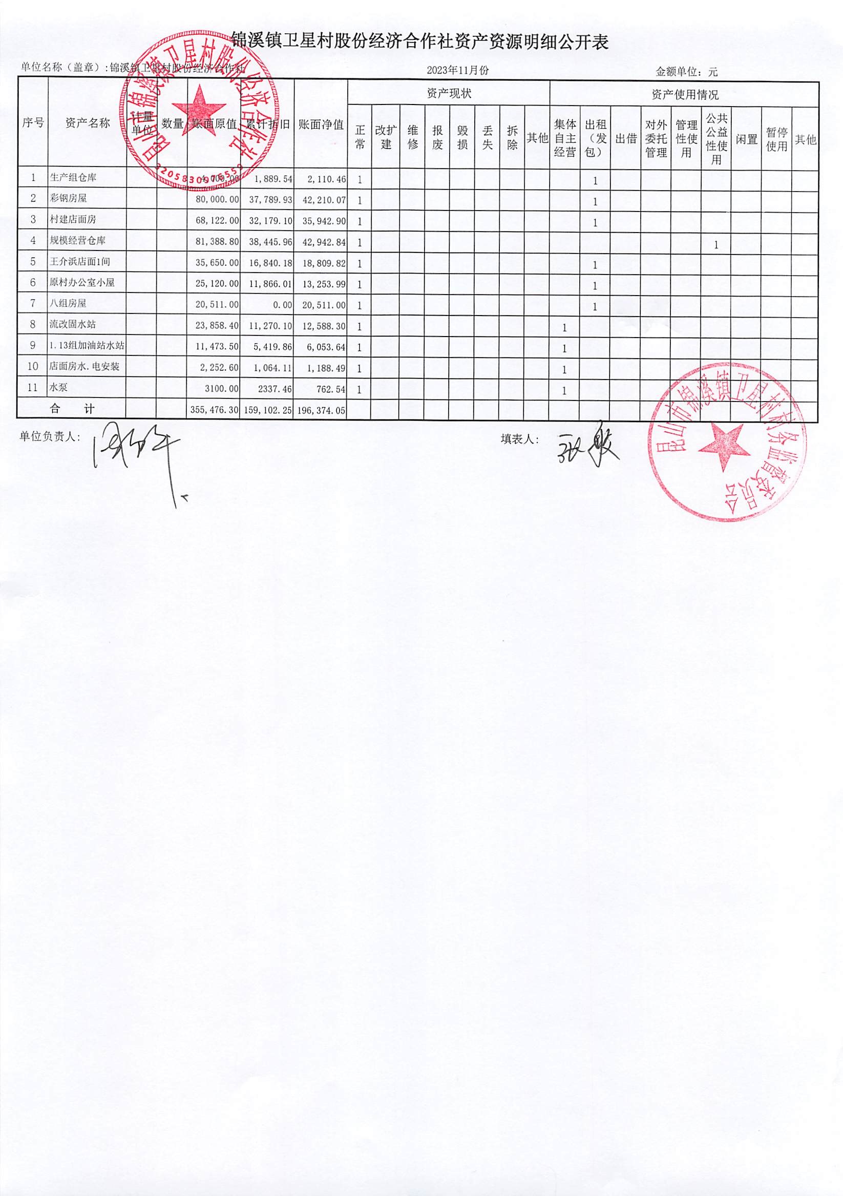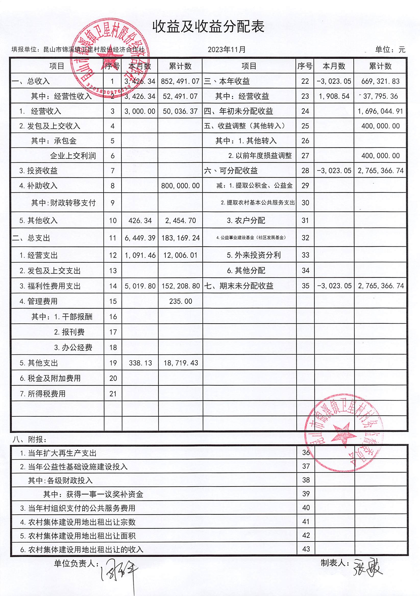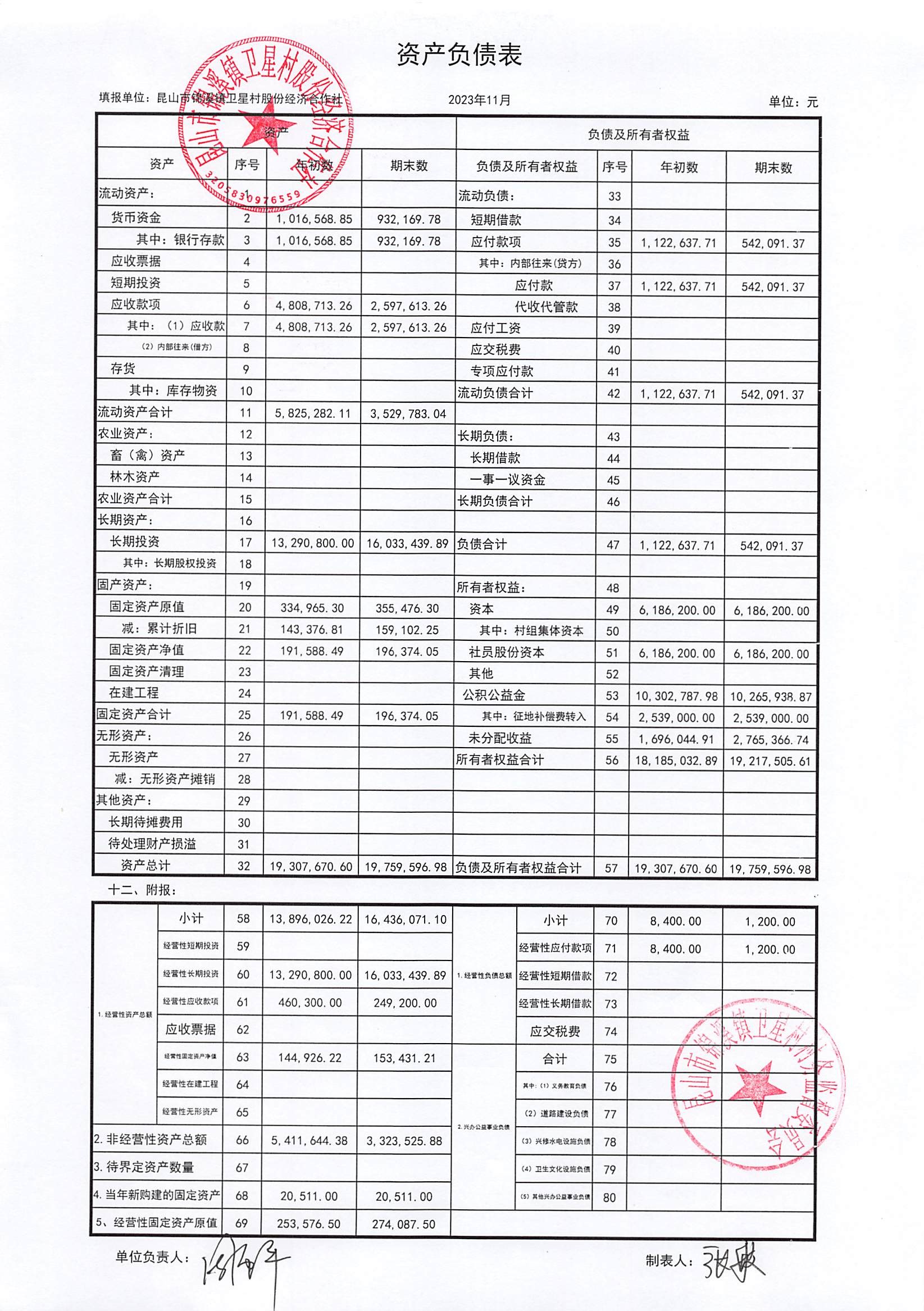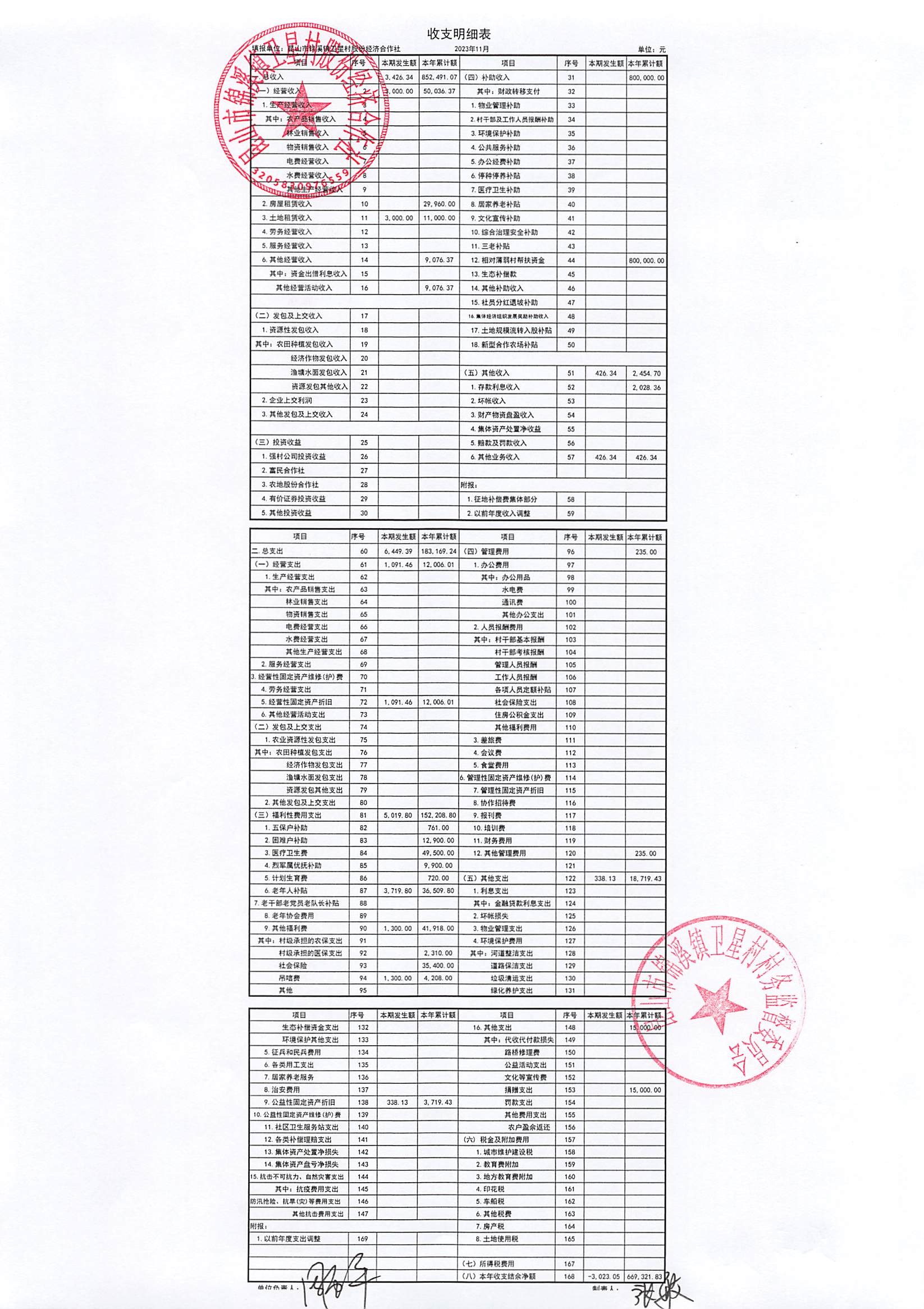 卫星股份经济合作社2023年11月财务公开内容如下: