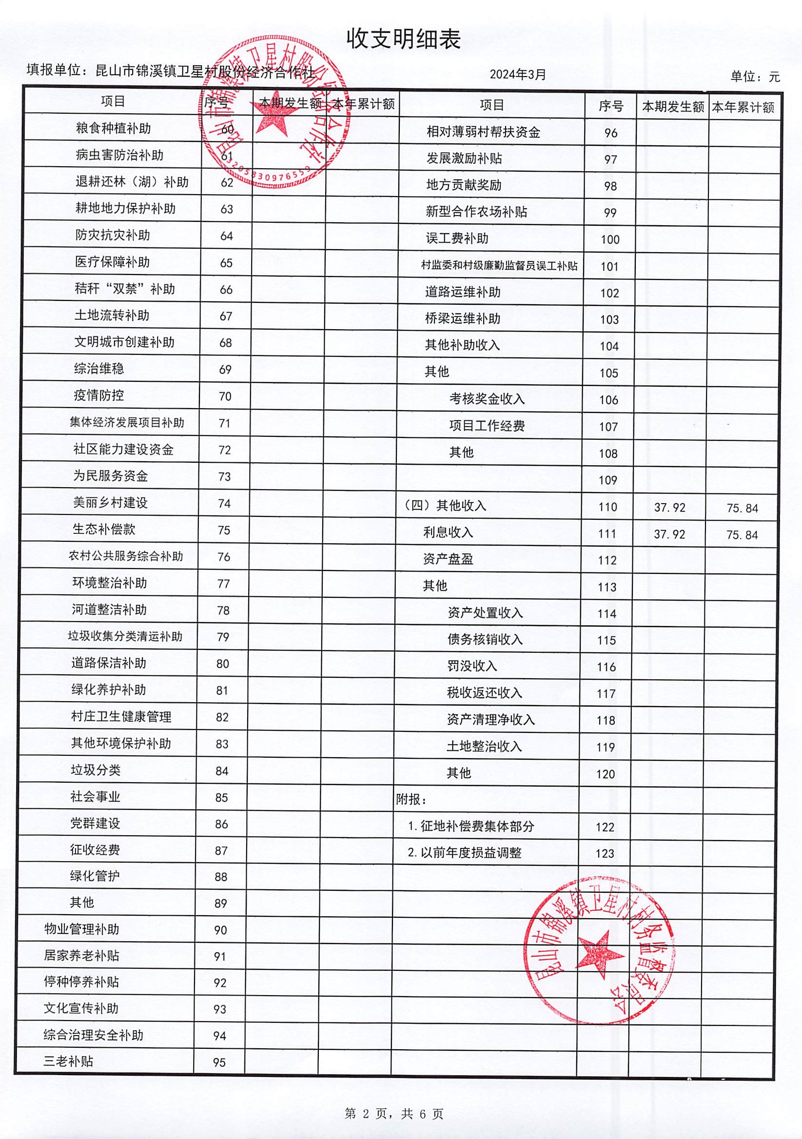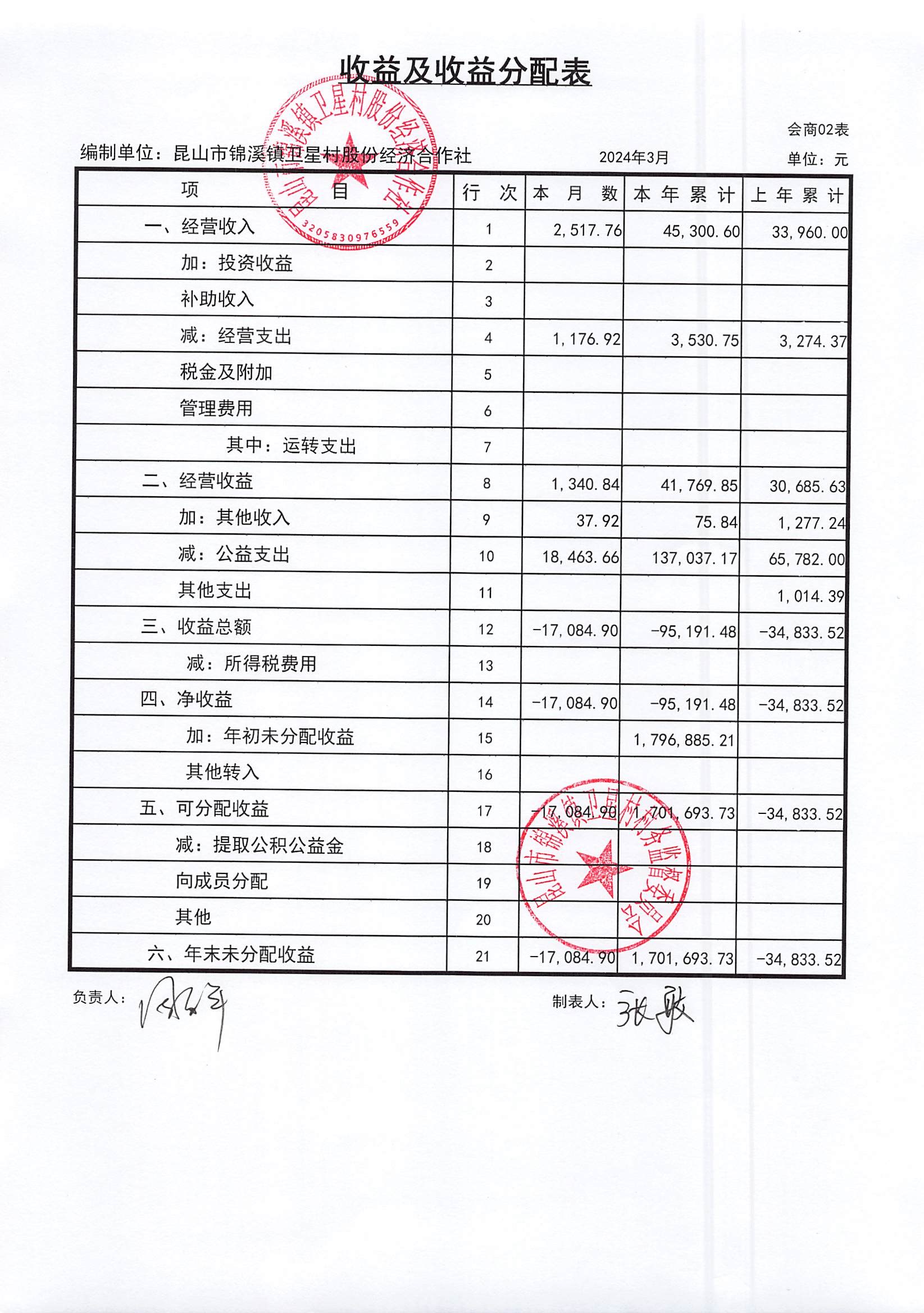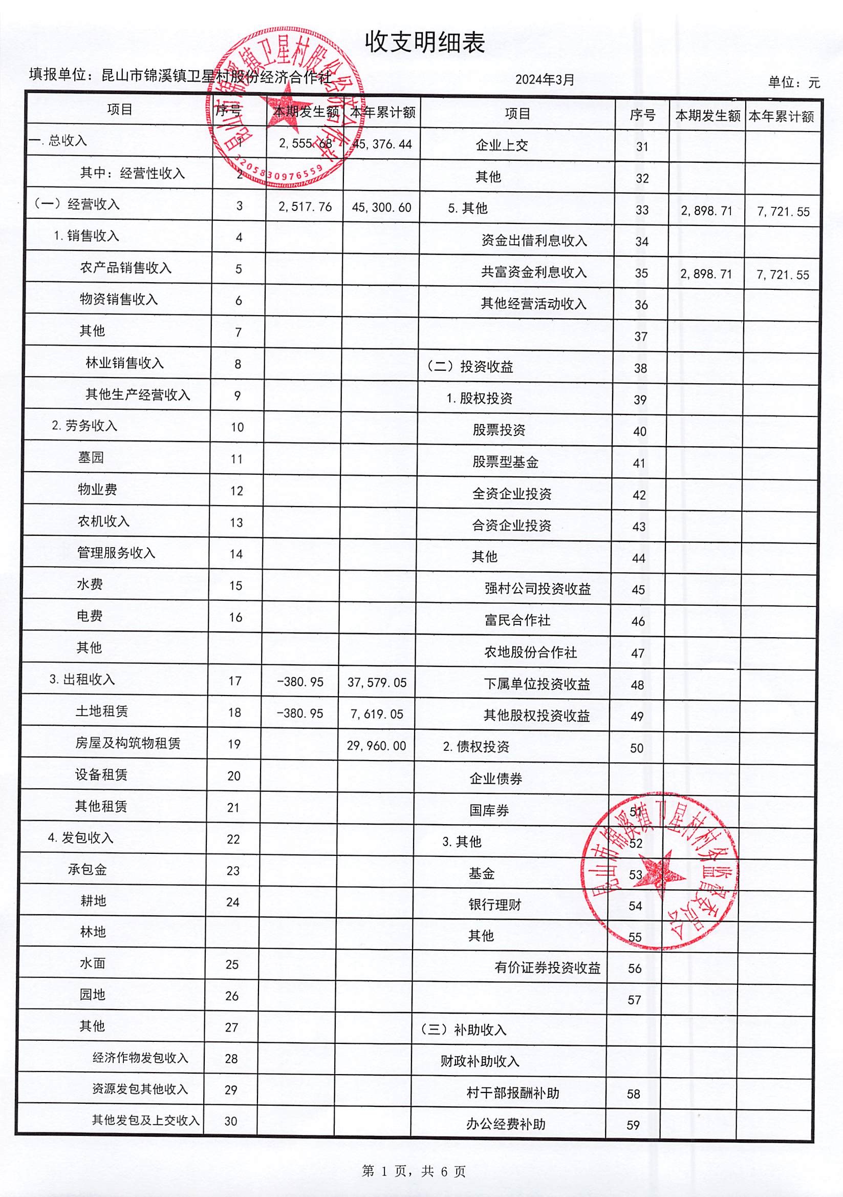 卫星股份经济合作社2024年3月财务公开内容如下: