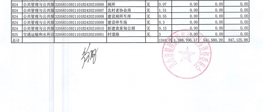 村盖章事项名录