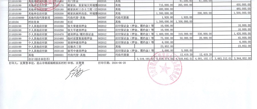 2024年5月份村委会财务公开