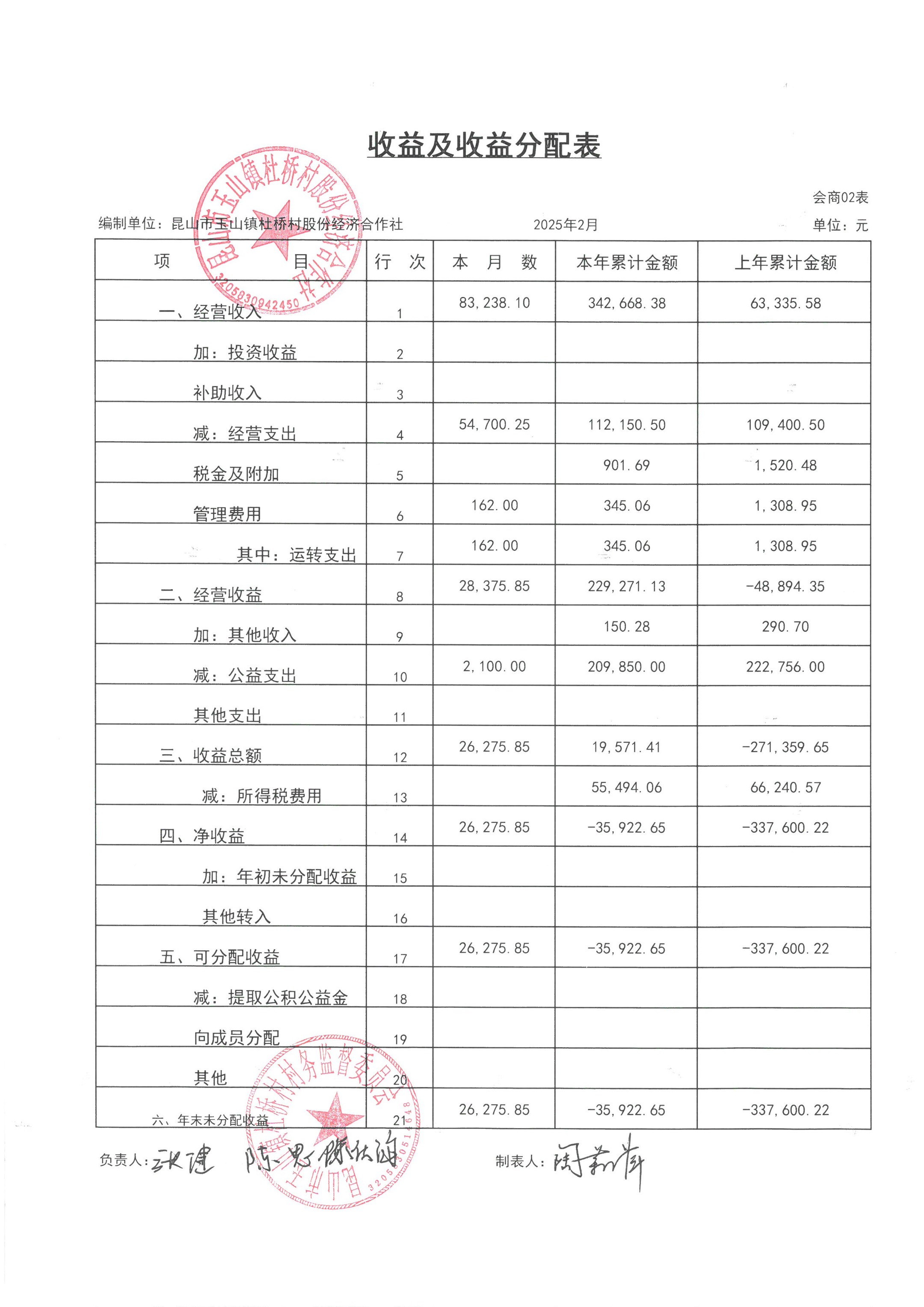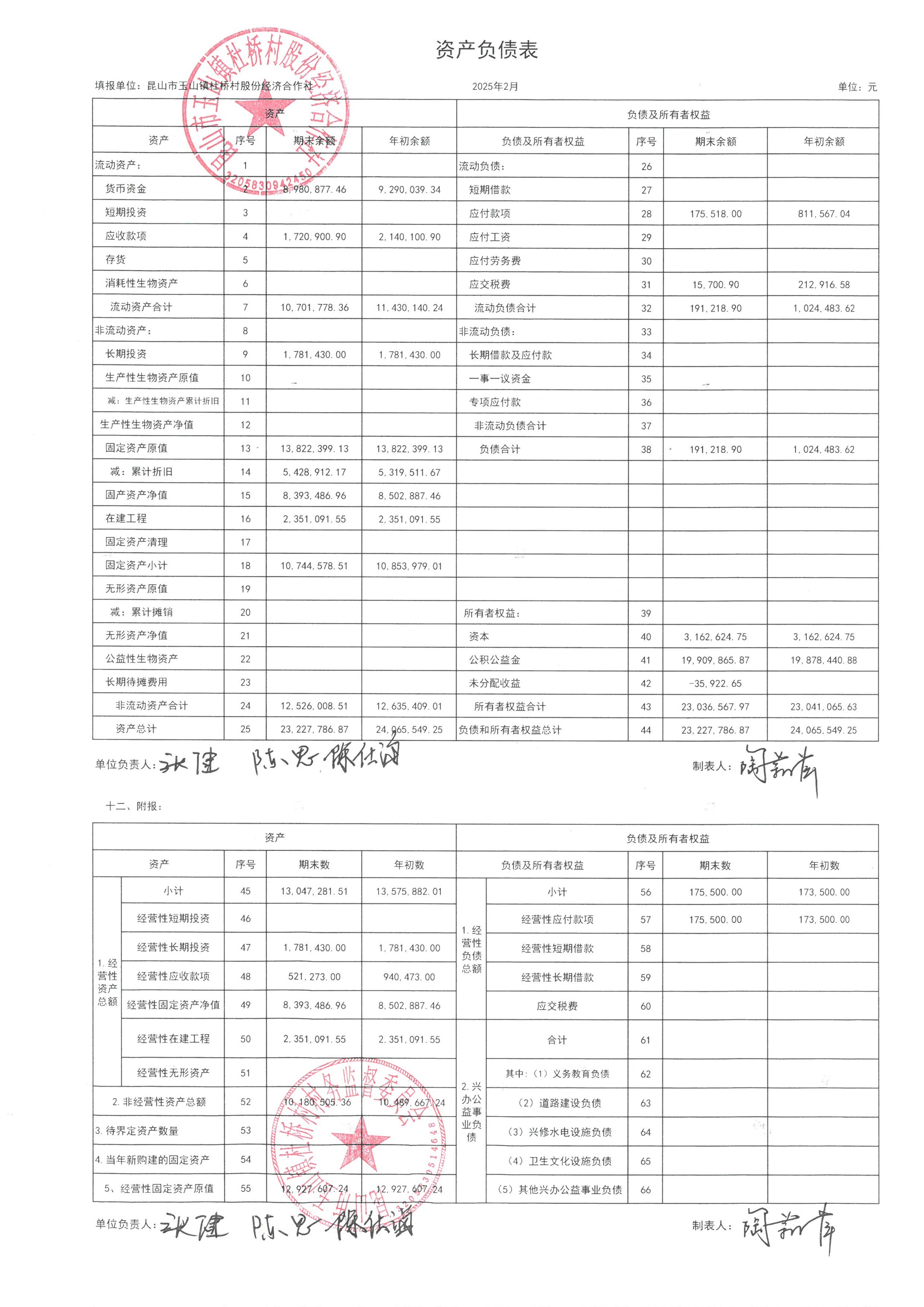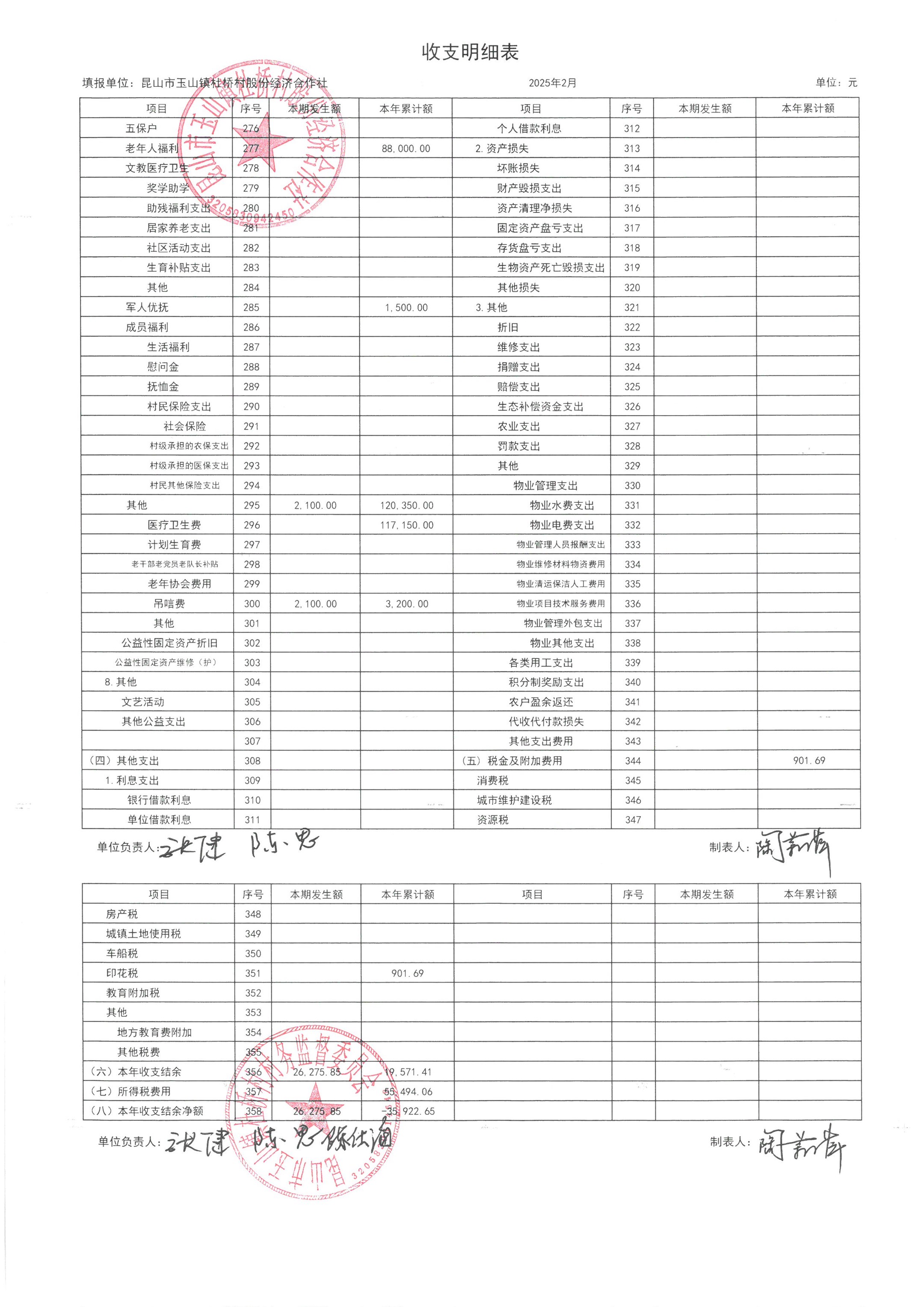 杜桥村股份经济合作社2025年3月份财务公开(2025年2月数据)