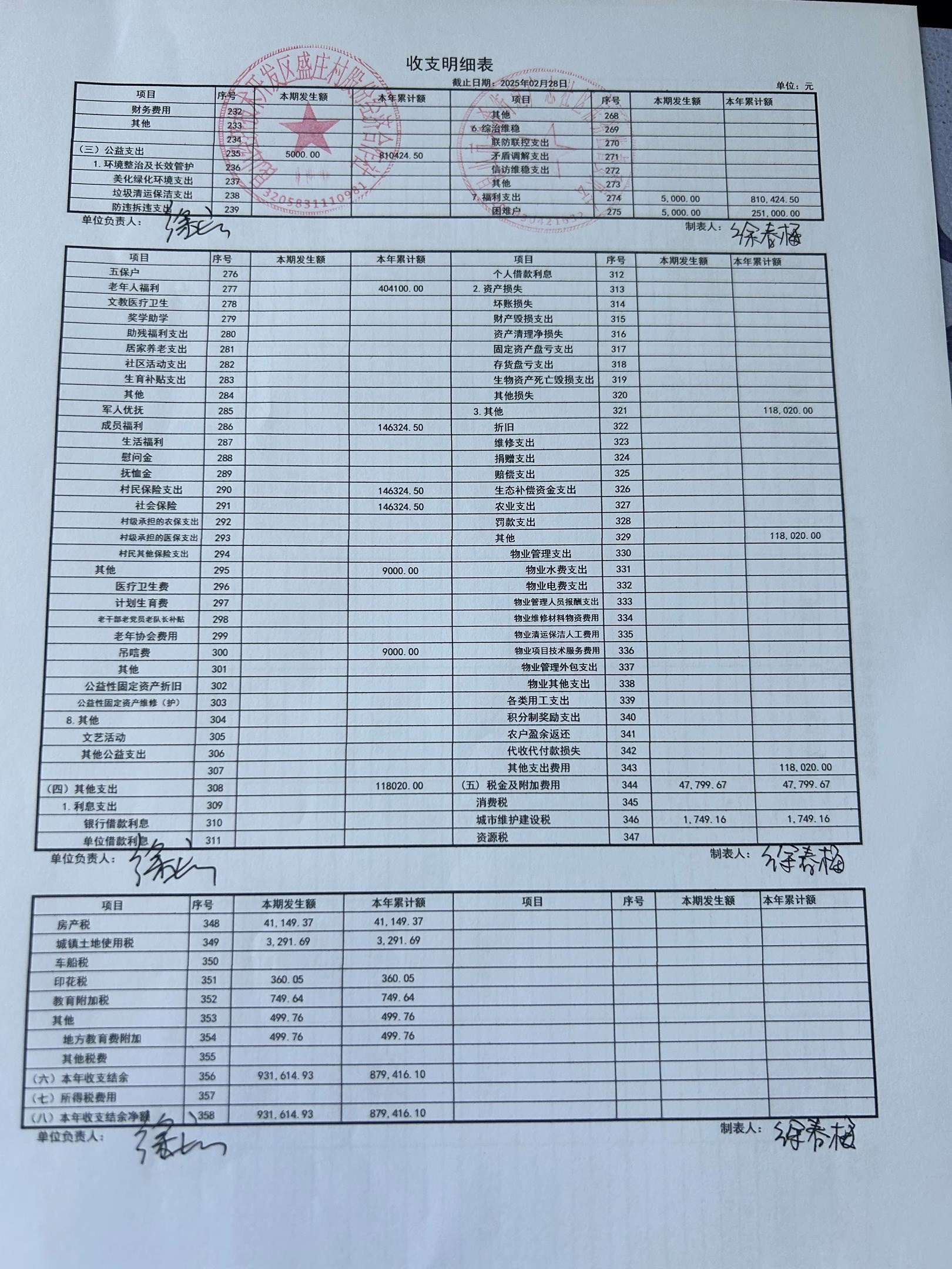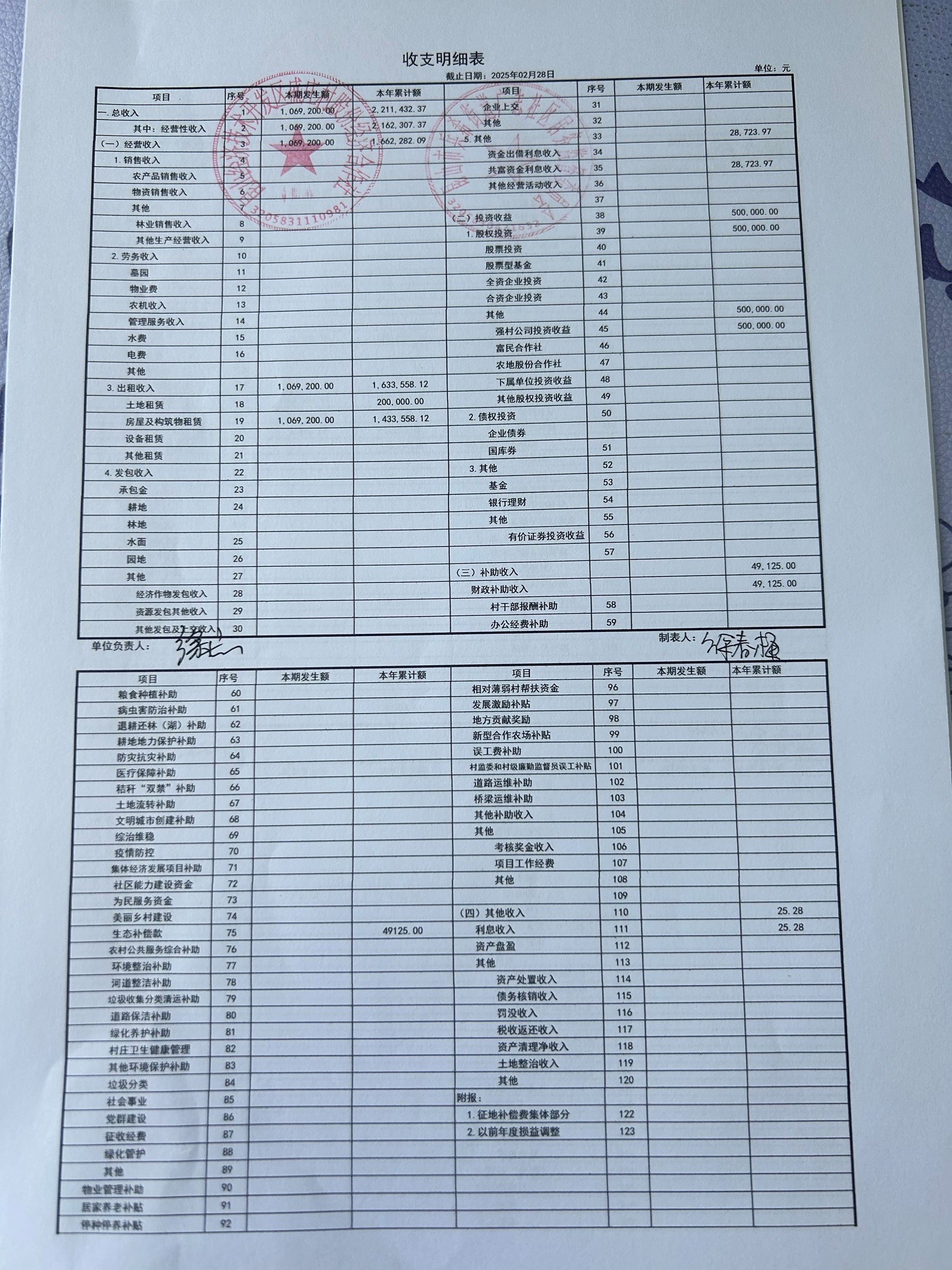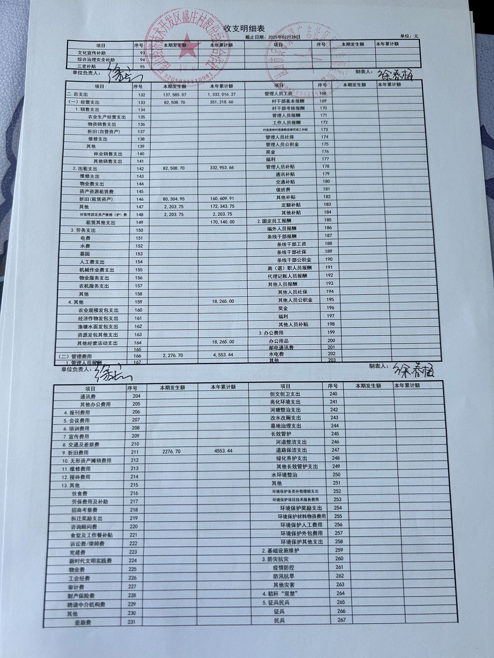 2025年2月份盛庄村股份经济合作社财务公开资料