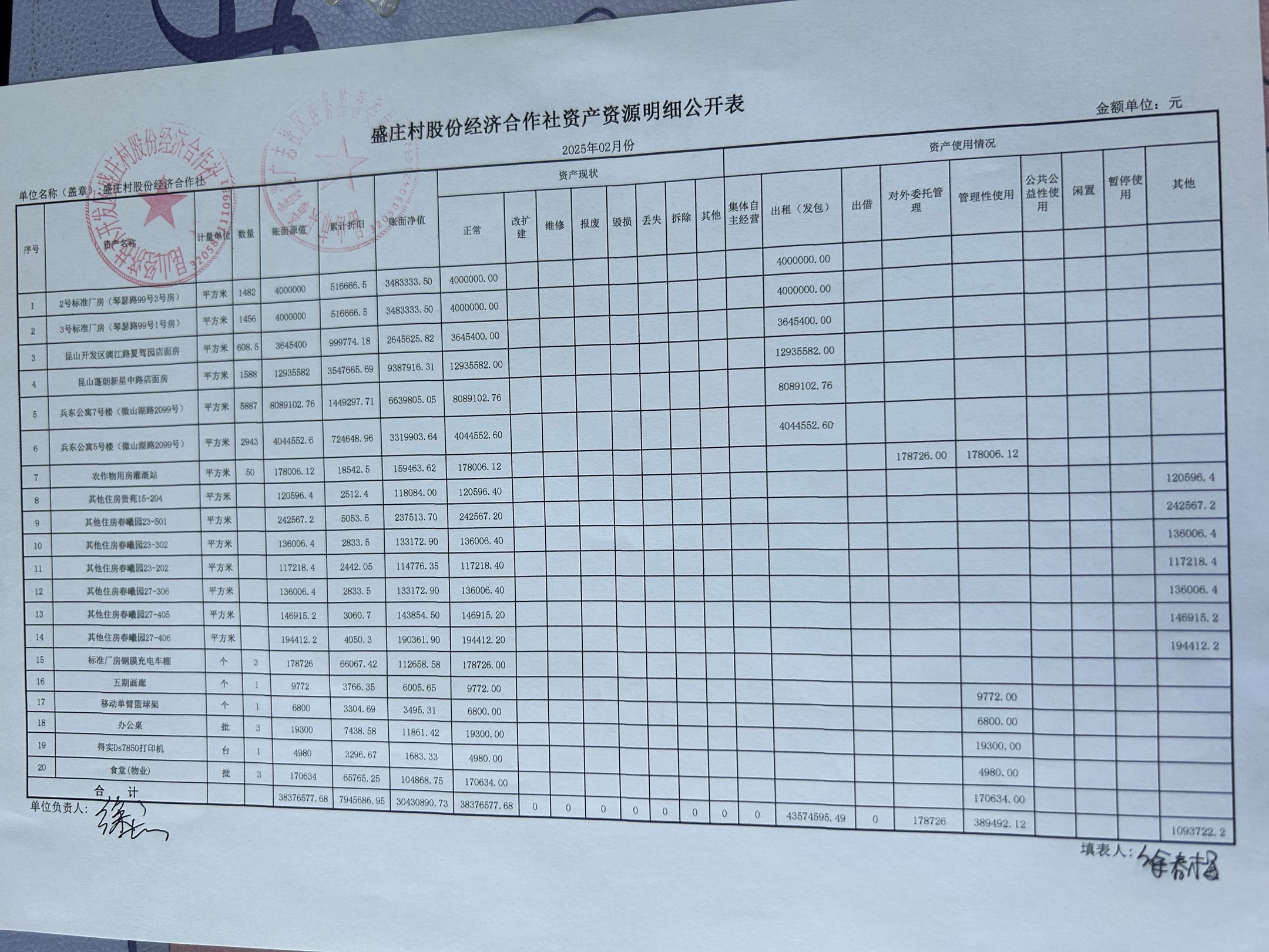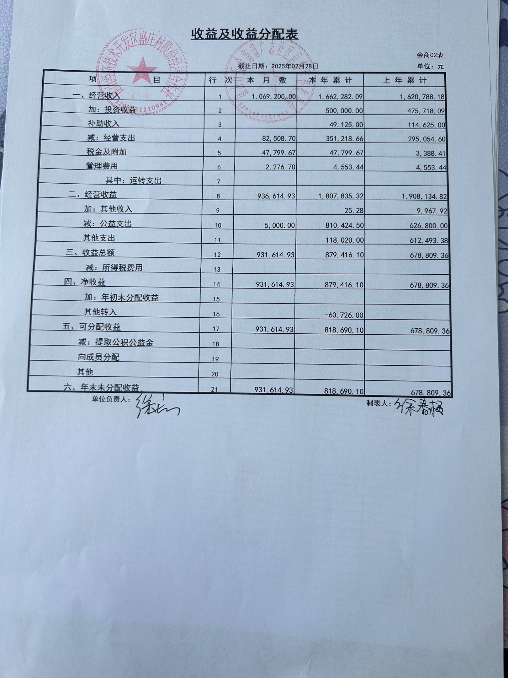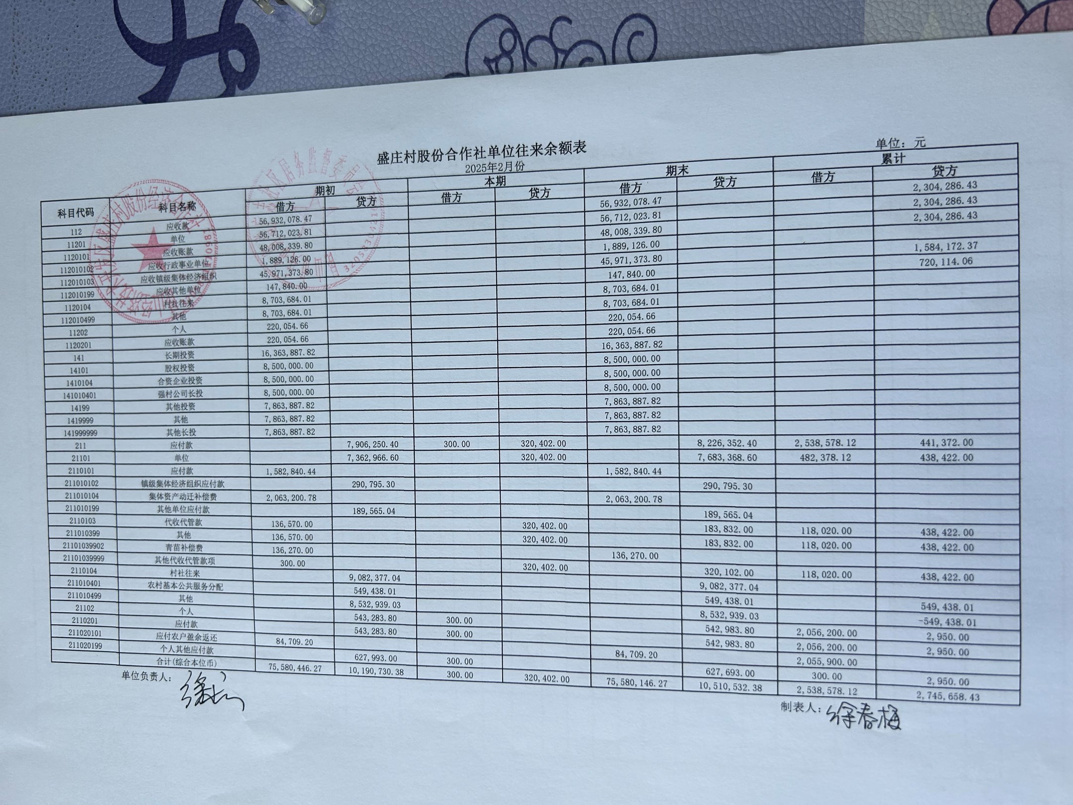 2025年2月份盛庄村股份经济合作社财务公开资料
